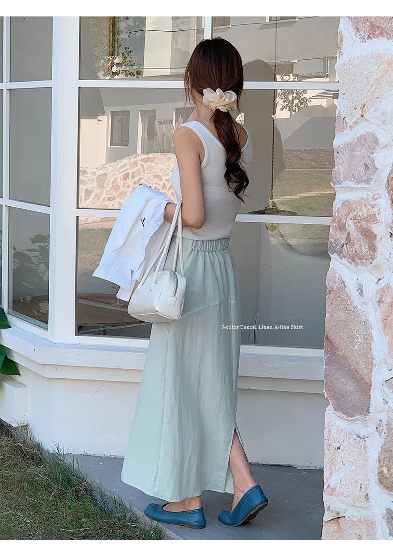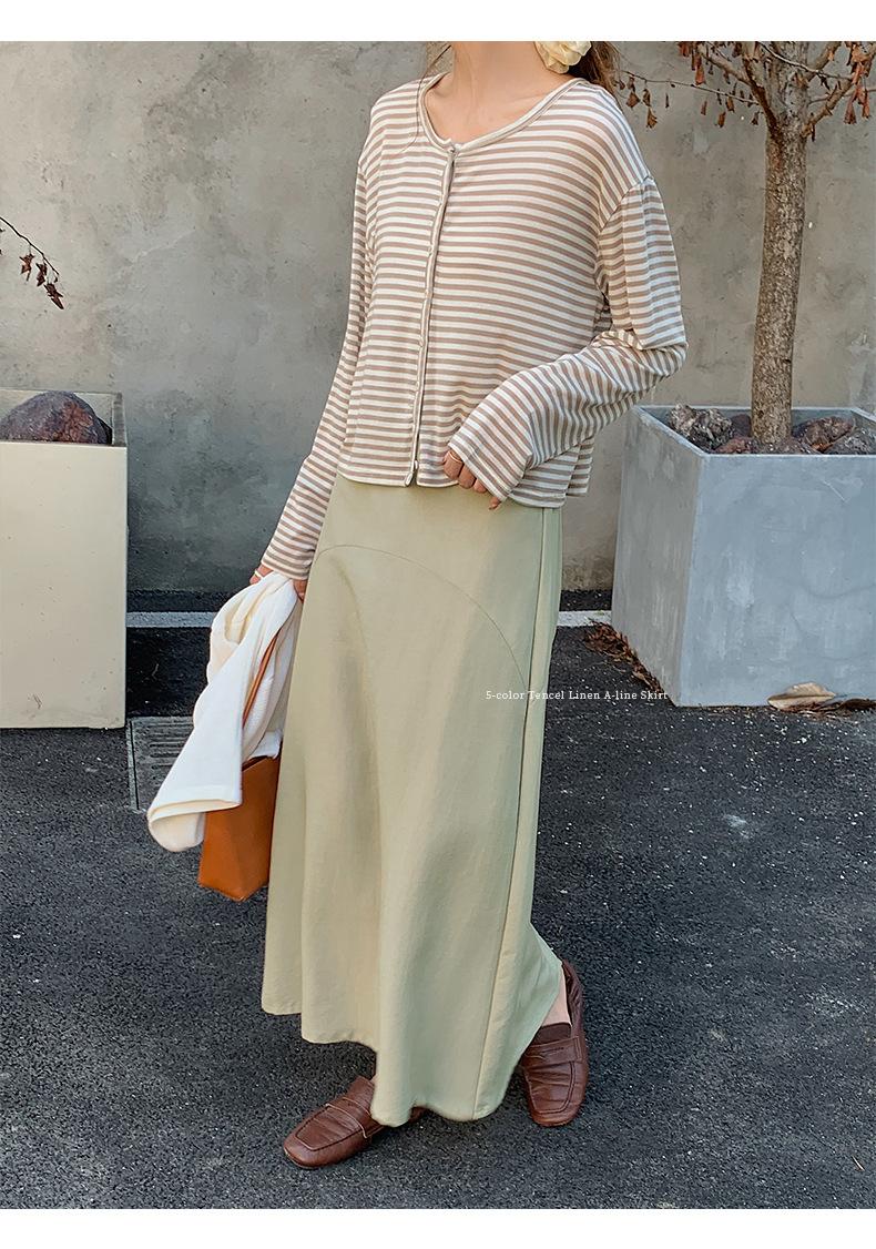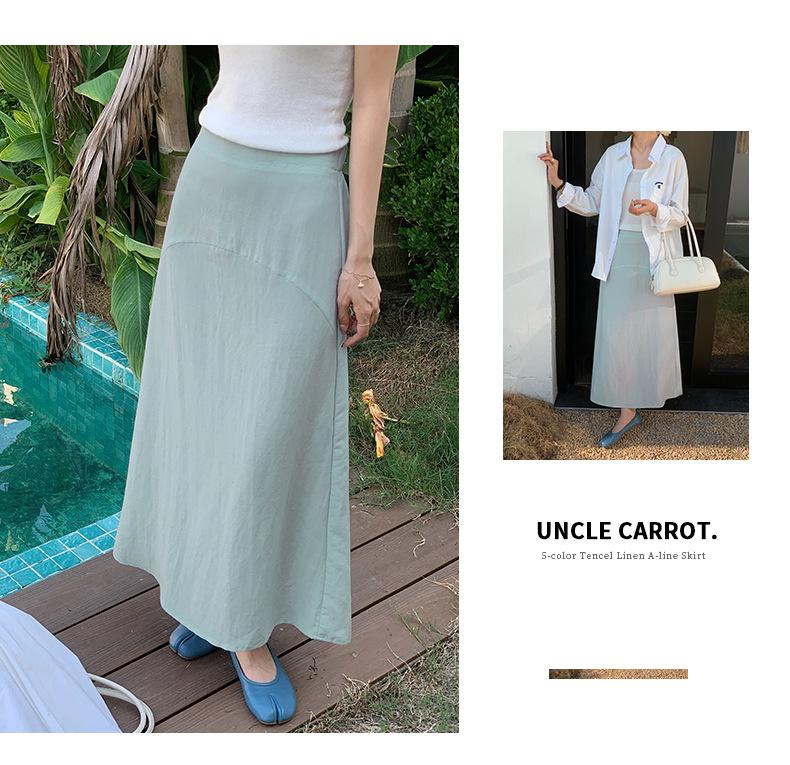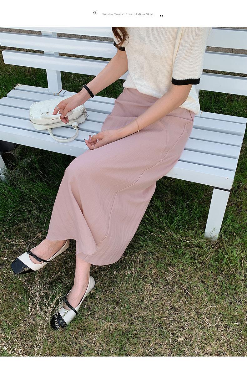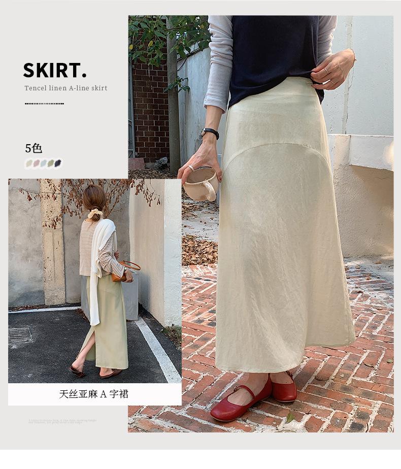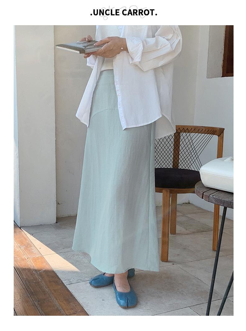 Falda Midi de Lino Corte A para Mujer 2025 Nueva Temperamento Avanzado Cintura Alta Figura Pera Oculta Caderas y Adelgaza