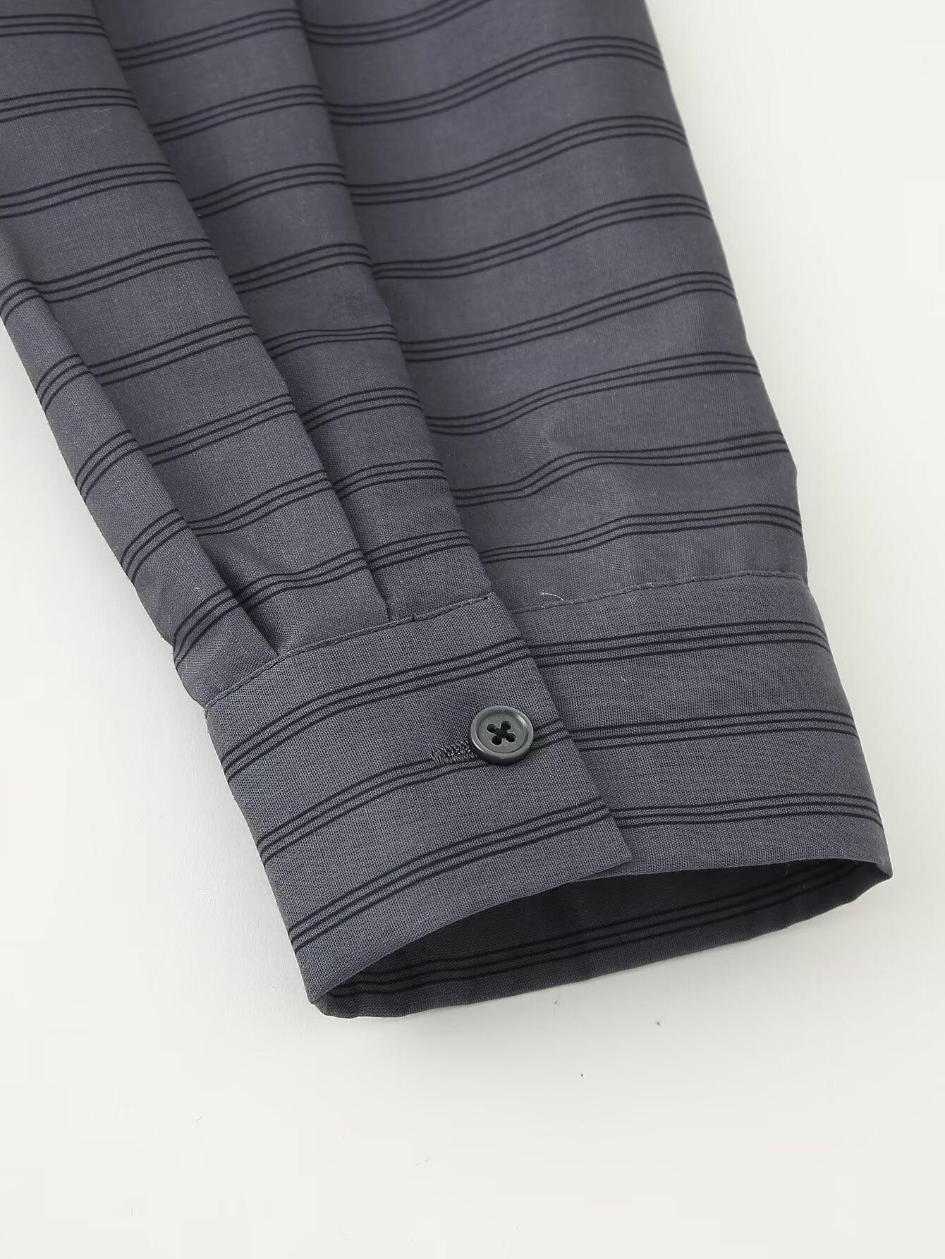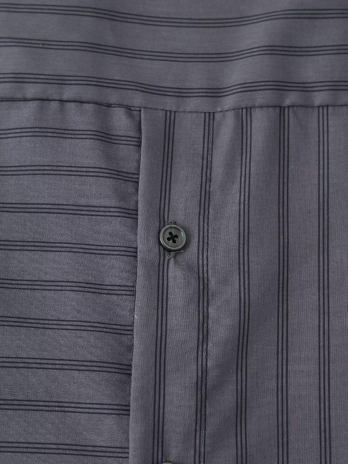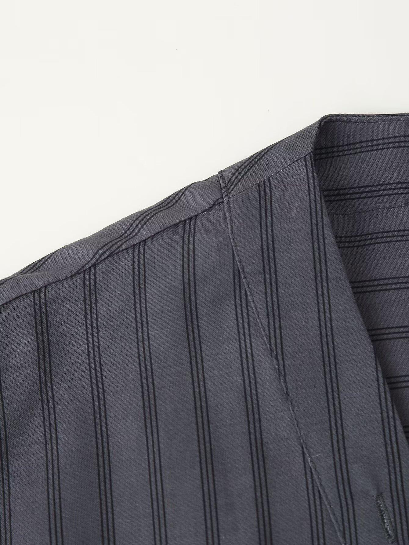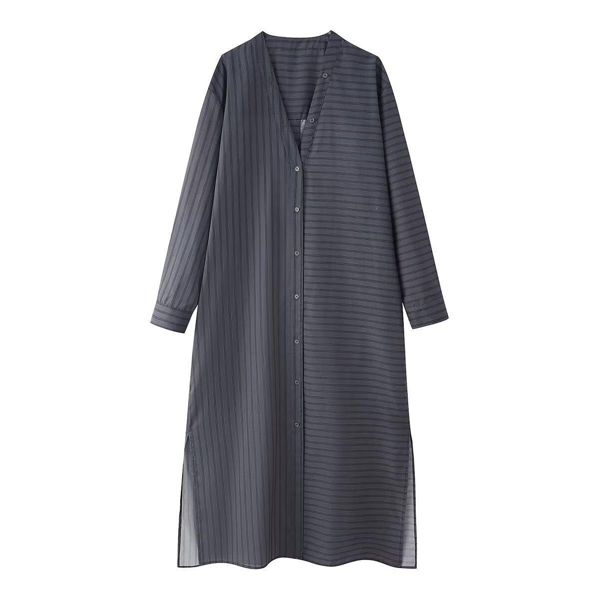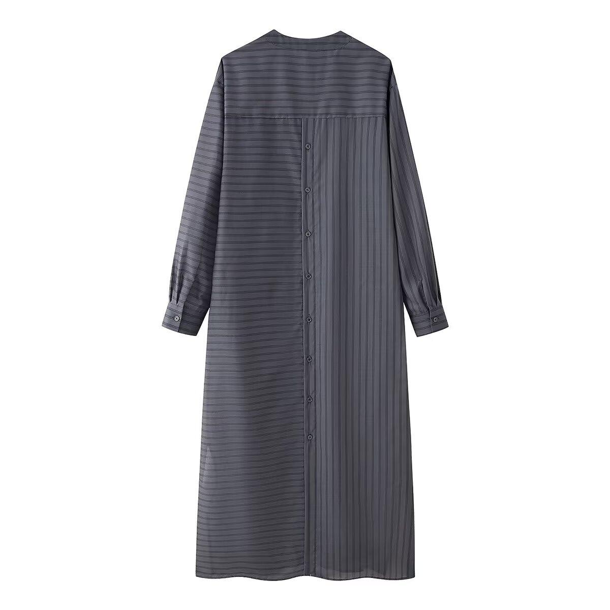 Amazon Transfronterizo Comercio Exterior Ropa de Mujer 2025 Otoño Nueva Moda Versátil Suelto Camisa Rayada Vestido Largo Mujer