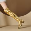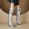 Invierno nuevas botas de moda de cuero con cremallera lateral color sólido tacón medio punta redonda talla grande botas de mujer tacón cuadrado suela suave botas por encima de la rodilla