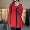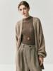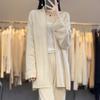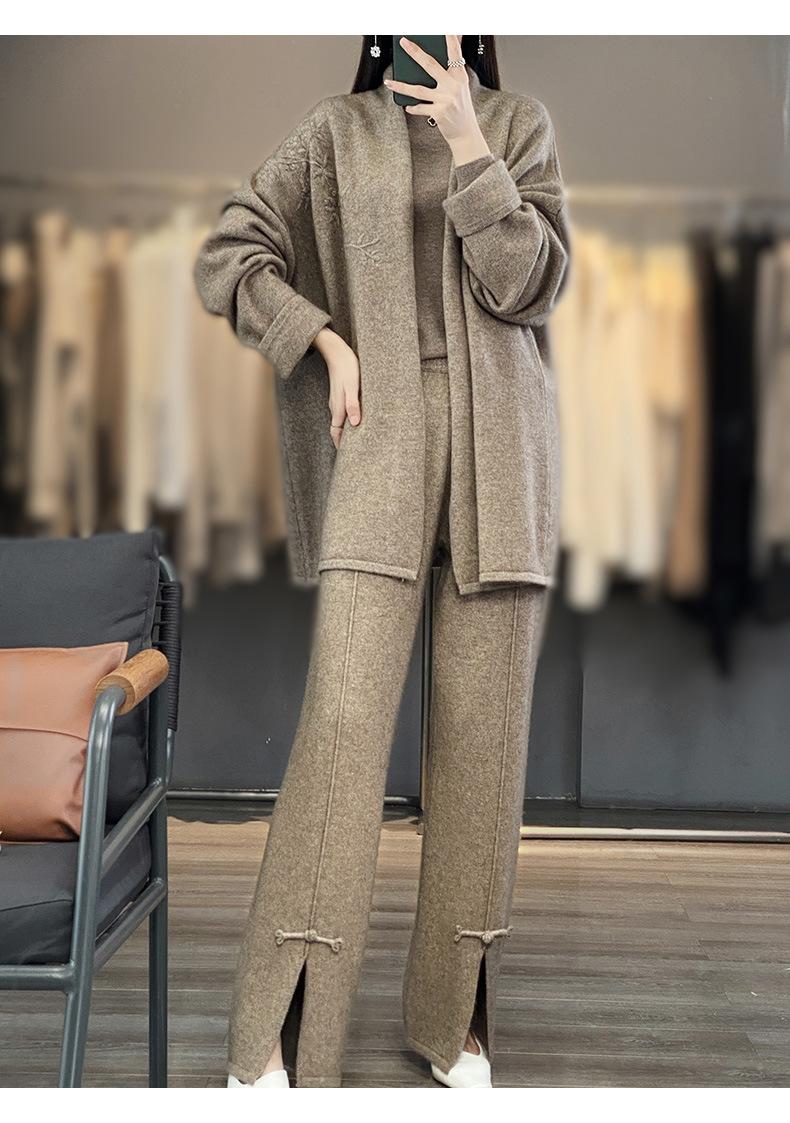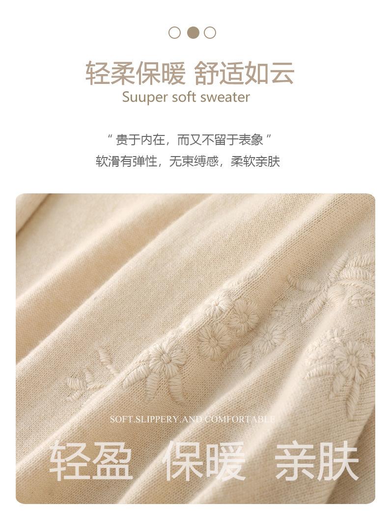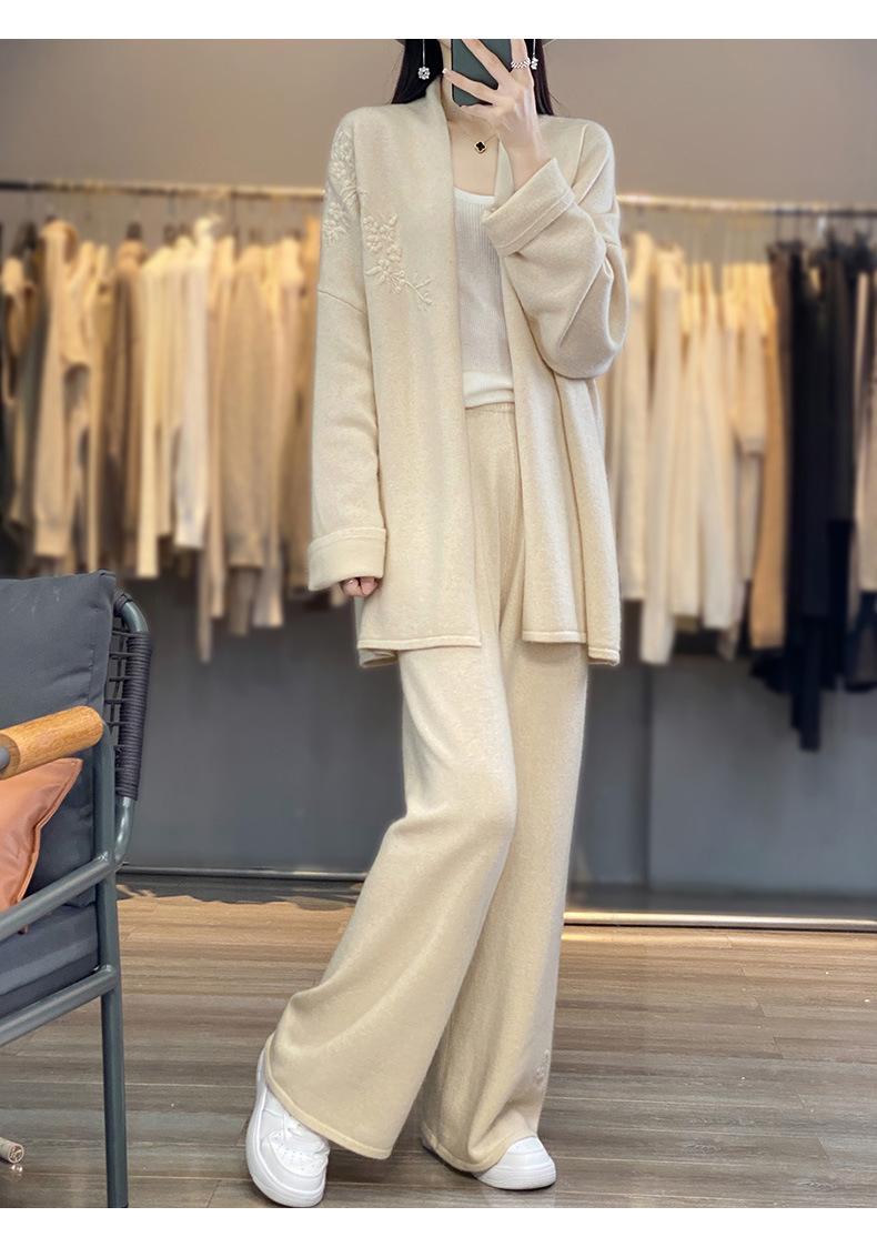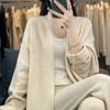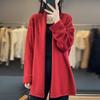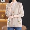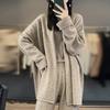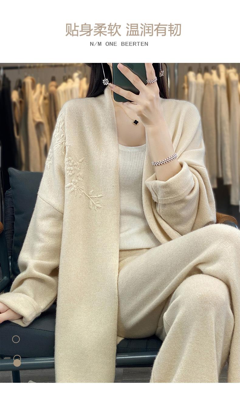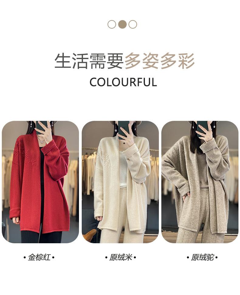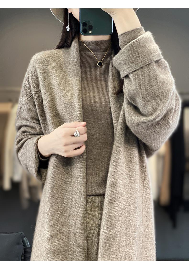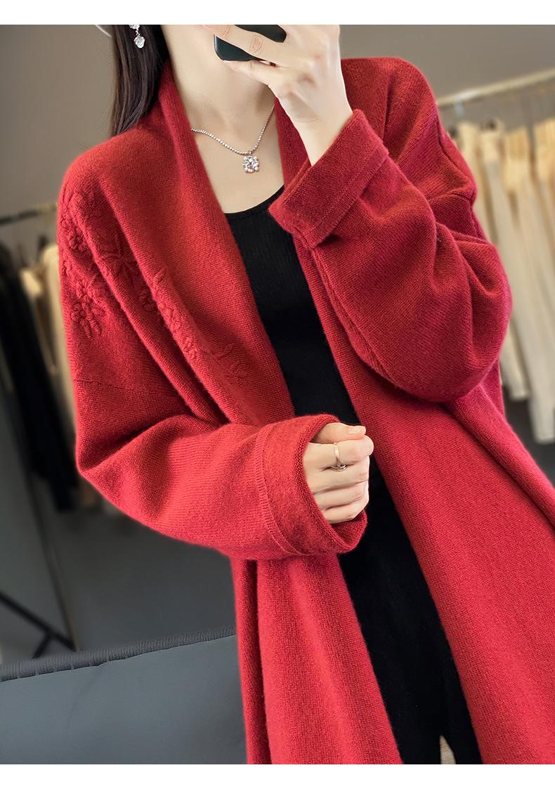 2025 Nuevo Cárdigan de Punto de Lana Pura con Cuello en V para Mujer, Bordado, Holgado, Casual, Color Sólido, Sin Botones, Largo Medio, Chal Grande