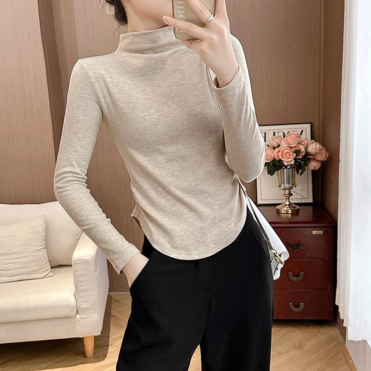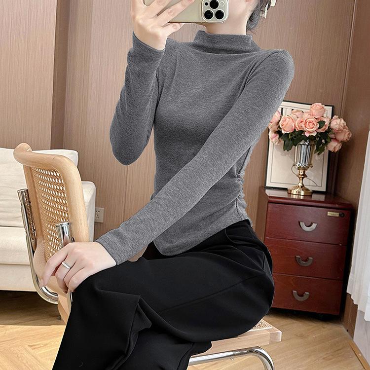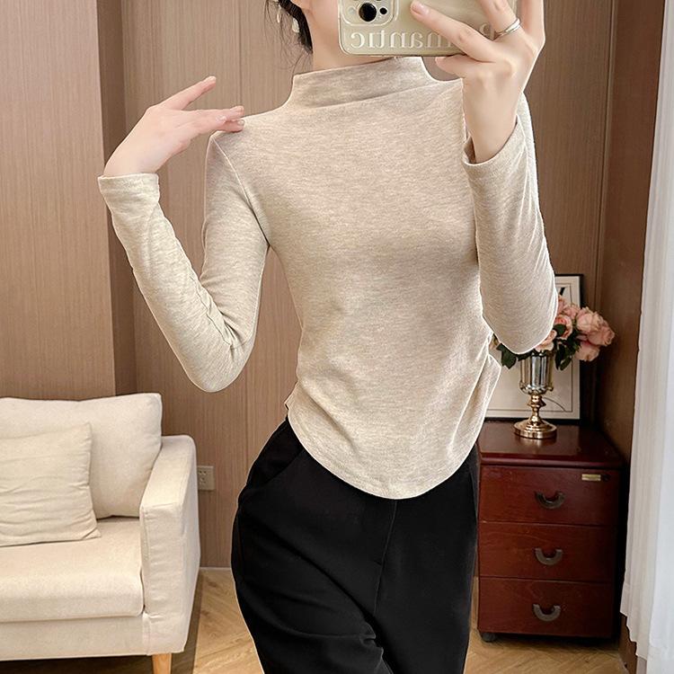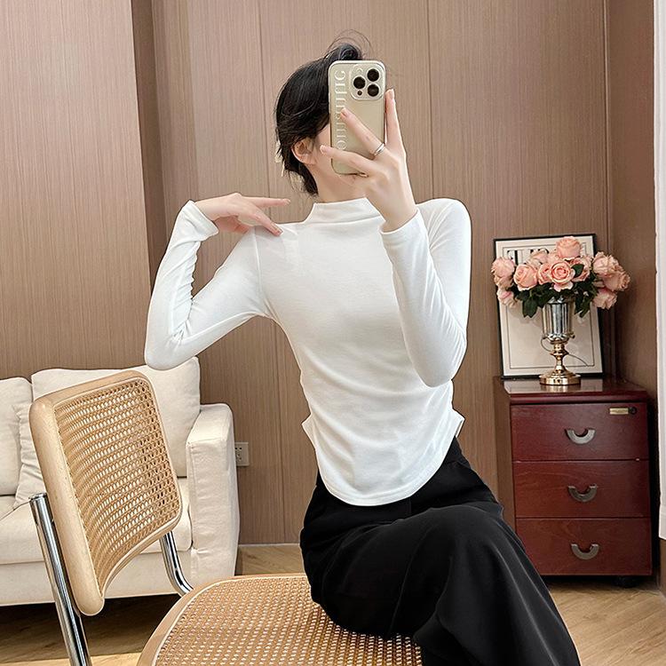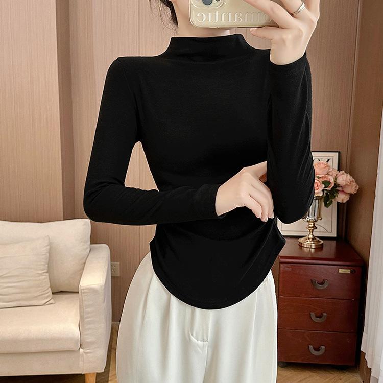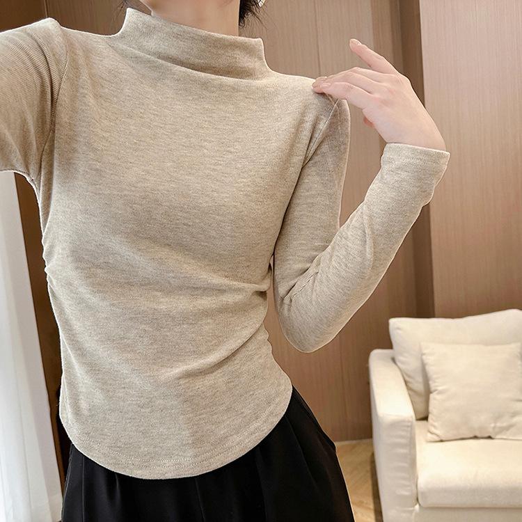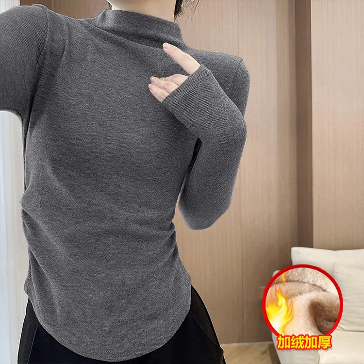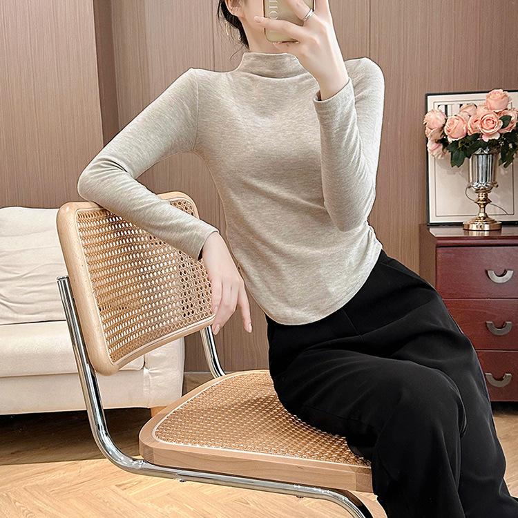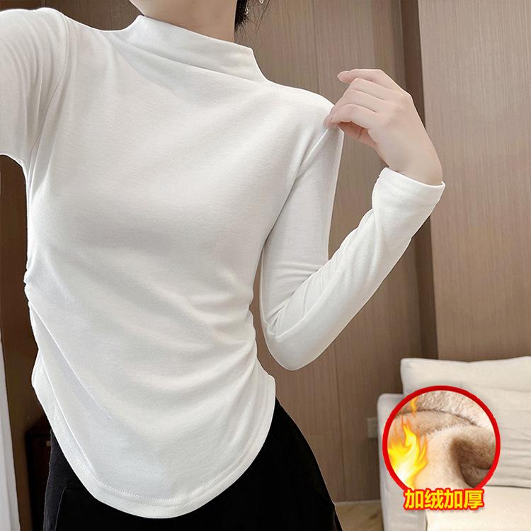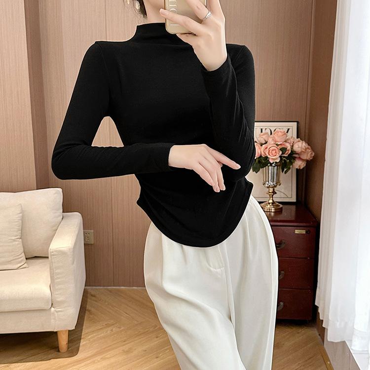 Camiseta interior de cuello alto y corte ajustado para mujer, nueva para otoño e invierno, con terciopelo extra grueso, terciopelo alemán, versátil, top de manga larga
