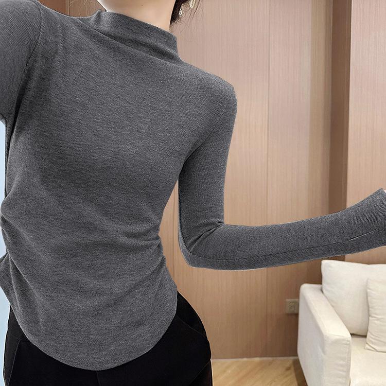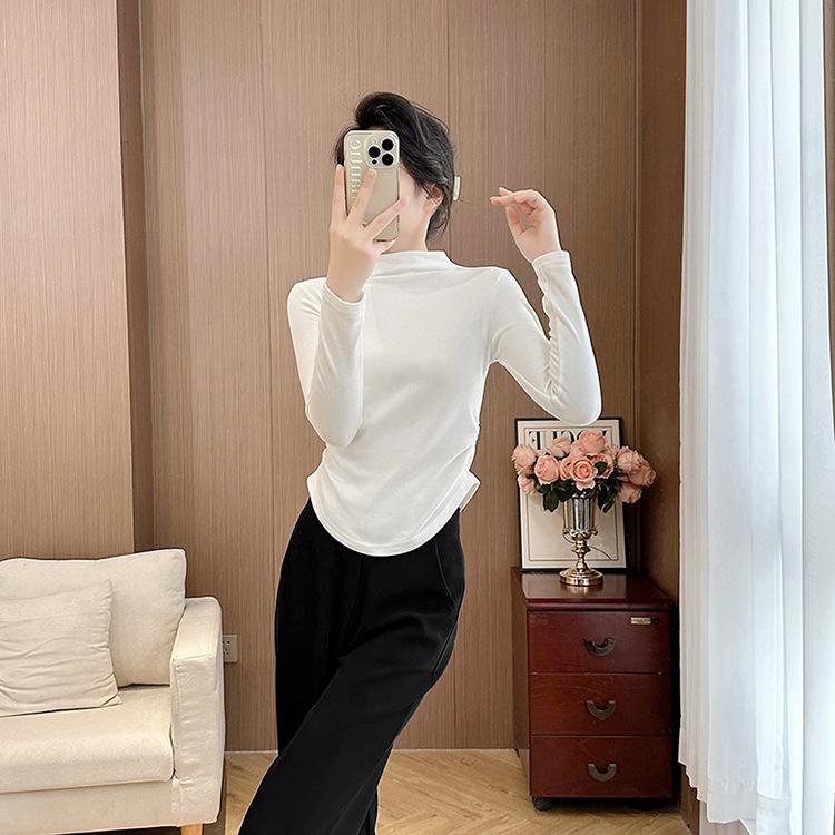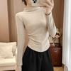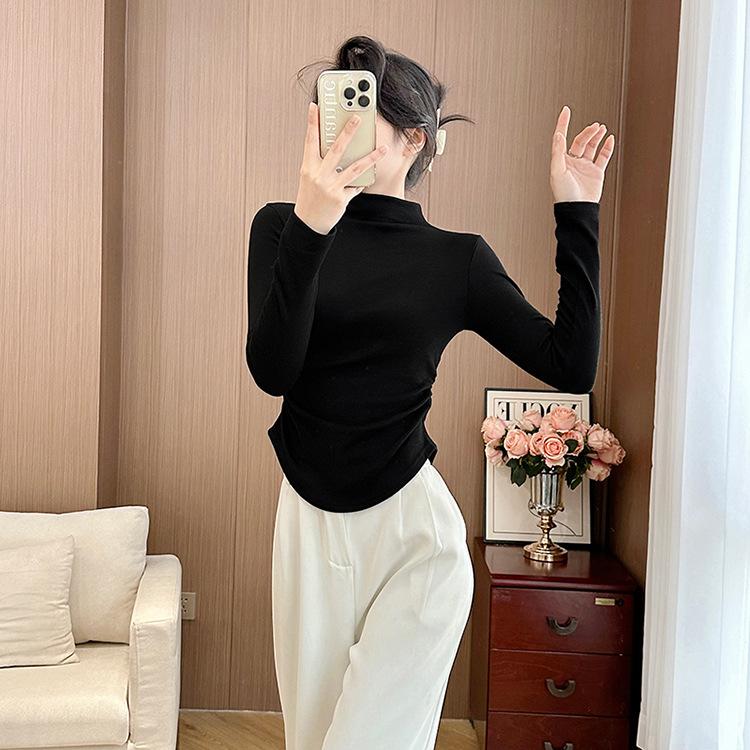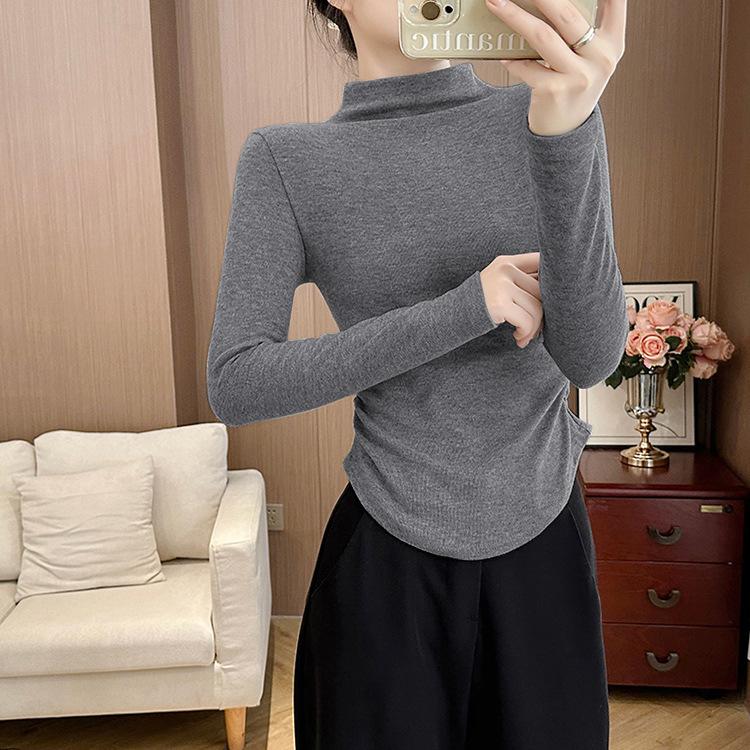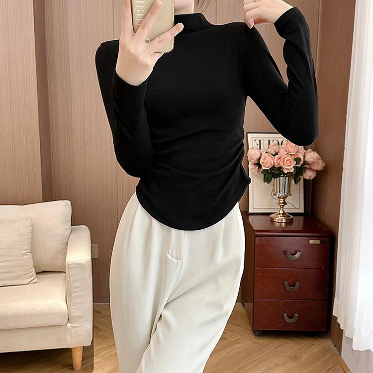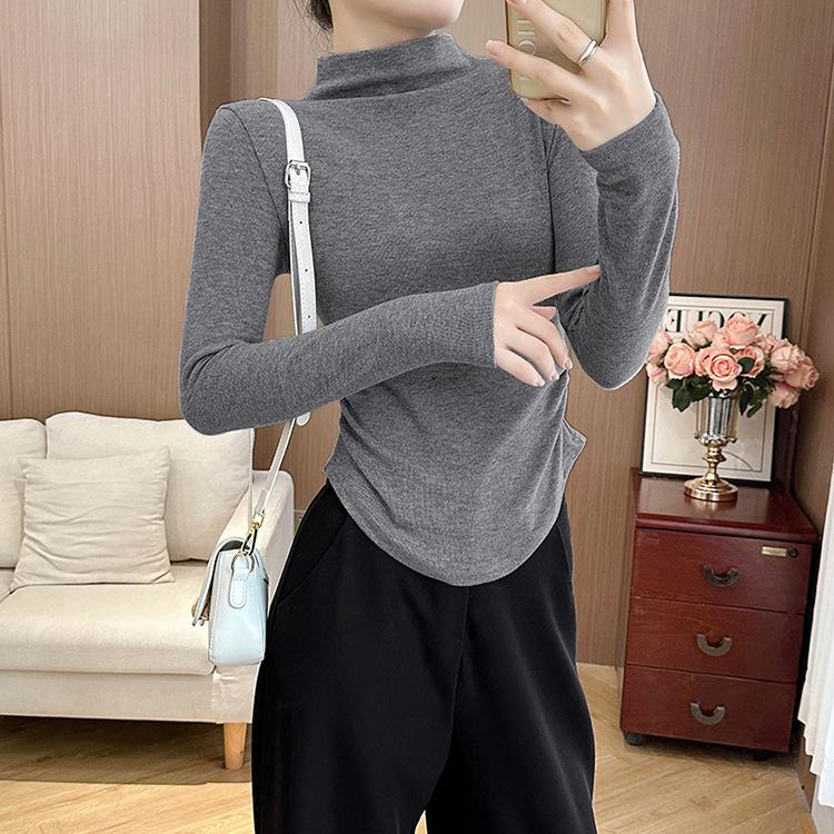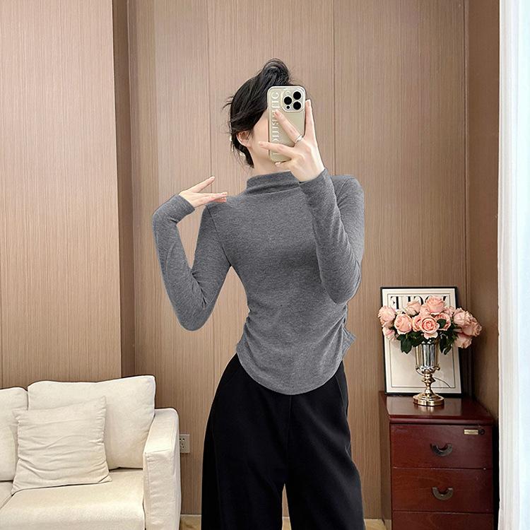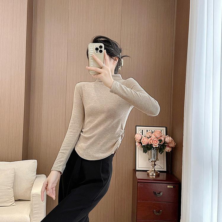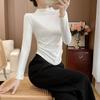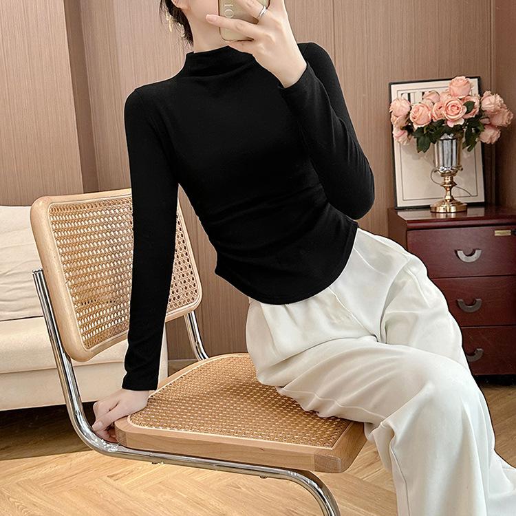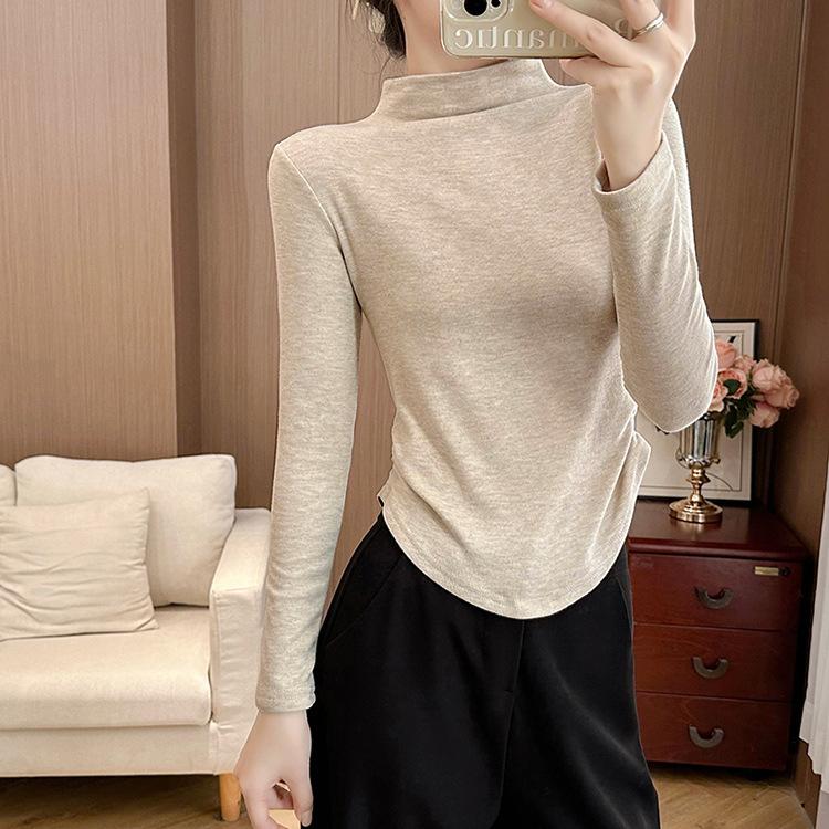 Camiseta interior de cuello alto y corte ajustado para mujer, nueva para otoño e invierno, con terciopelo extra grueso, terciopelo alemán, versátil, top de manga larga