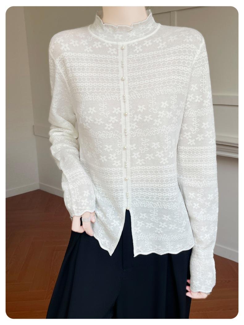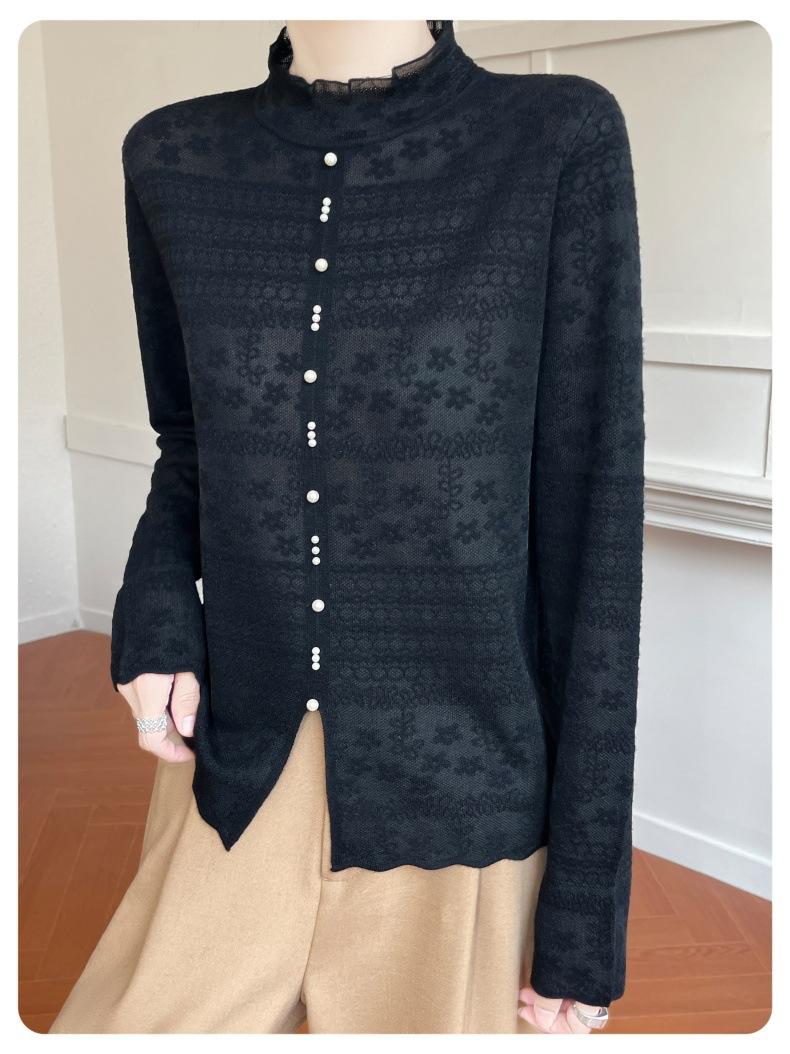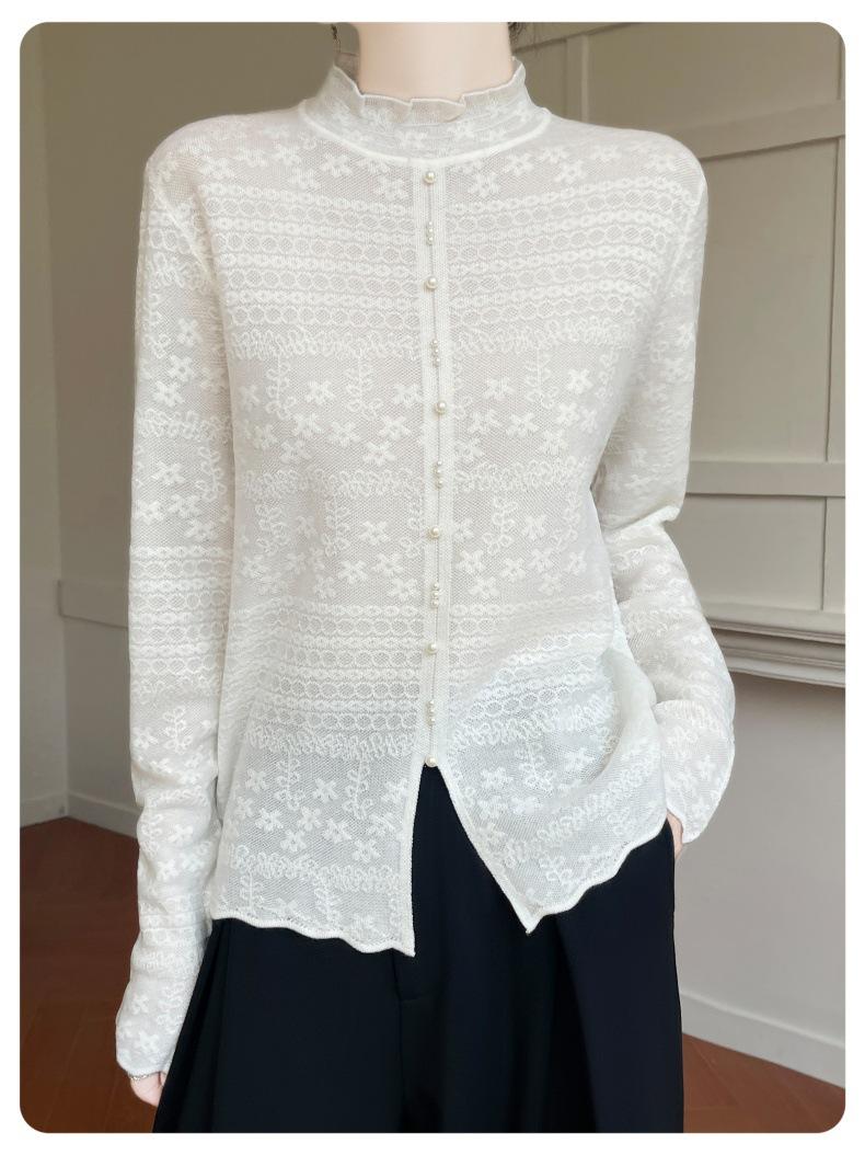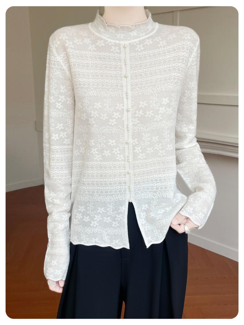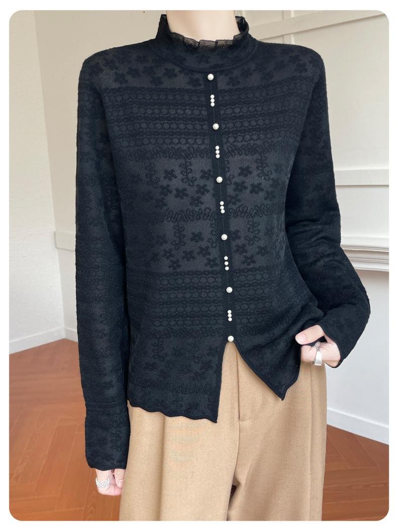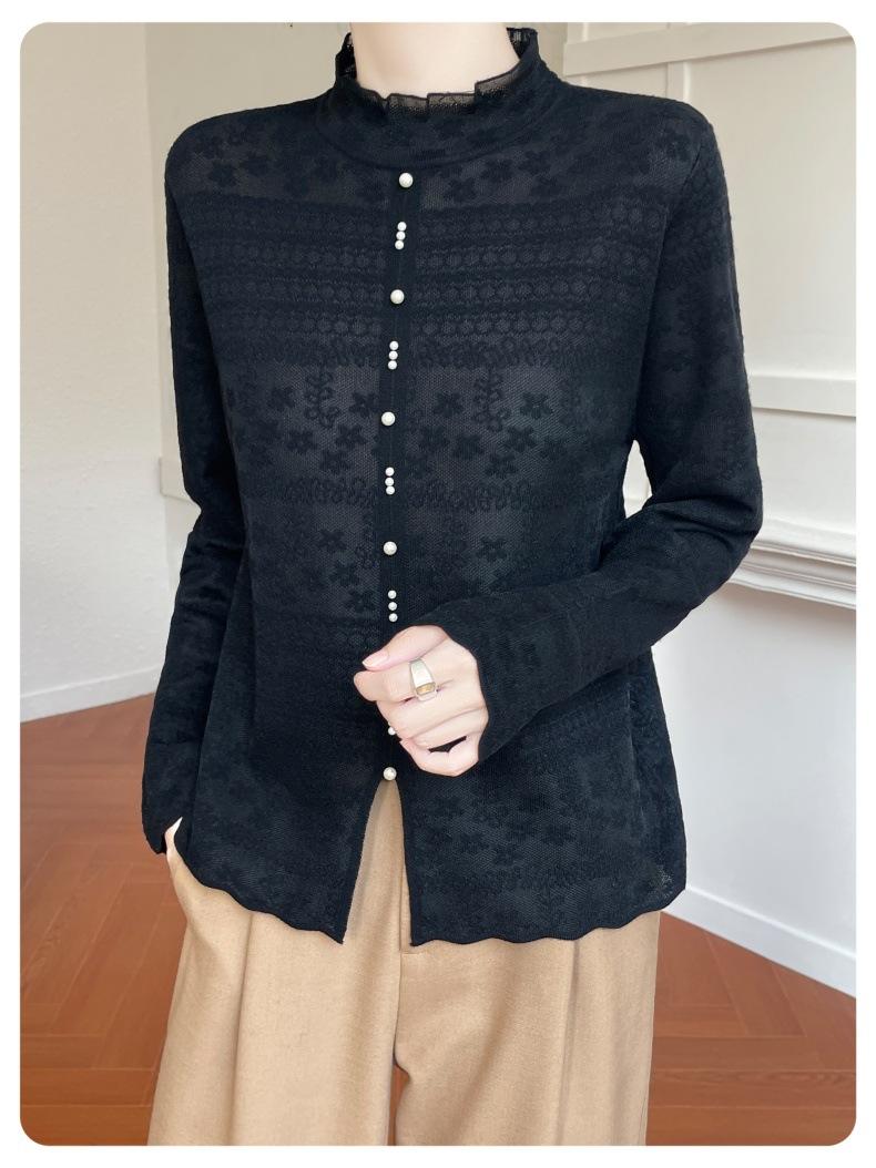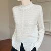 Capa Interior de Organza de Lana Merino Base Suéter de Punto de Cuello Medio Alto para Mujer Otoño Invierno Nuevo Estilo Artesanal Jacquard de Encaje