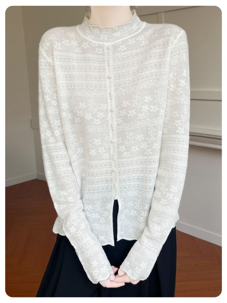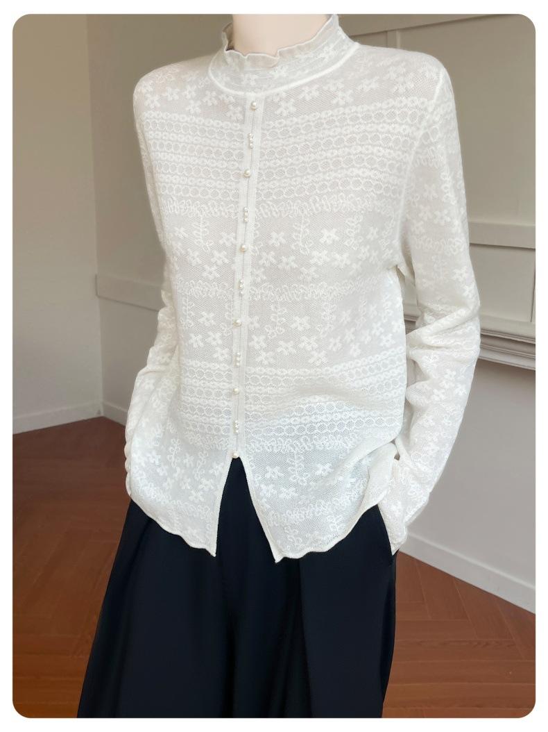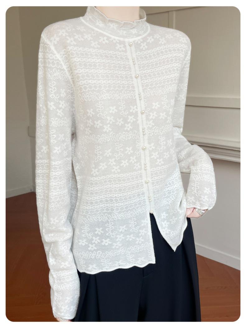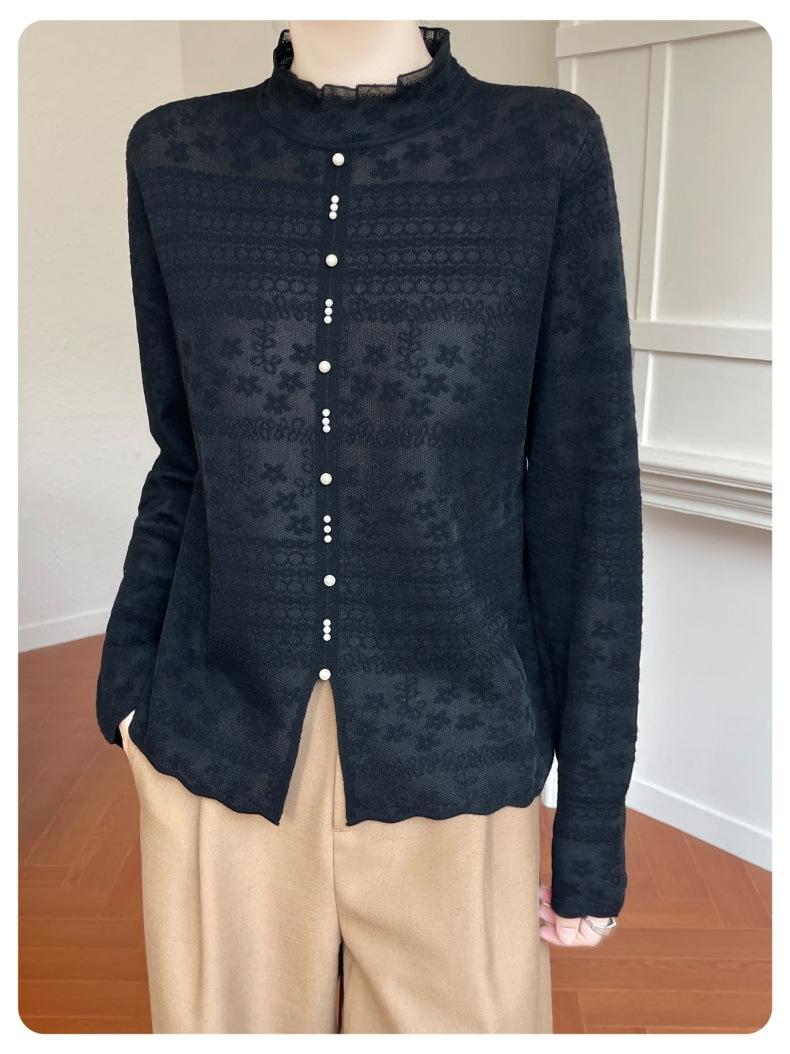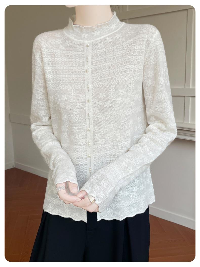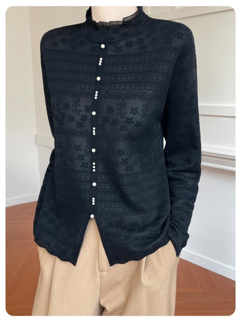 Capa Interior de Organza de Lana Merino Base Suéter de Punto de Cuello Medio Alto para Mujer Otoño Invierno Nuevo Estilo Artesanal Jacquard de Encaje