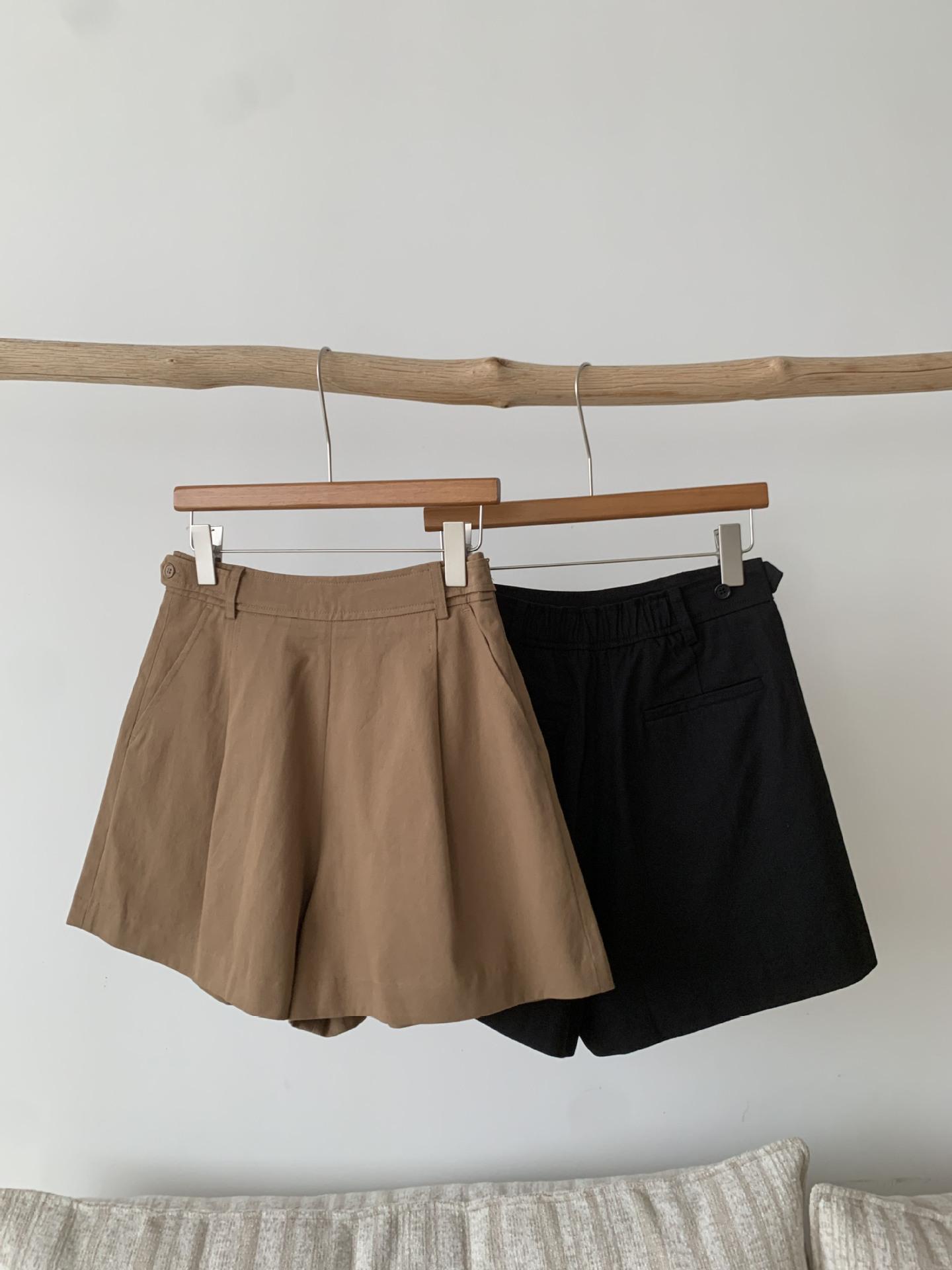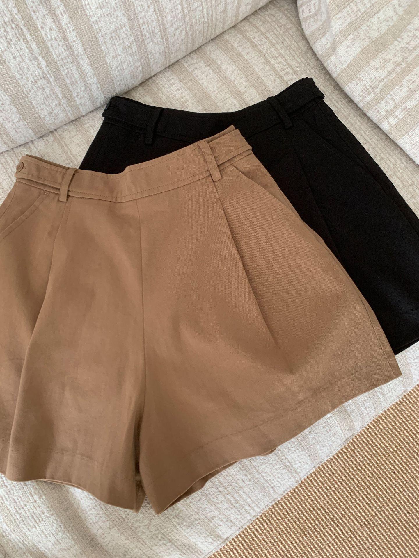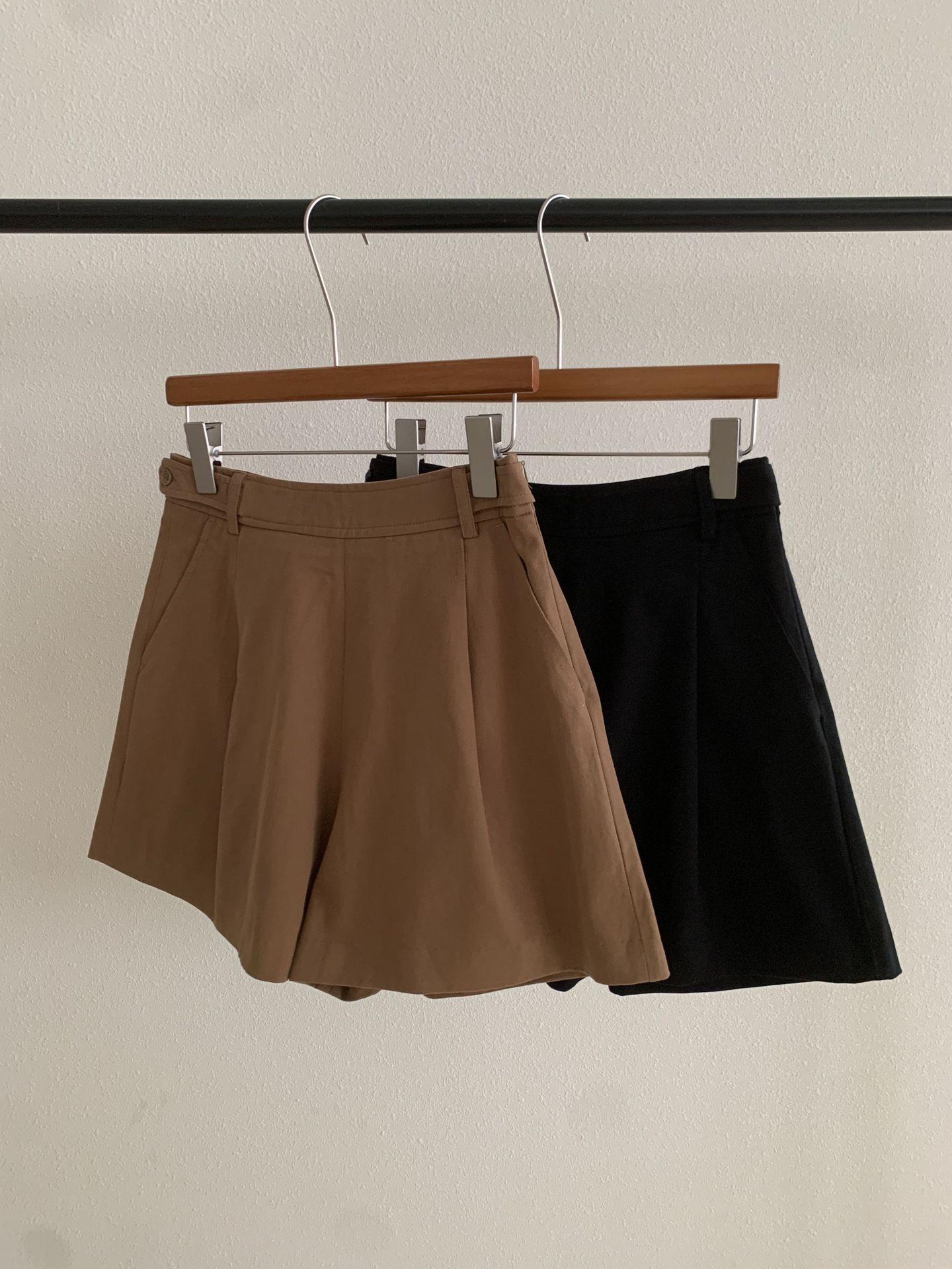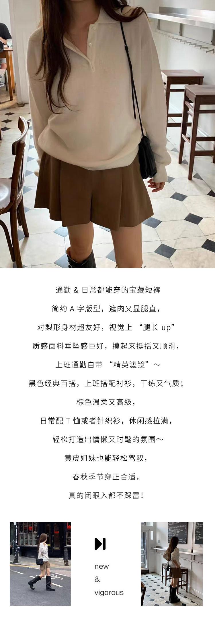 En stock Otoño 2025 Nuevo Coreano Dongdaemun OU*CE Temperamento Cintura Alta Sueltos Color Sólido Adelgazantes Línea A Shorts Casuales