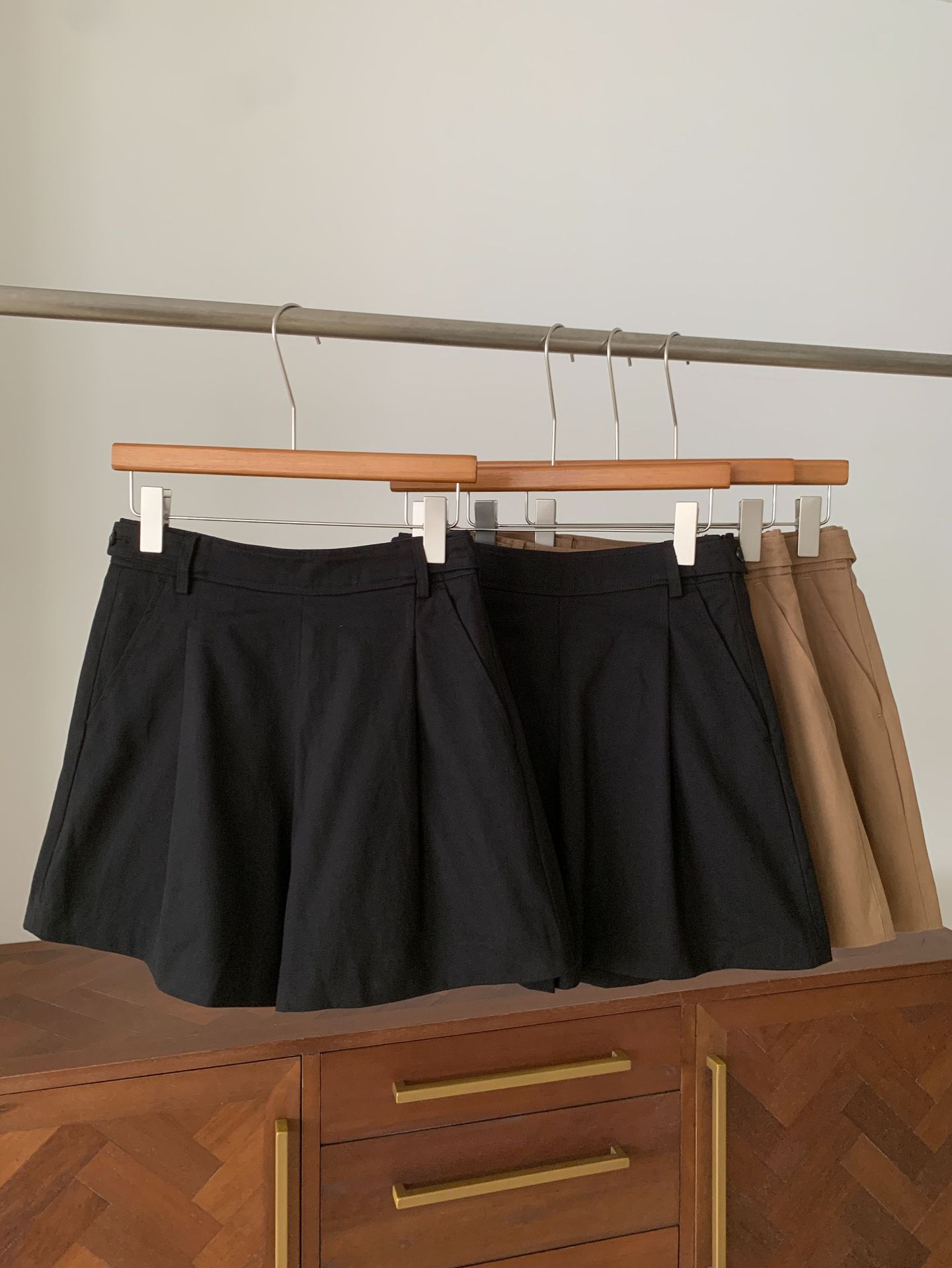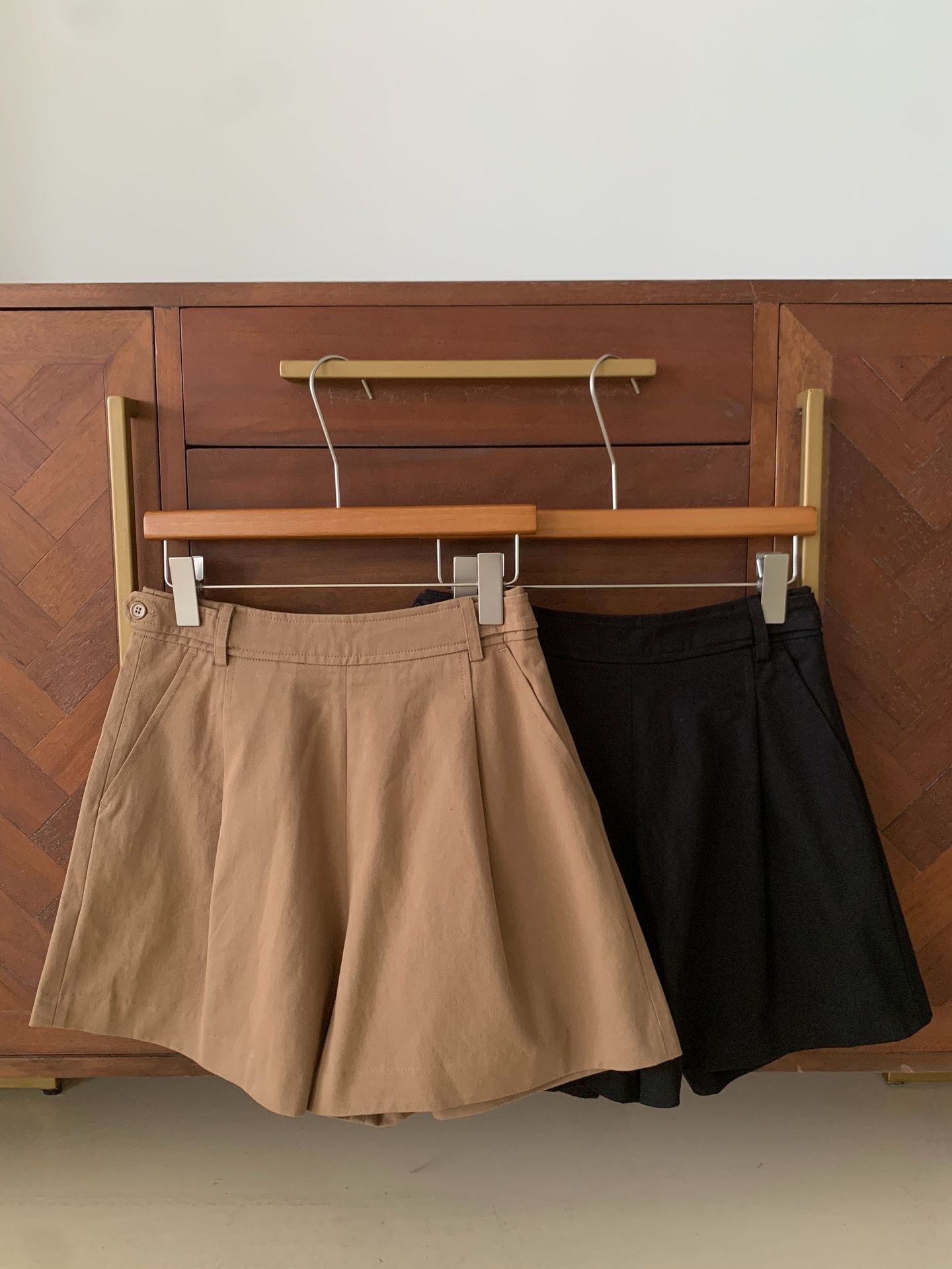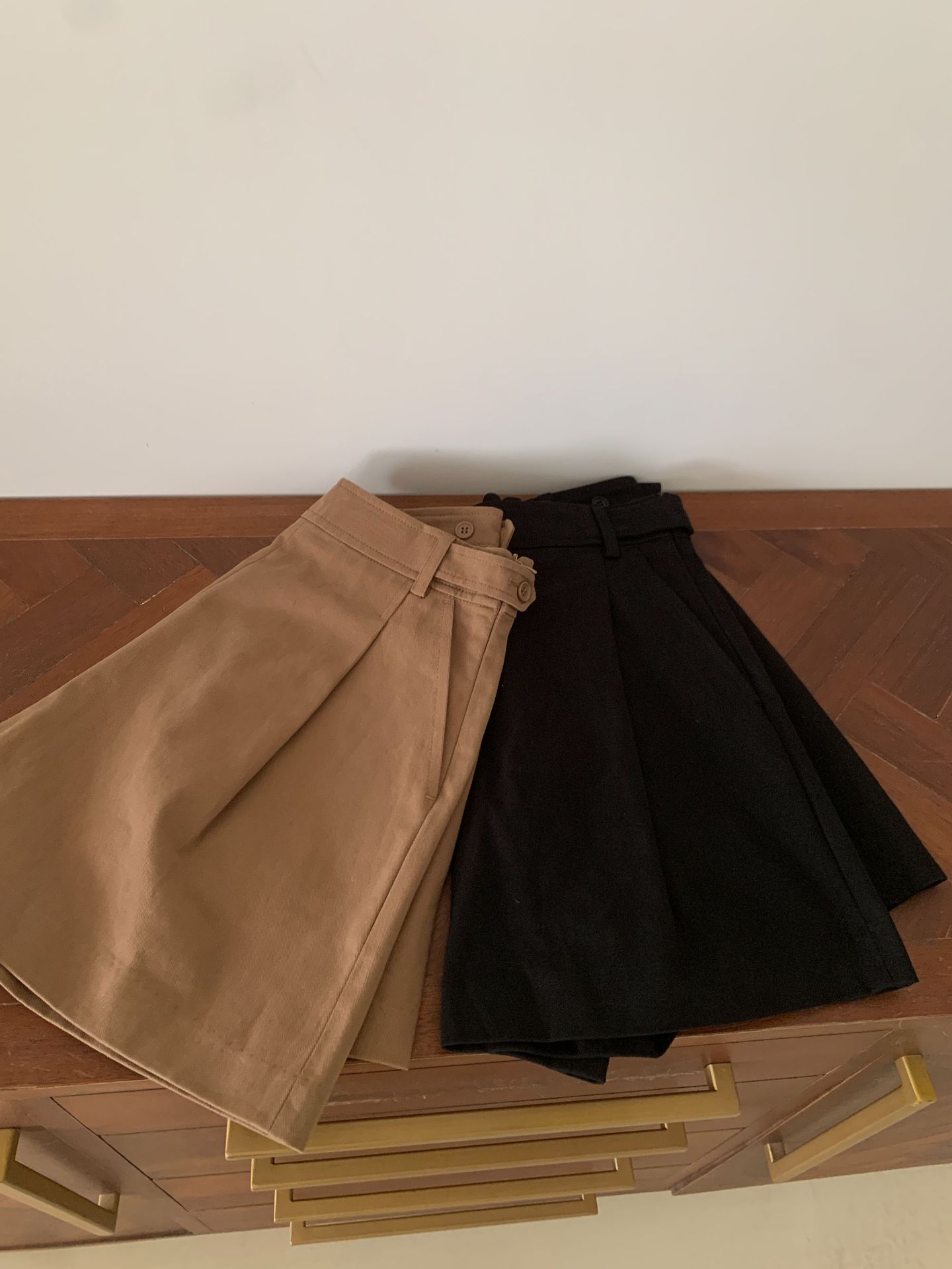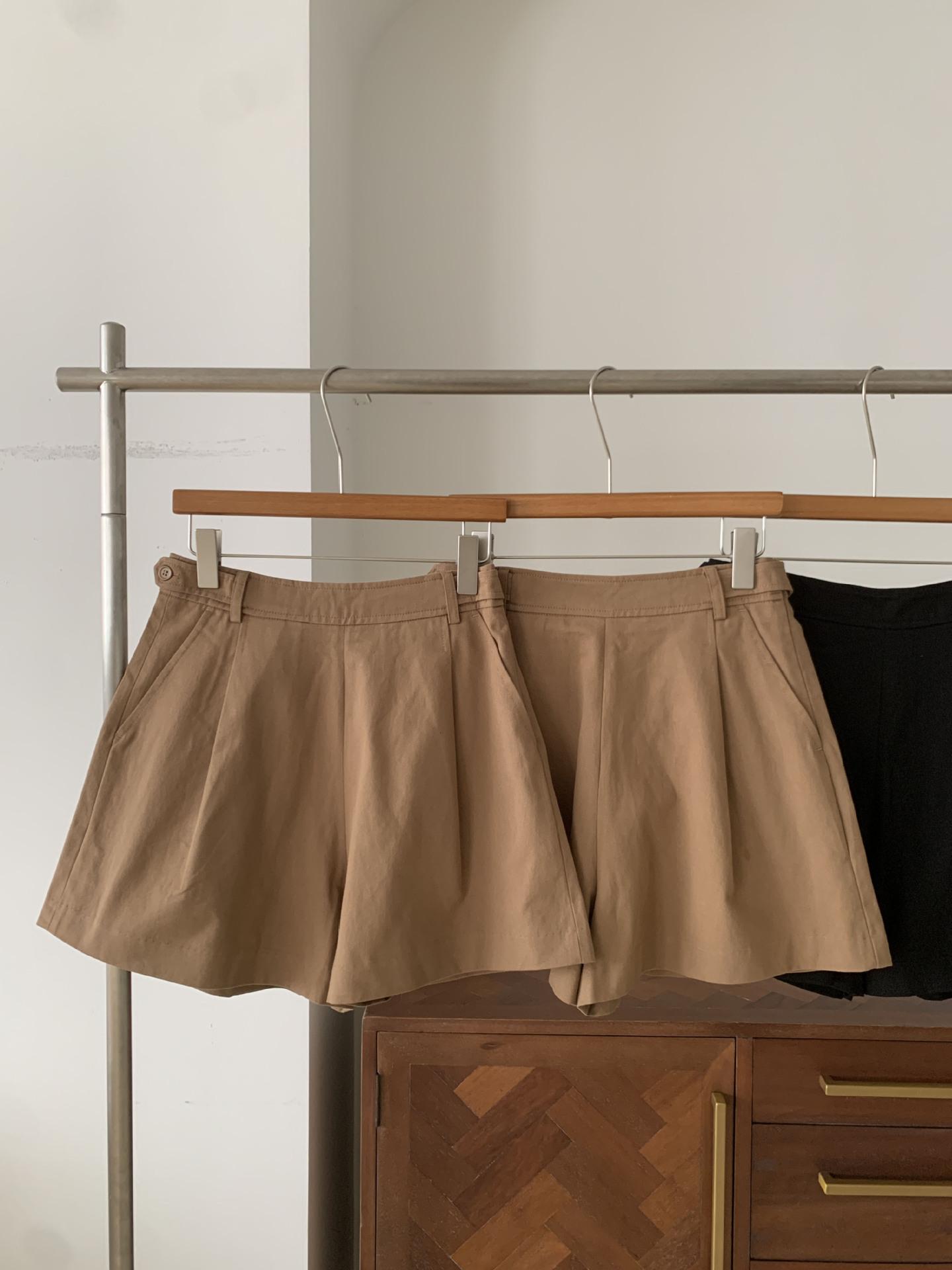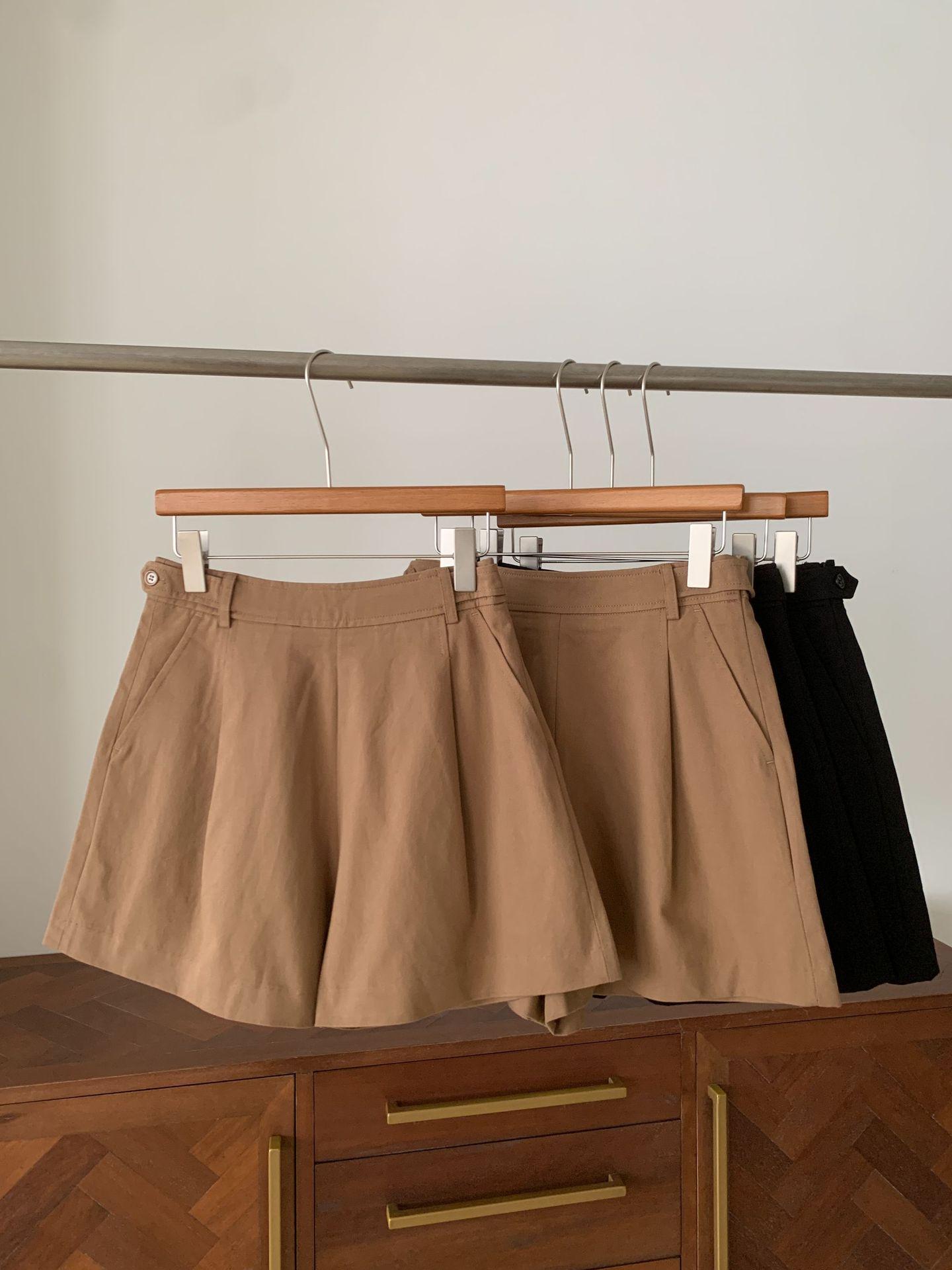 En stock Otoño 2025 Nuevo Coreano Dongdaemun OU*CE Temperamento Cintura Alta Sueltos Color Sólido Adelgazantes Línea A Shorts Casuales