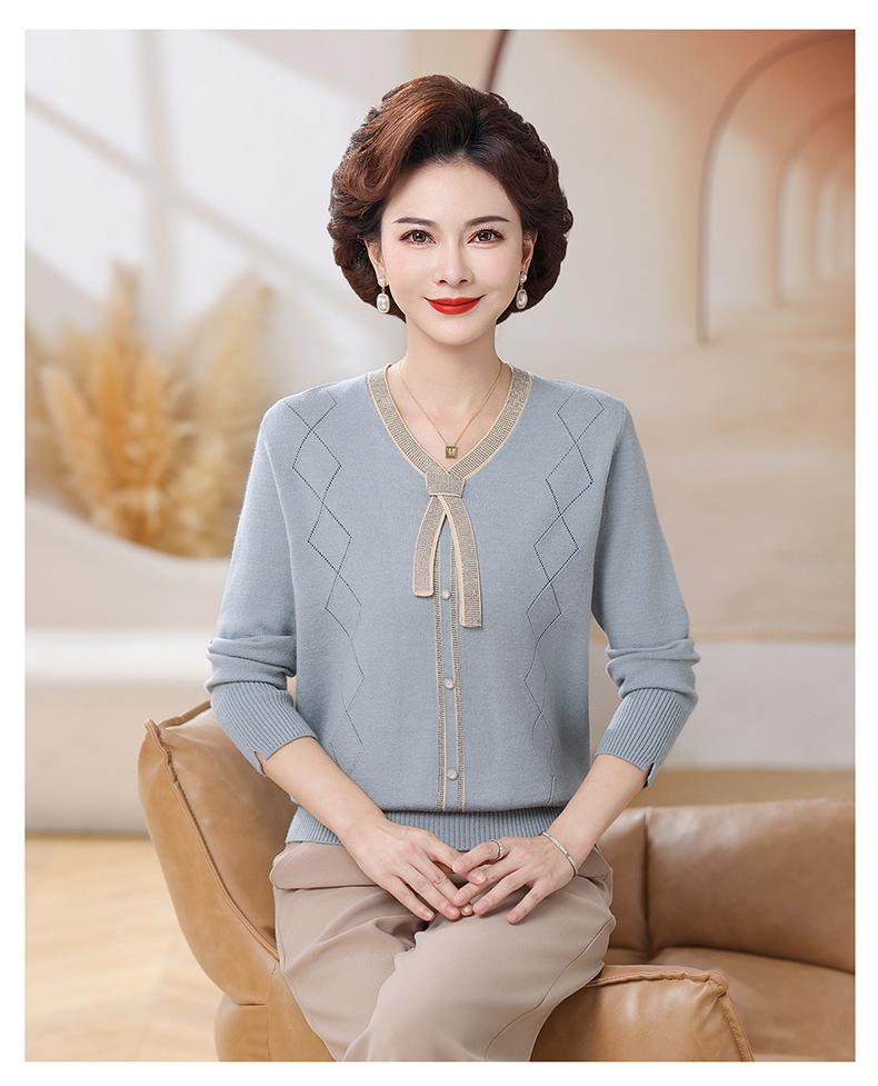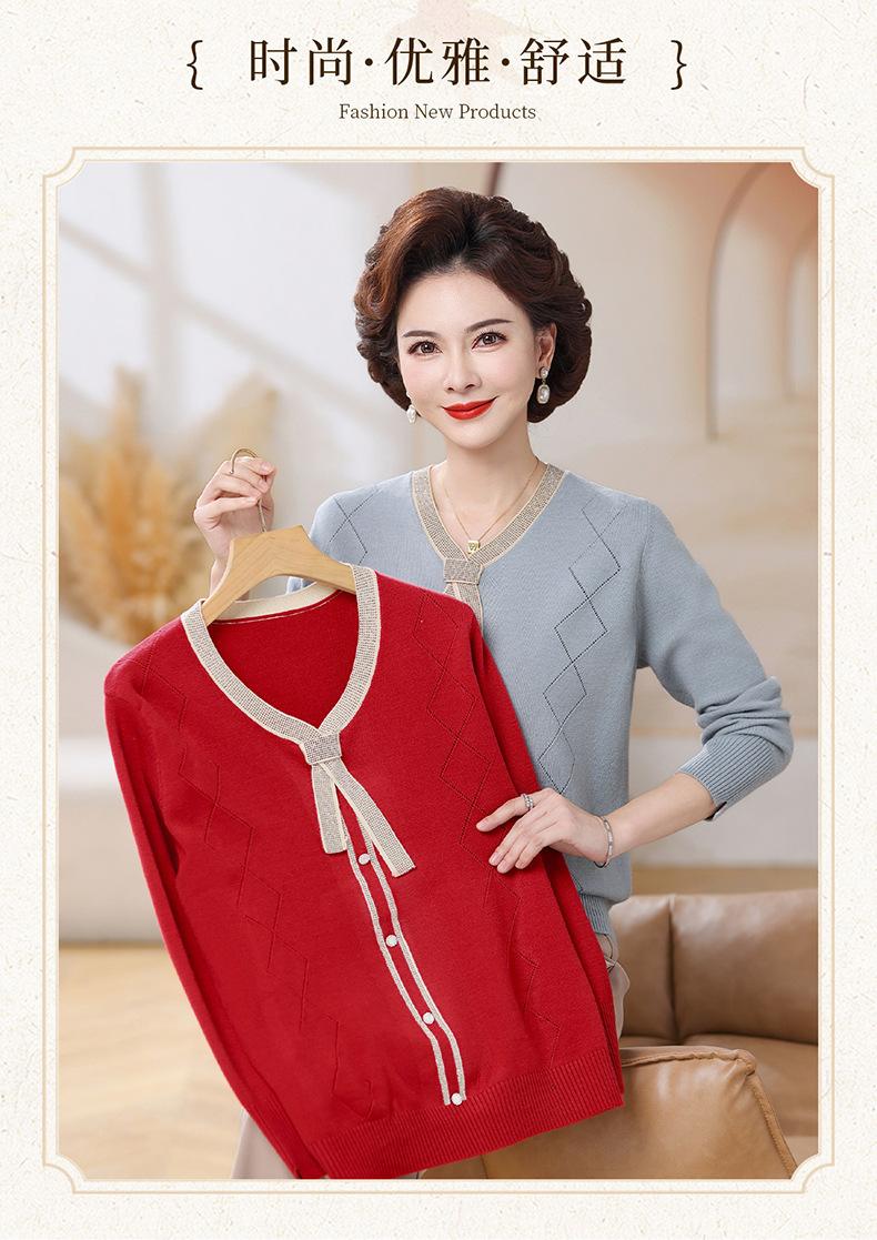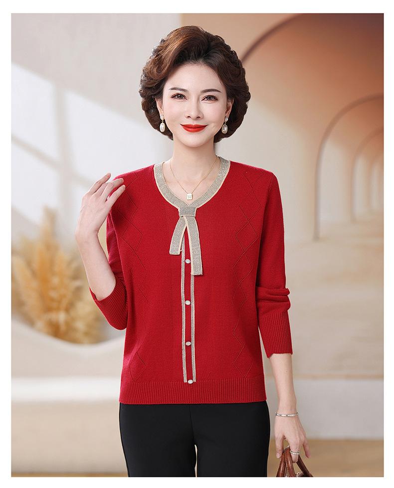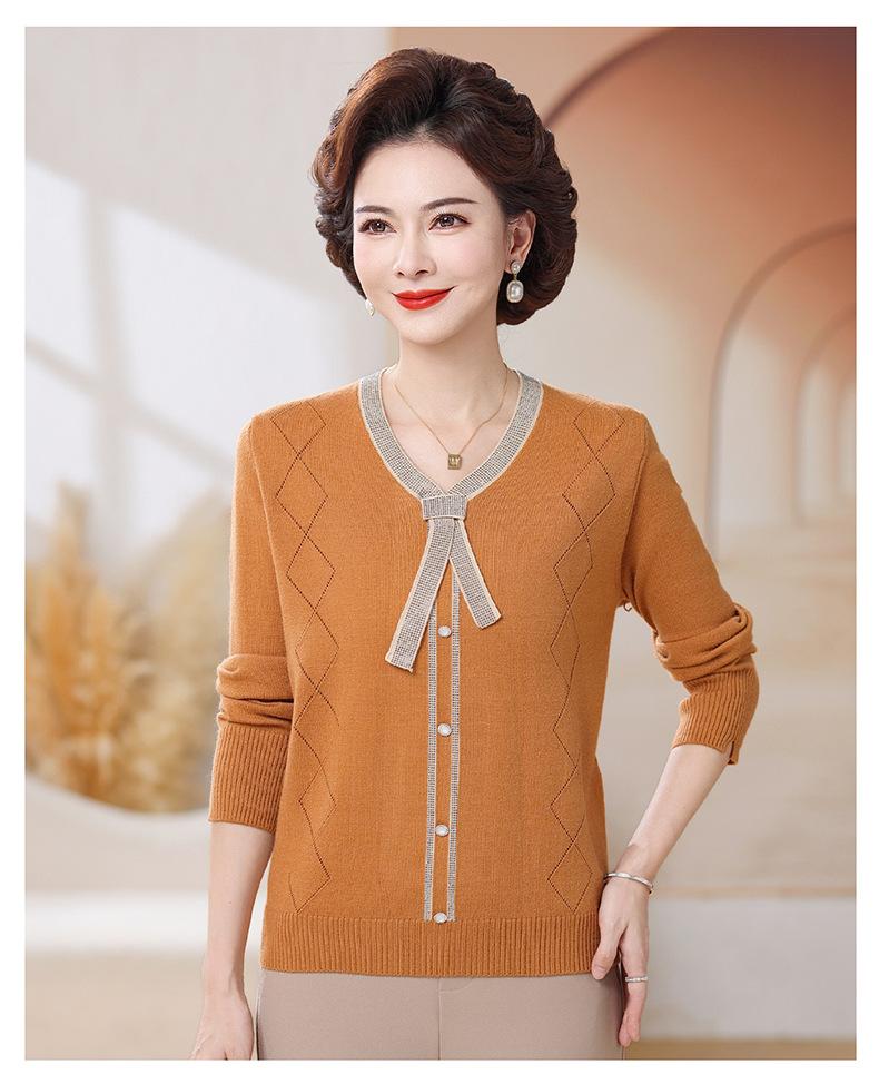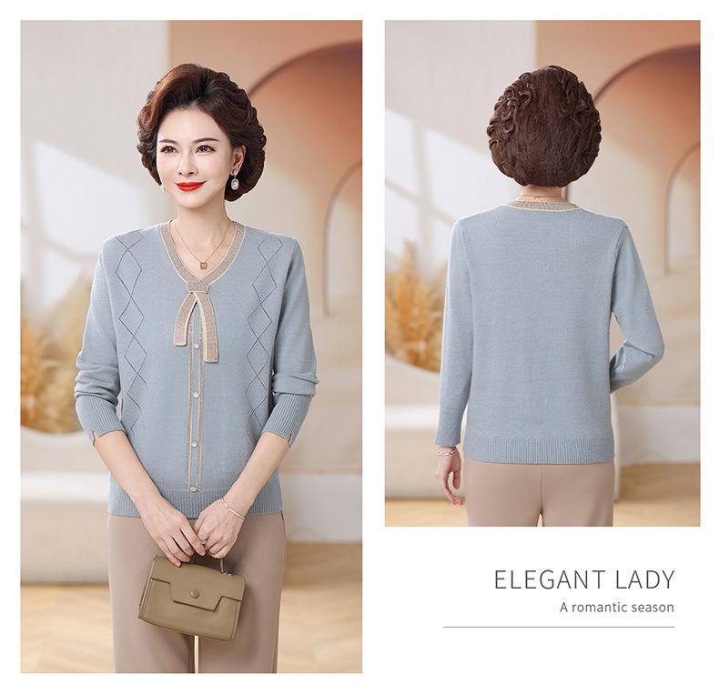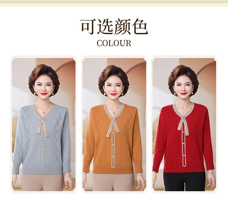 Suéter de Punto de Primavera y Otoño para Mamá Moda Cuello en V Top Base 2025 Nuevo Suéter de Manga Larga para Mujeres de Mediana Edad y Mayores