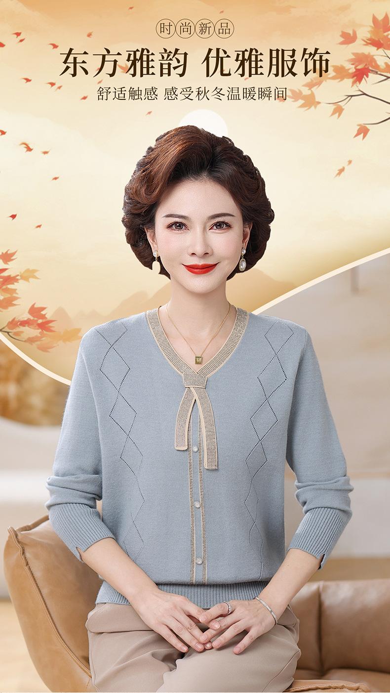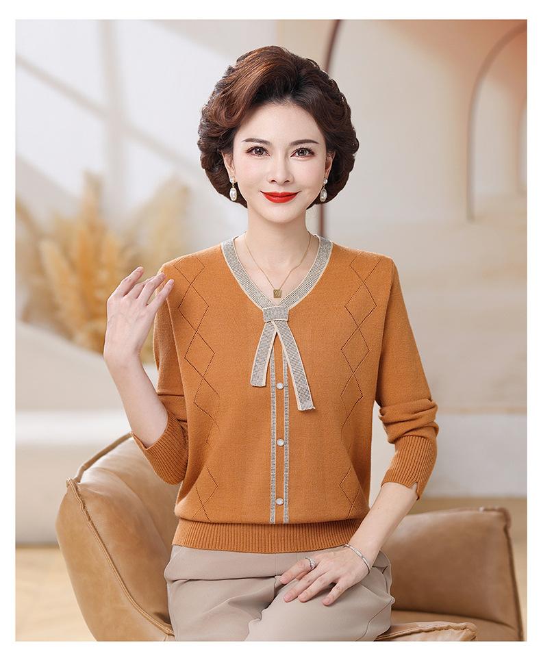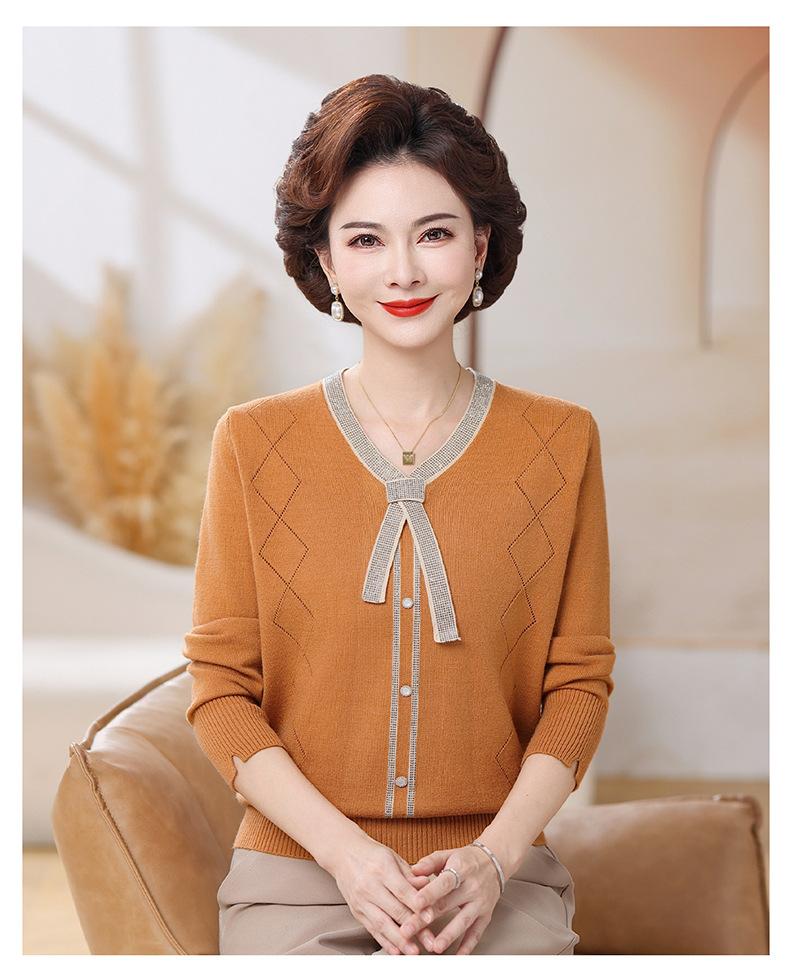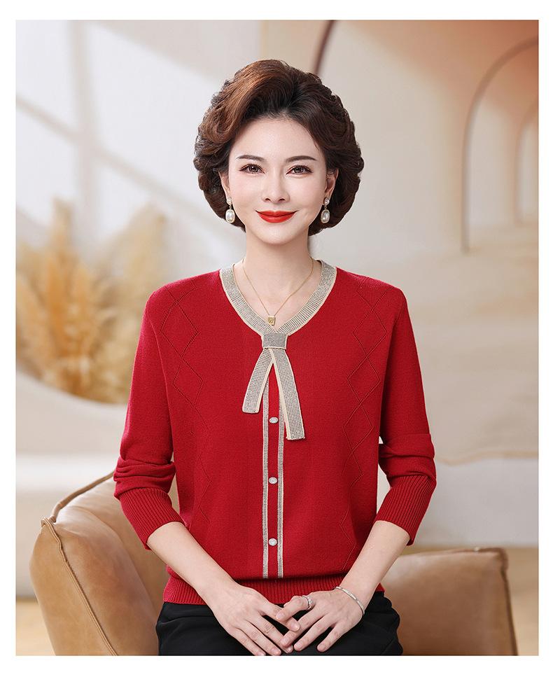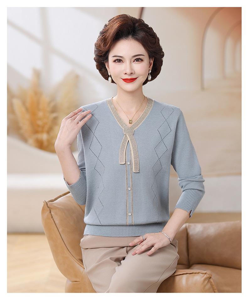Suéter de Punto de Primavera y Otoño para Mamá Moda Cuello en V Top Base 2025 Nuevo Suéter de Manga Larga para Mujeres de Mediana Edad y Mayores