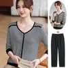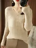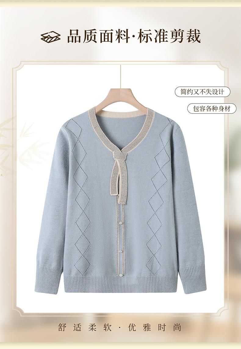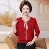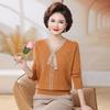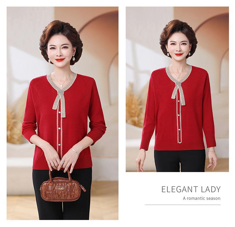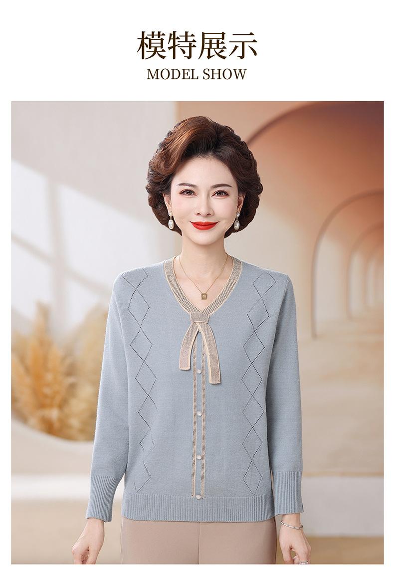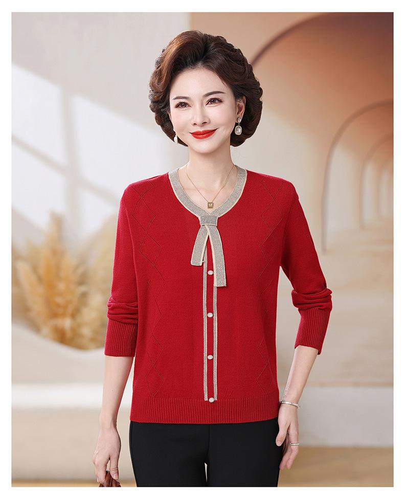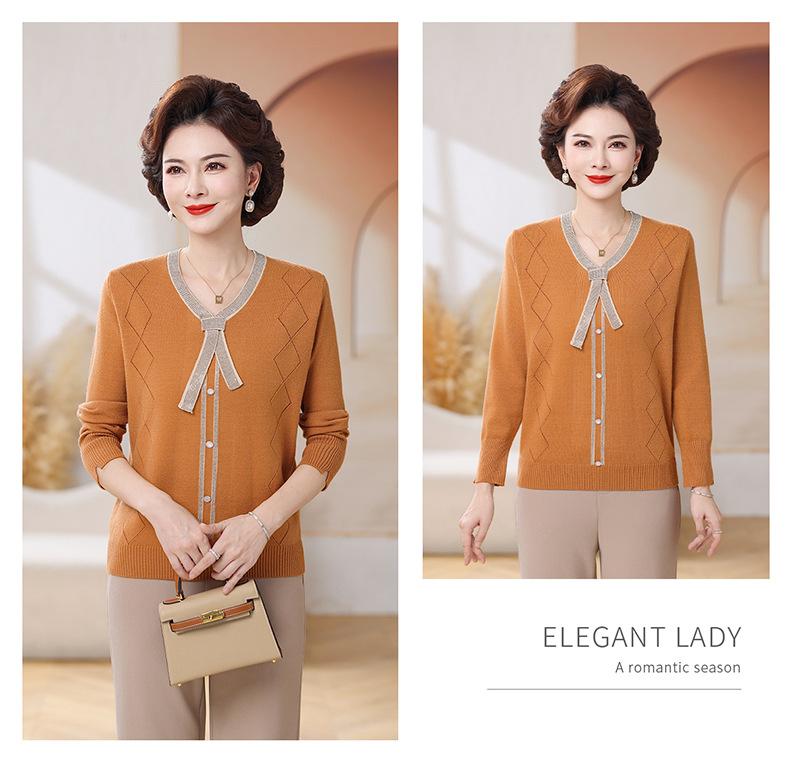 Suéter de Punto de Primavera y Otoño para Mamá Moda Cuello en V Top Base 2025 Nuevo Suéter de Manga Larga para Mujeres de Mediana Edad y Mayores
