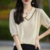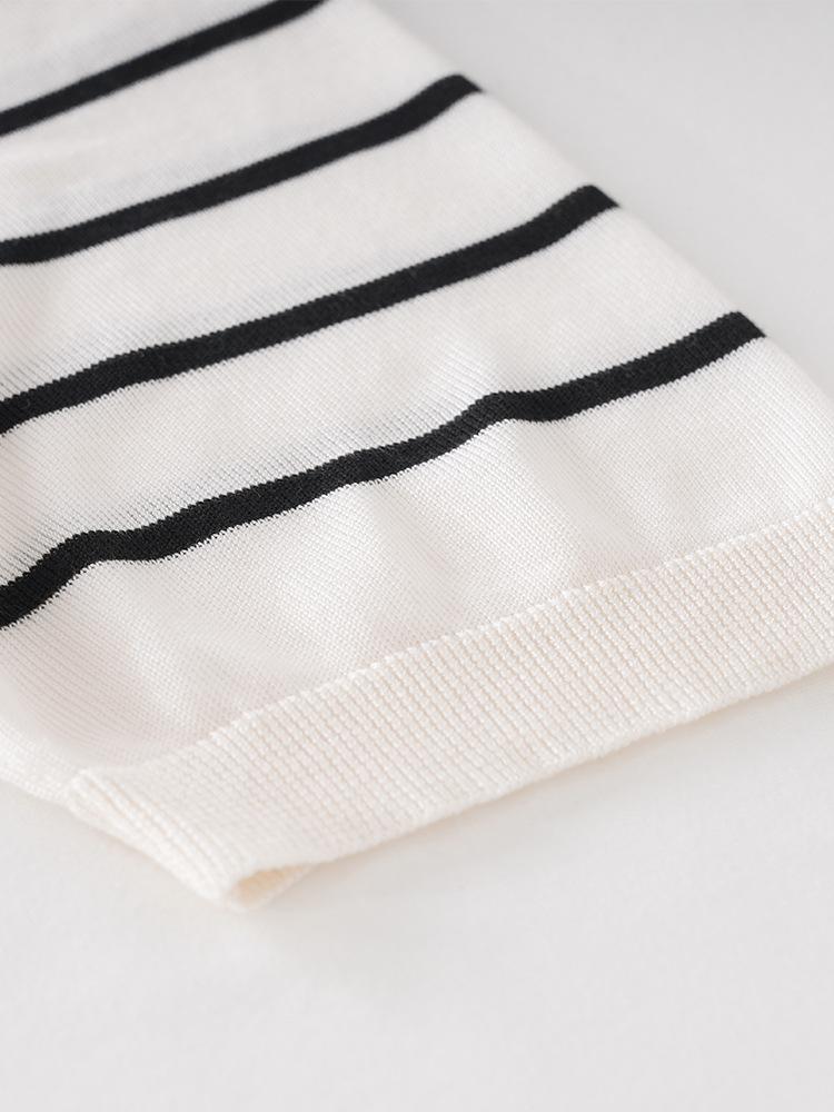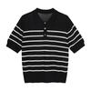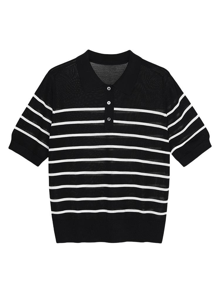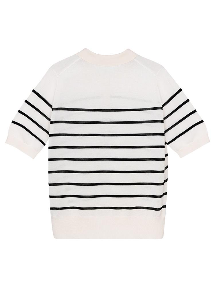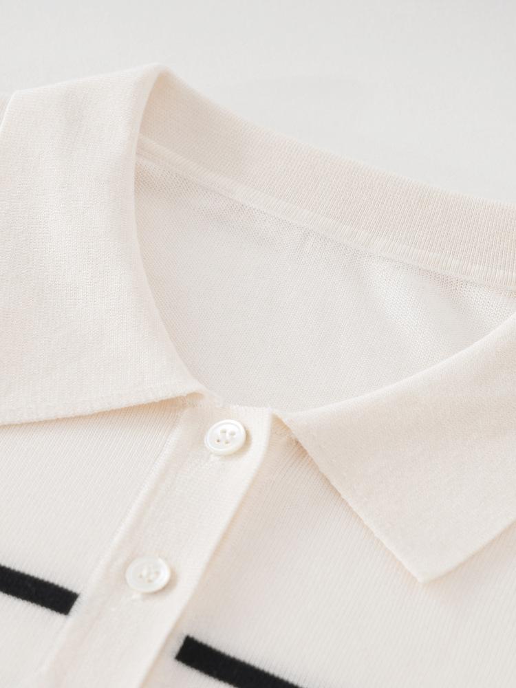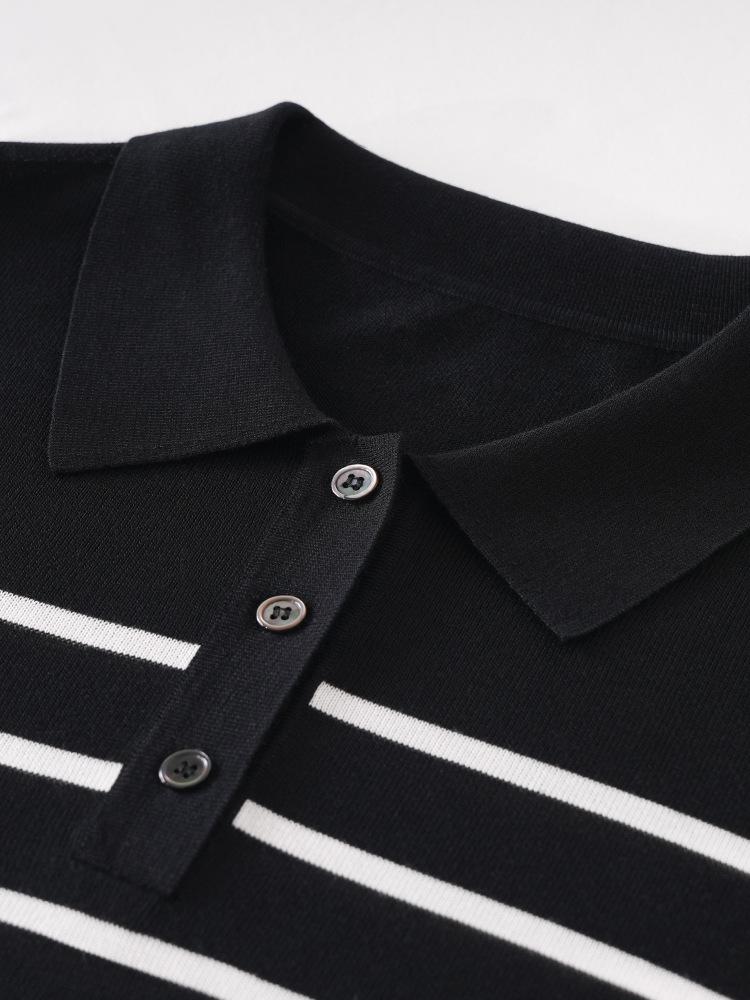 Suéter de Punto Clásico a Rayas 100 Tencel Lythel para Mujer Verano Delgado Ligero Maduro Estilo Dinero Manga Corta Cuello Polo Top
