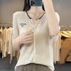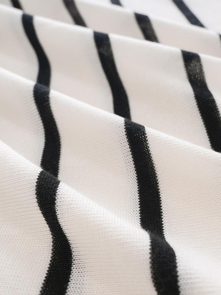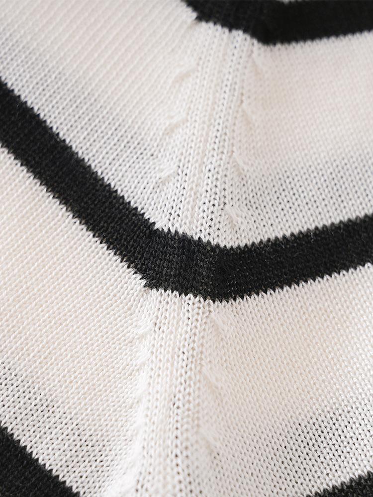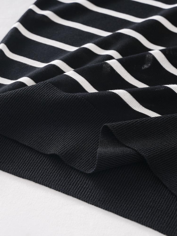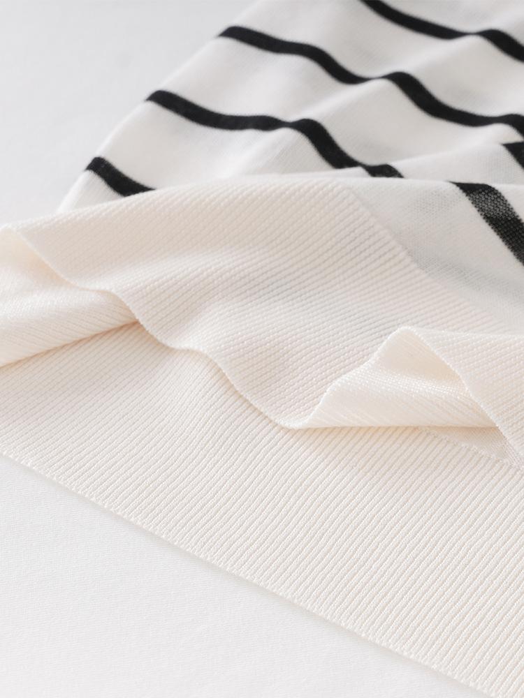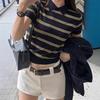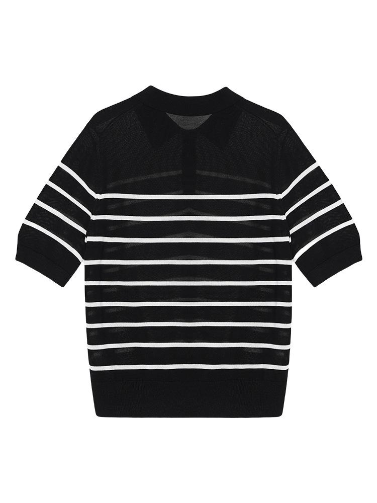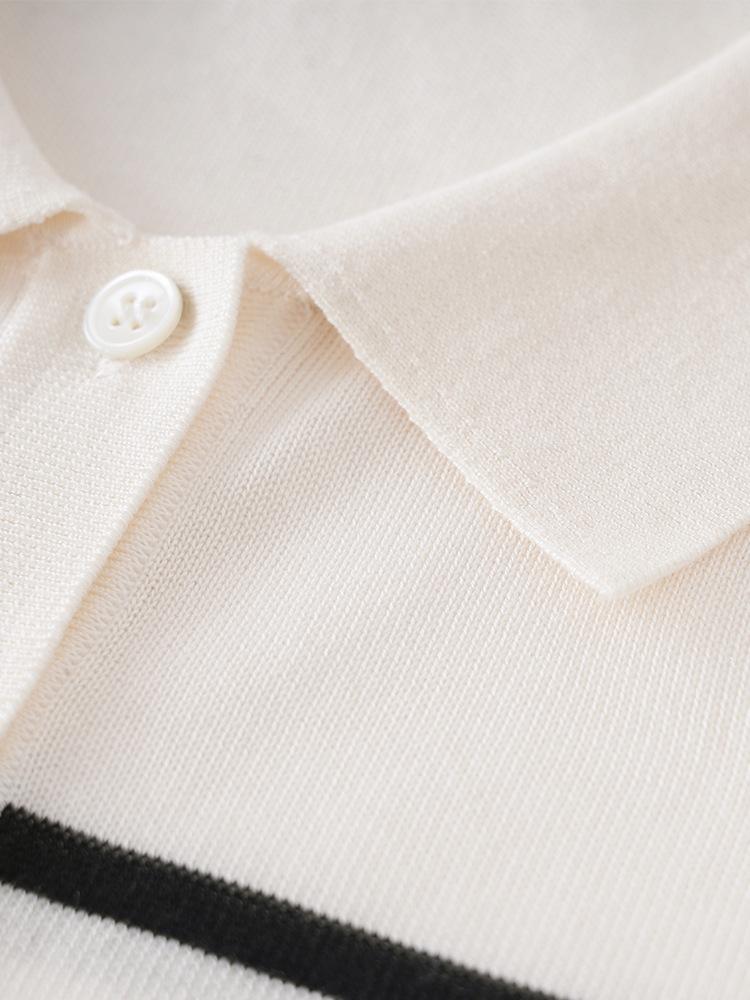 Suéter de Punto Clásico a Rayas 100 Tencel Lythel para Mujer Verano Delgado Ligero Maduro Estilo Dinero Manga Corta Cuello Polo Top