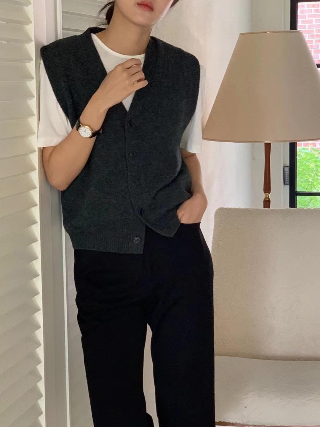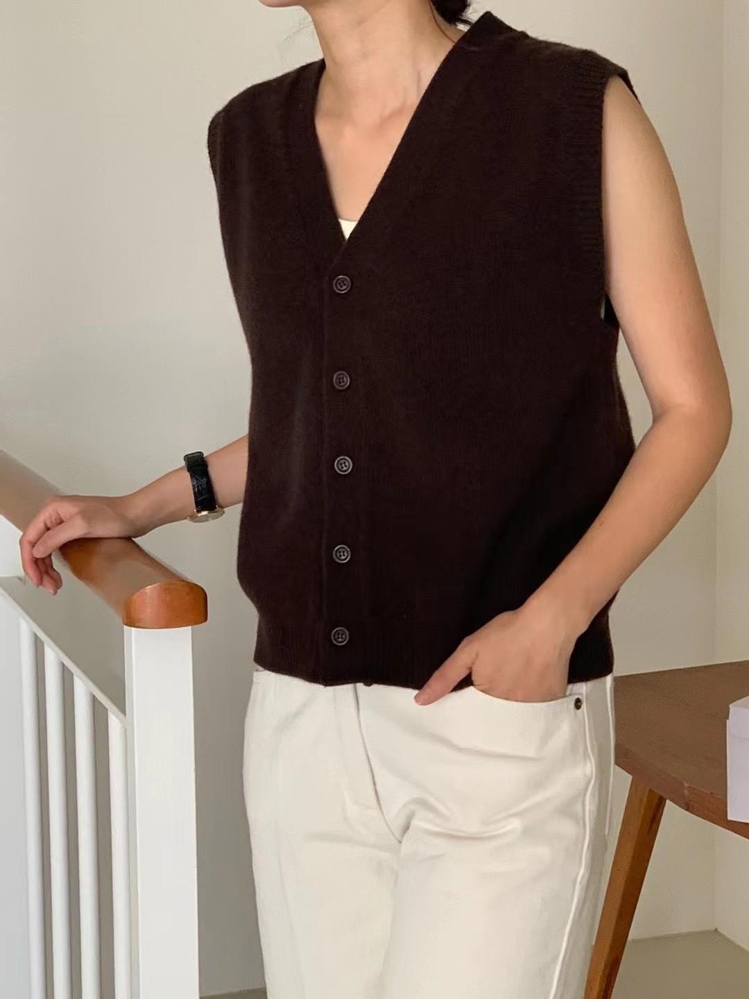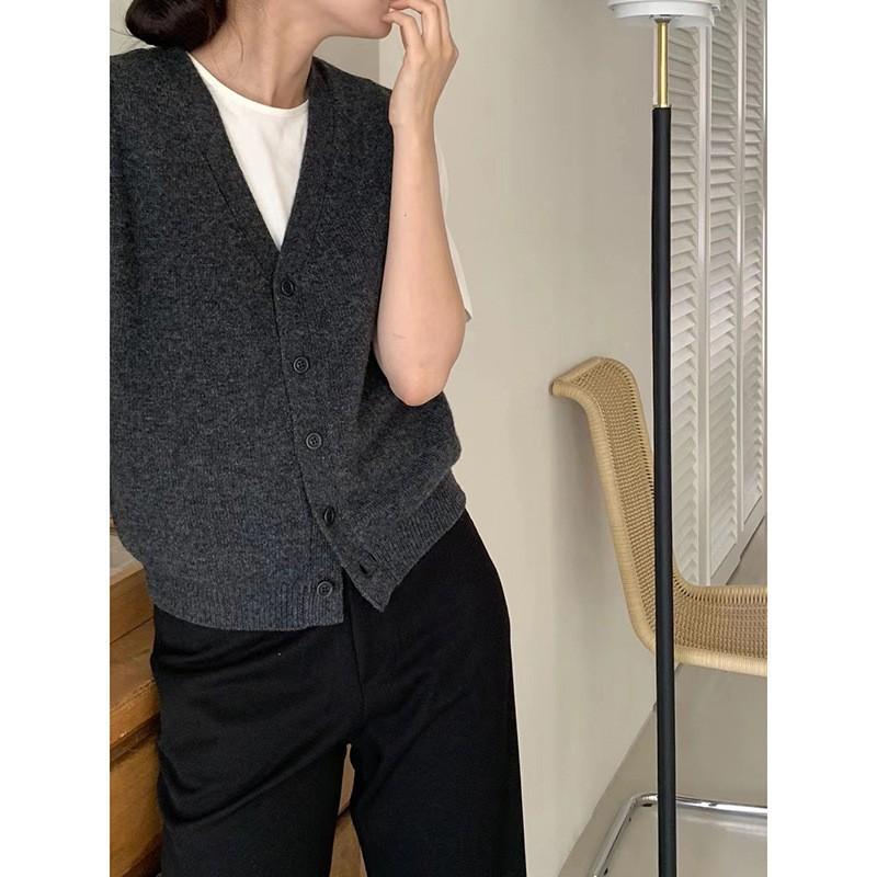 Estilo Coreano Otoño e Invierno Nuevo Cárdigan de Punto Chaleco Chaleco Suéter de Mujer Cuello en V Sin Mangas Top Apilado para Ropa Exterior