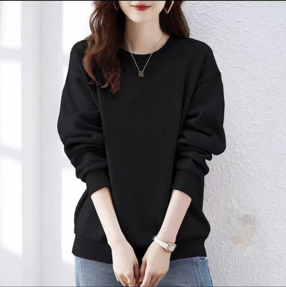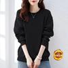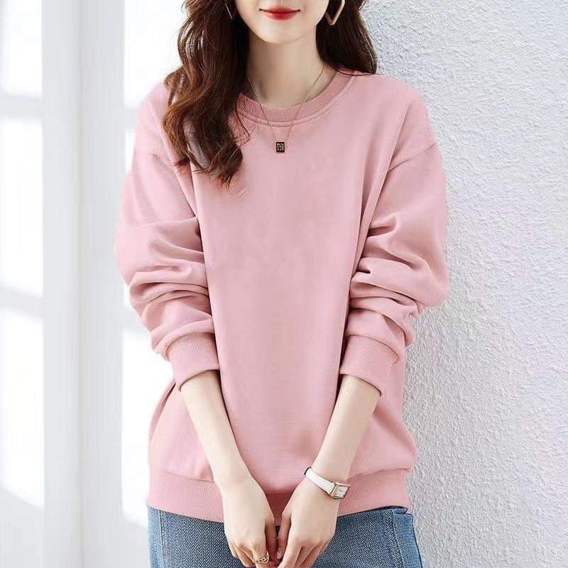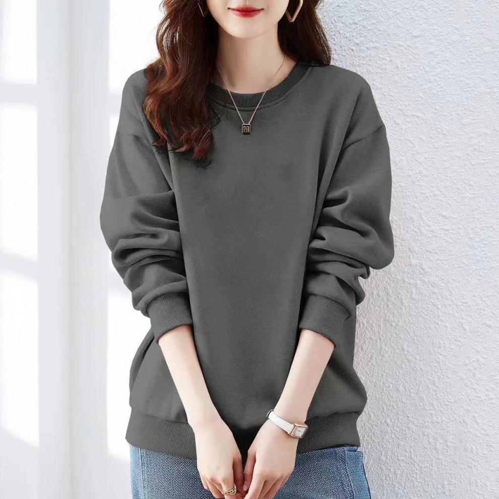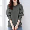 Top de mujer con cuello redondo suelto, de algodón grueso y forrado de vellón, estilo coreano, de primavera y otoño, color sólido, explosivo.