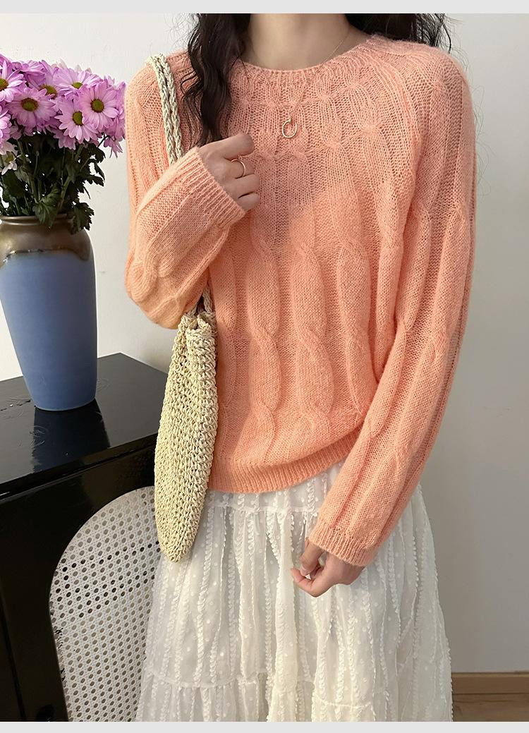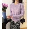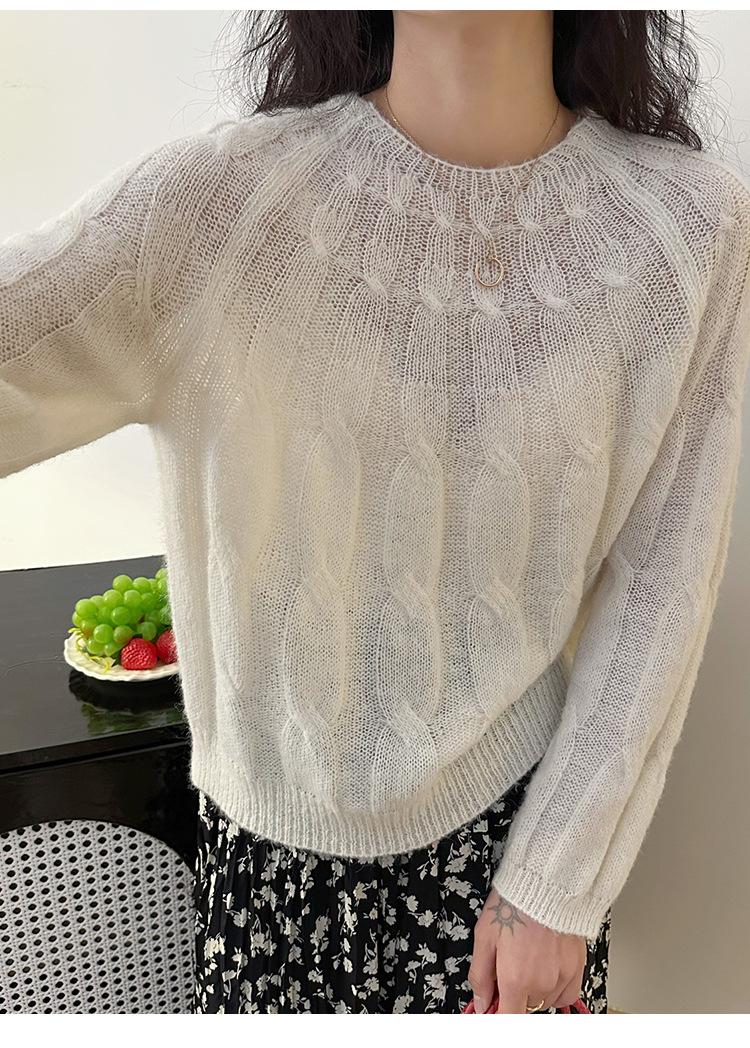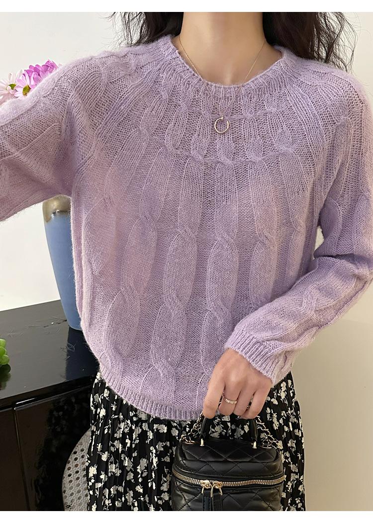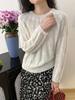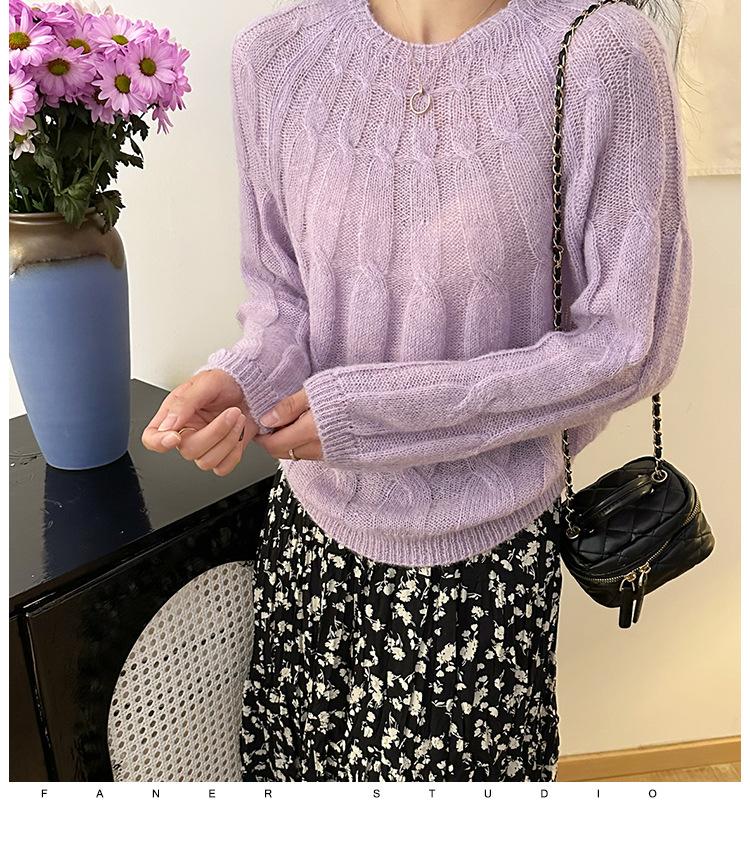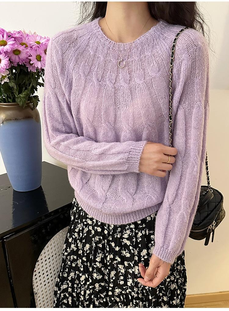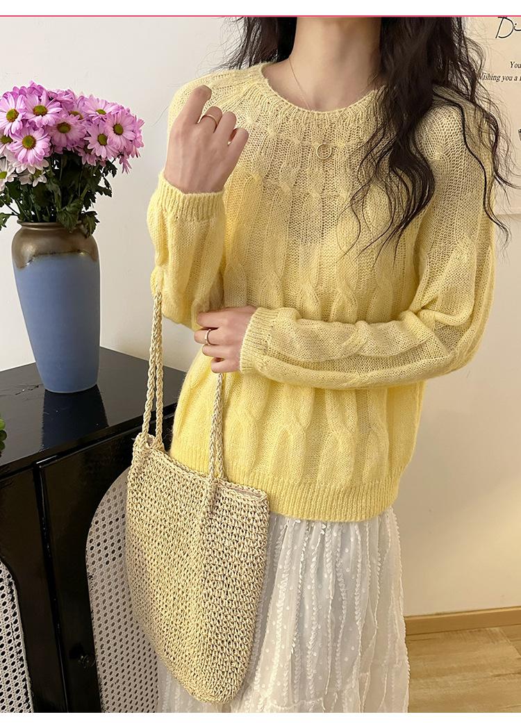 Suéter de Punto de Mohair de Color Sólido Exquisito Francés Cuello Redondo Manga Larga para Mujer Primavera Otoño Estilo Único Simple Relajado Top Holgado