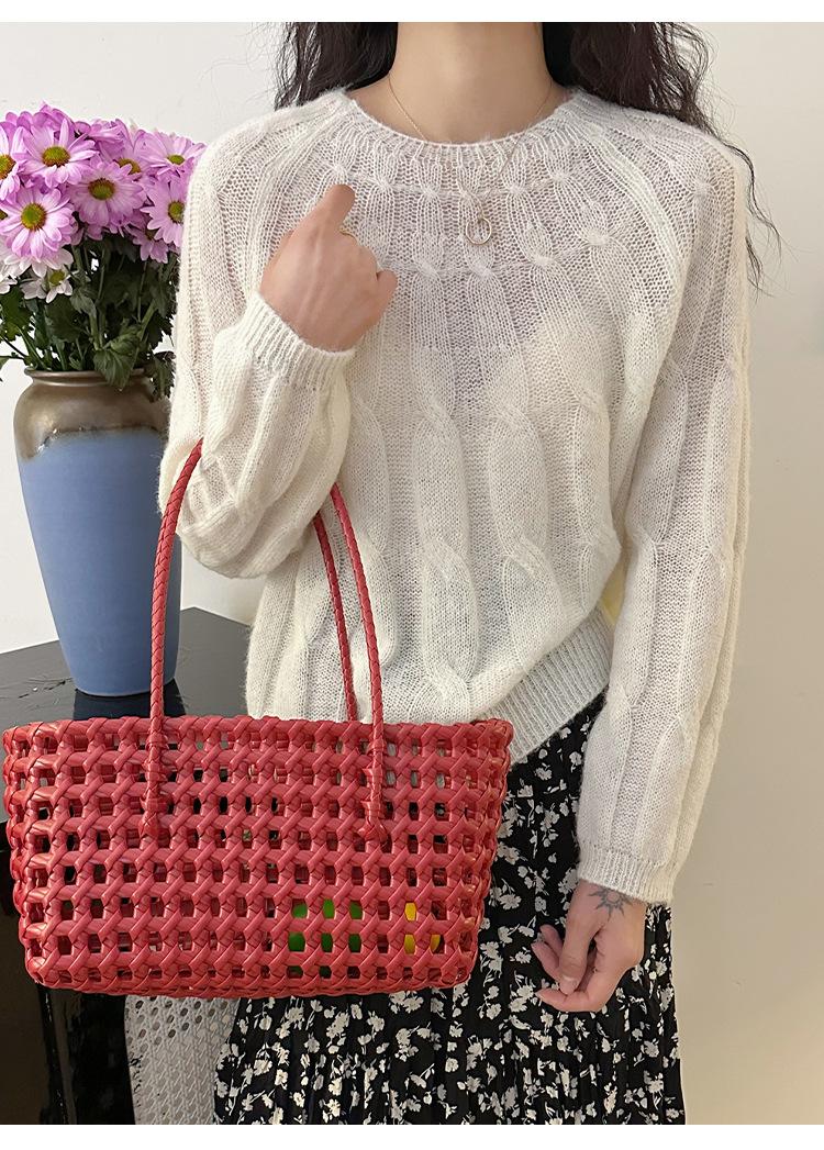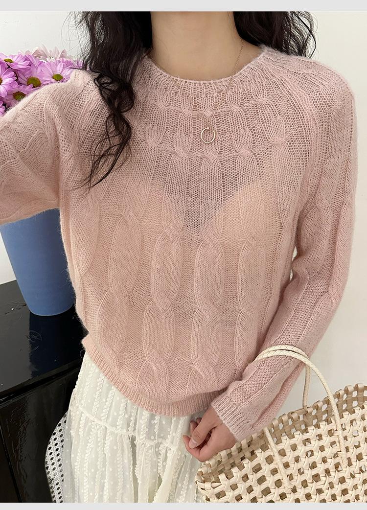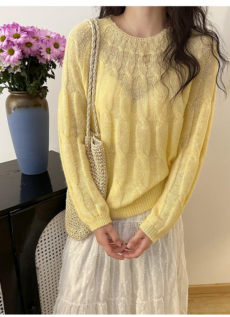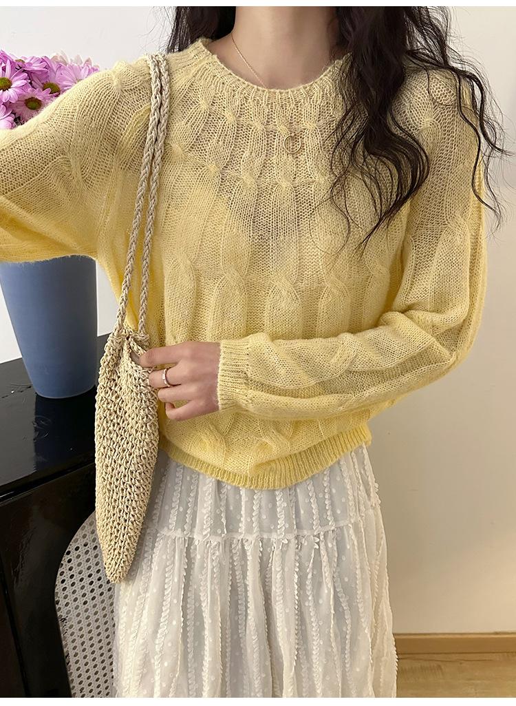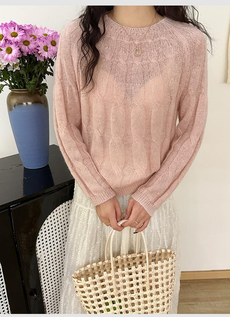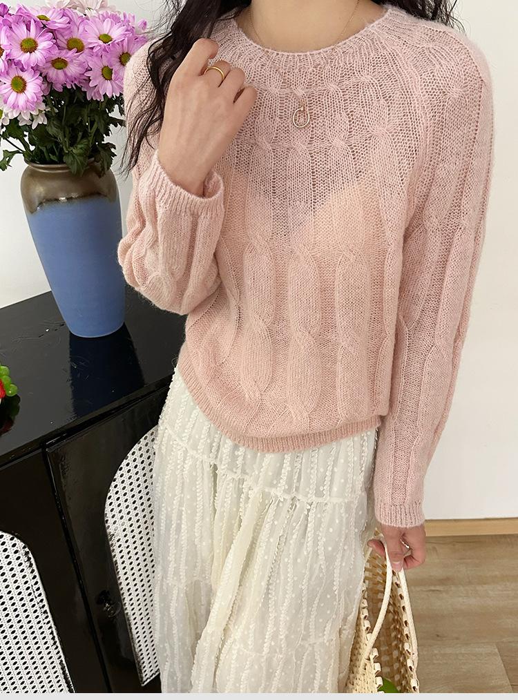Suéter de Punto de Mohair de Color Sólido Exquisito Francés Cuello Redondo Manga Larga para Mujer Primavera Otoño Estilo Único Simple Relajado Top Holgado