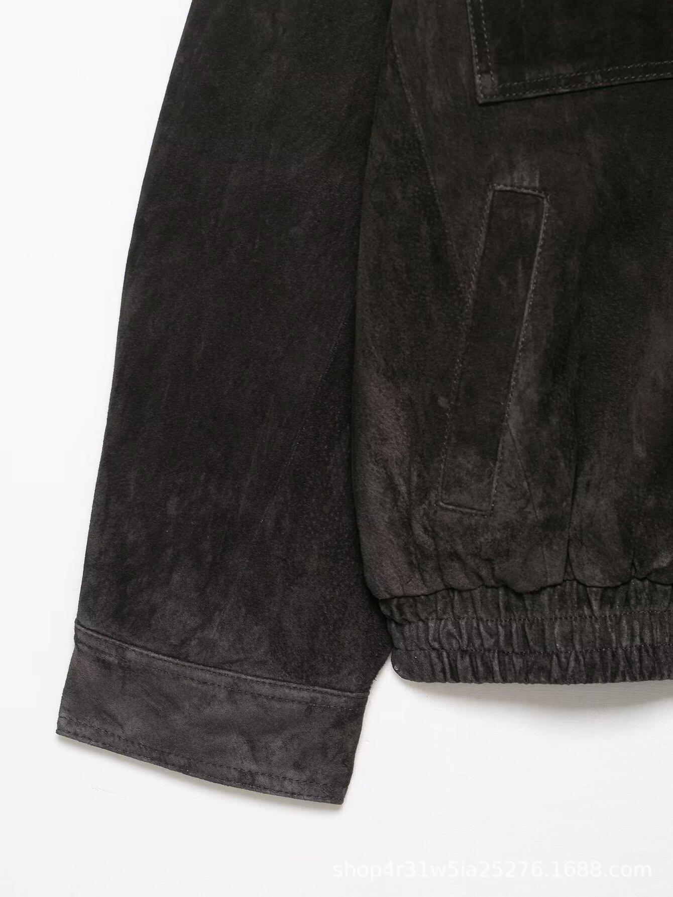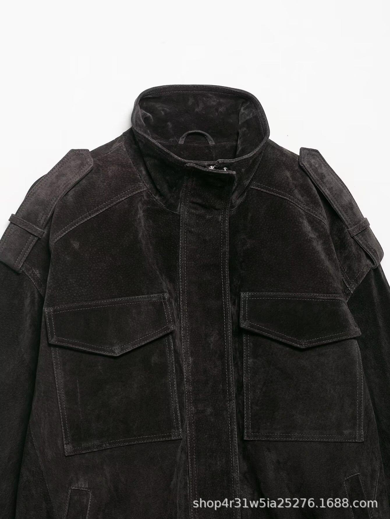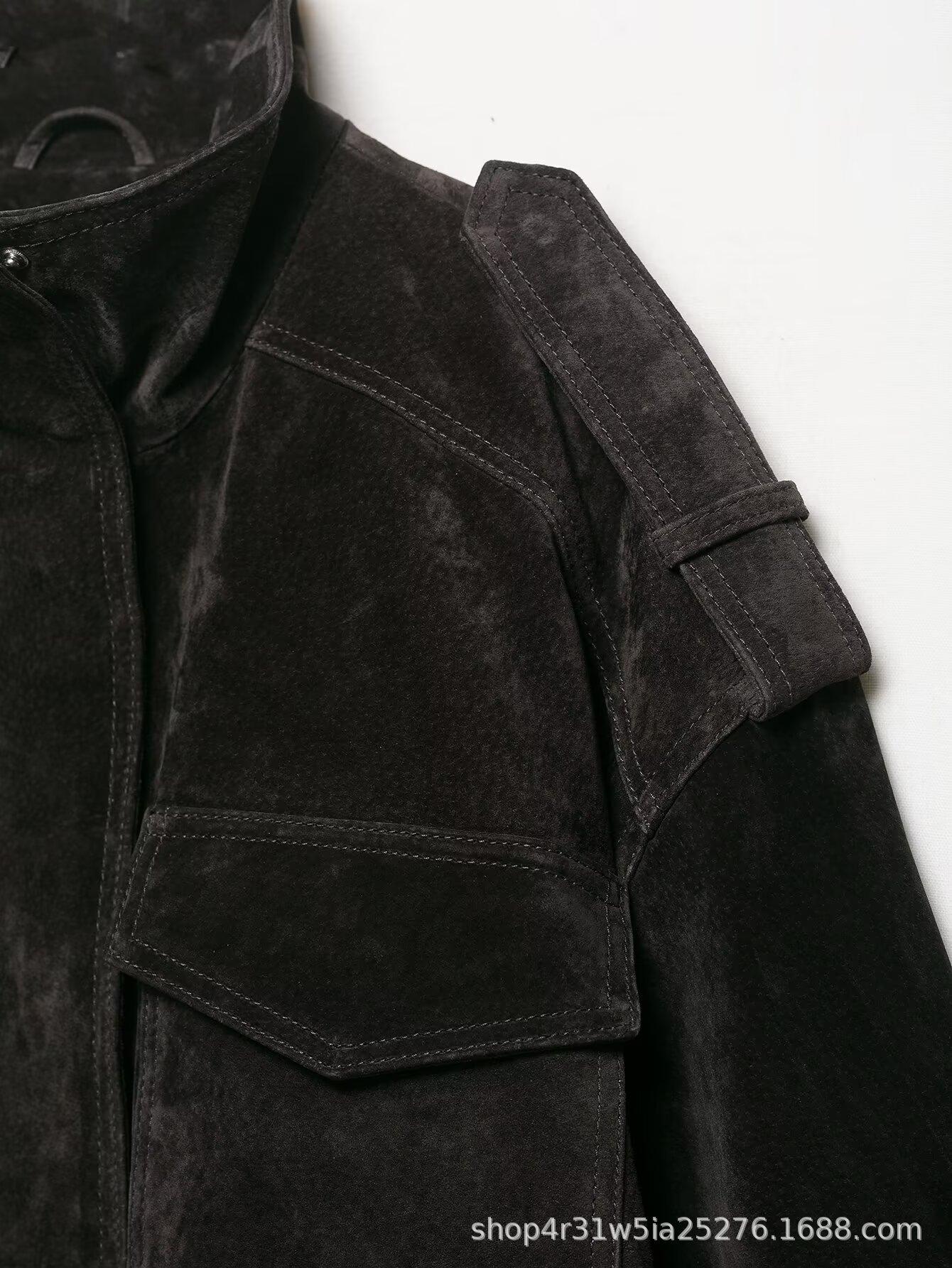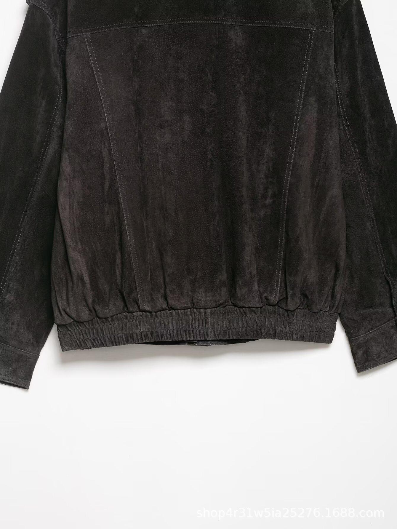 Estilo europeo y americano 2025 otoño nueva moda casual versátil textura de gamuza chaqueta de cuero top