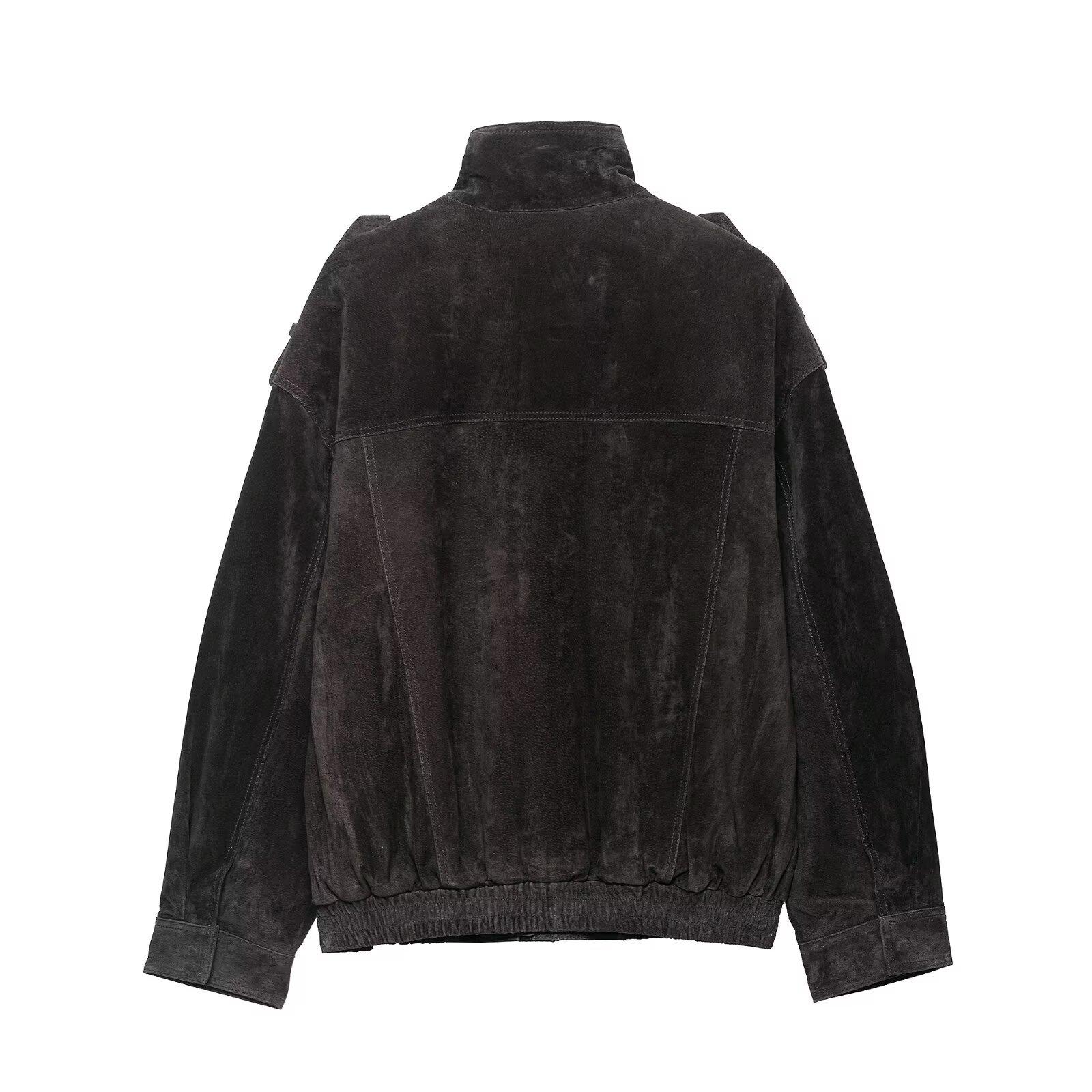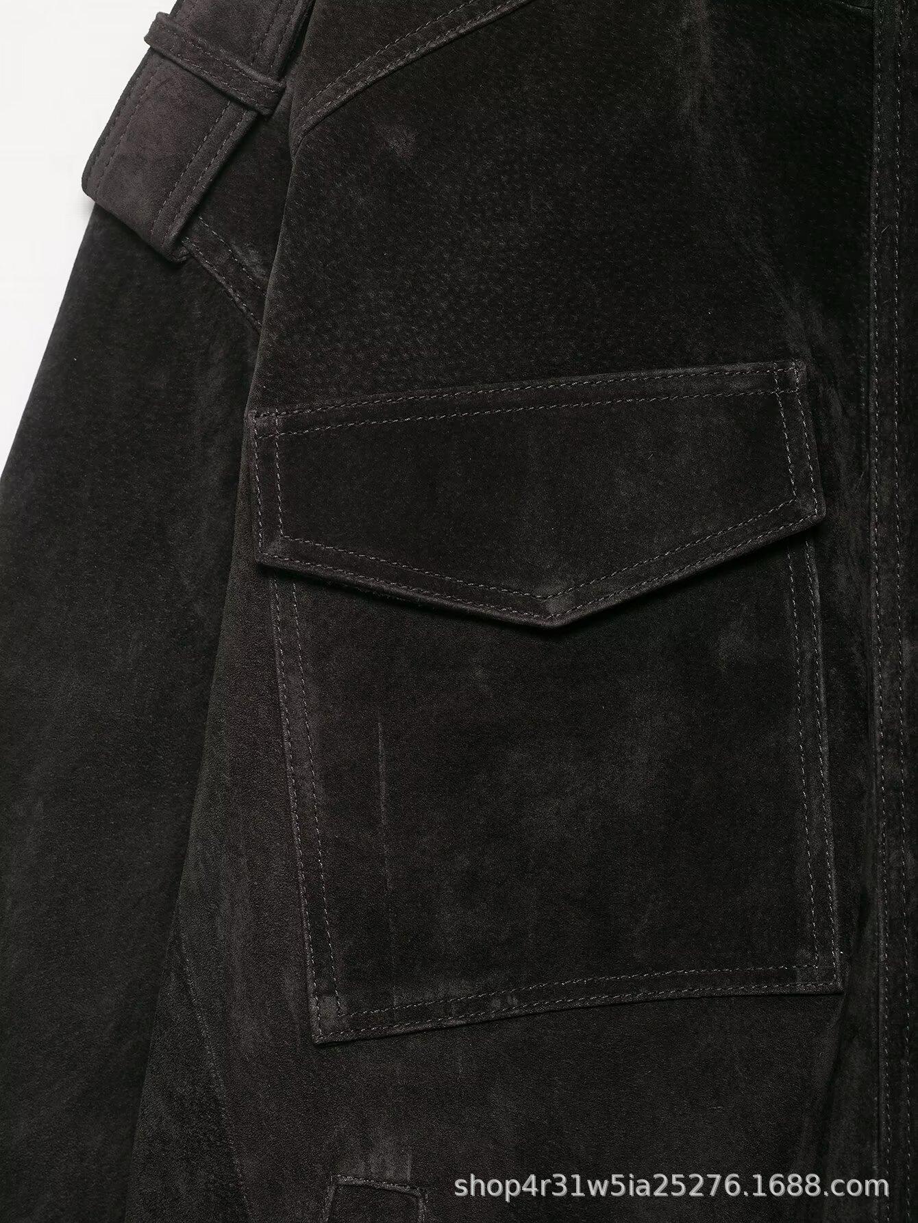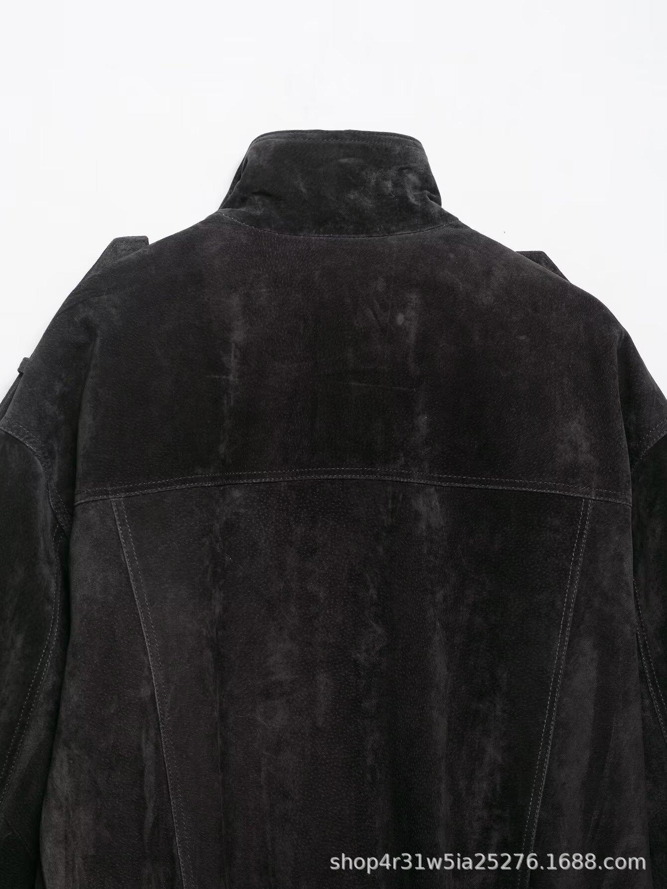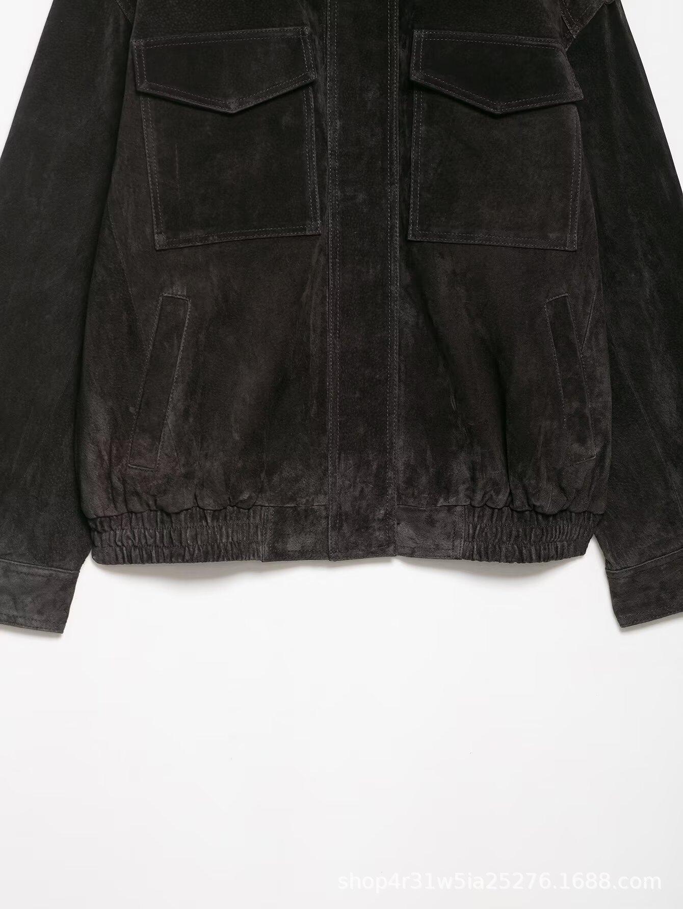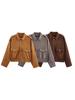 Estilo europeo y americano 2025 otoño nueva moda casual versátil textura de gamuza chaqueta de cuero top