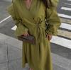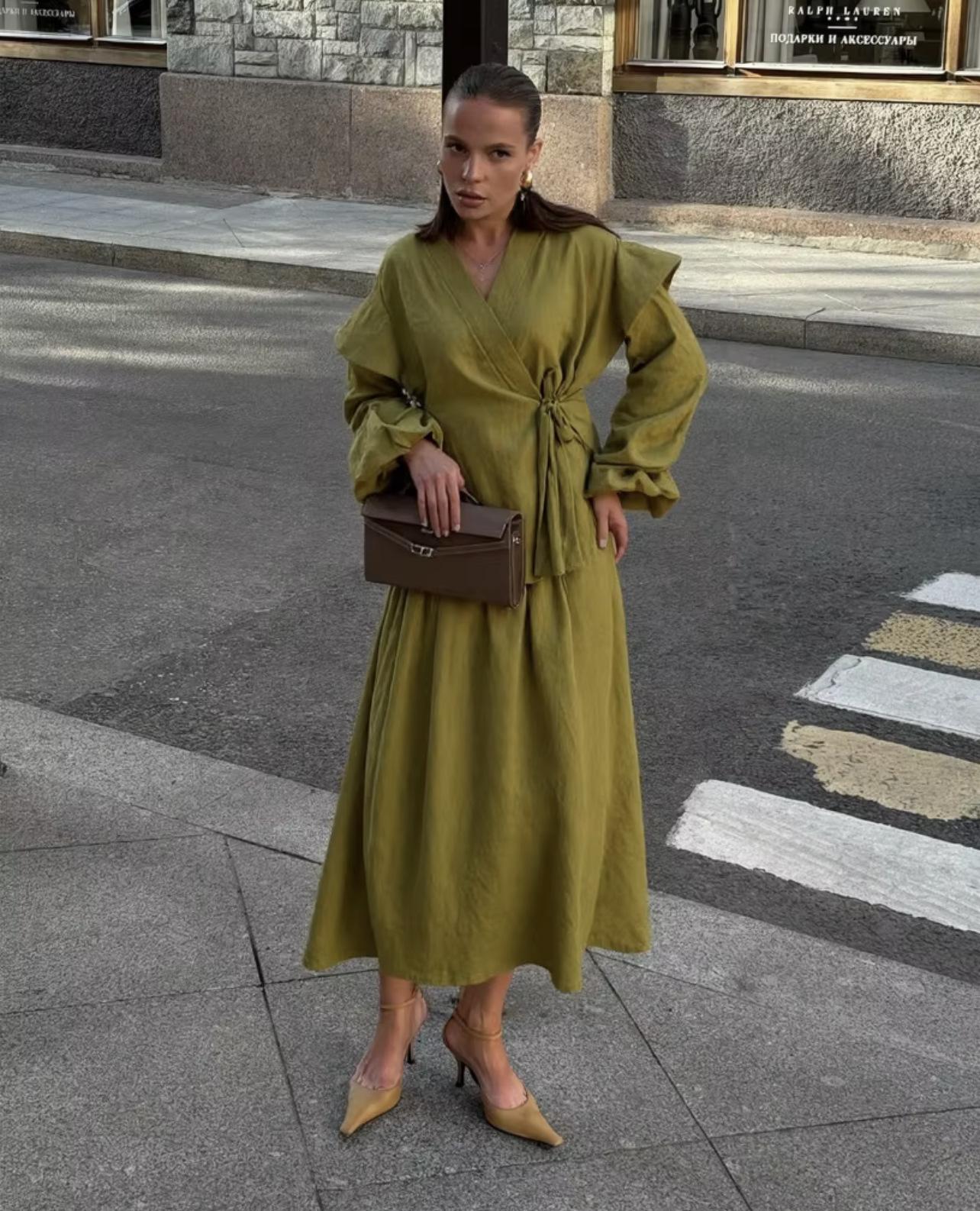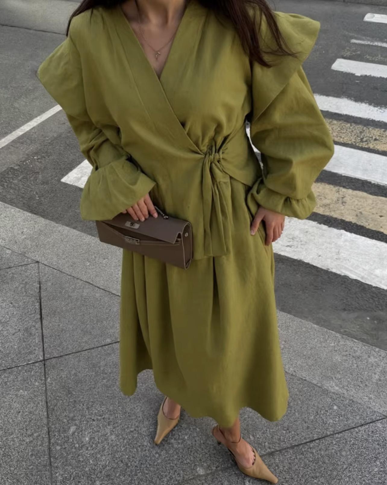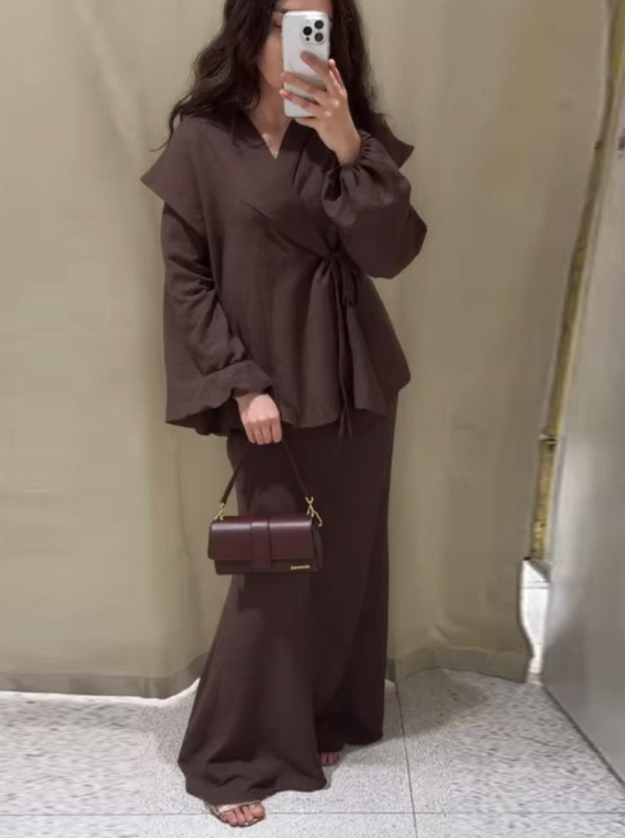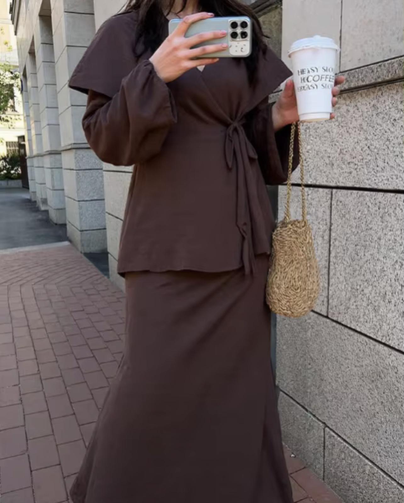 Exclusivo Transfronterizo Moda Europea y Americana Aliexpress Ins Popular Color Sólido Casual Top con Cordones + Set de Falda