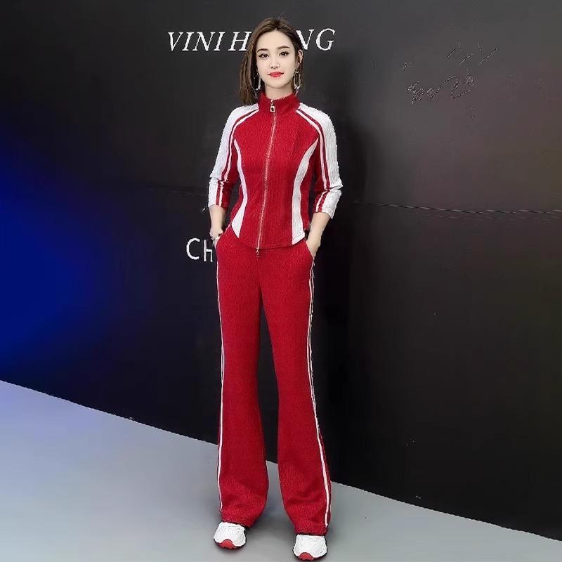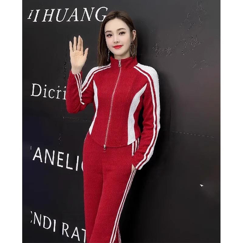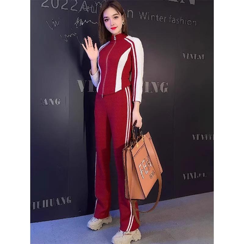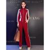 Conjunto deportivo casual de estilo europeo para mujer primavera y otoño 2025 nueva moda y elegante top cárdigan con cuello alto conjunto de dos piezas adelgazante