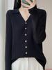 Nuevo Cárdigan de Punto con Solapa de Terciopelo Andy para Otoño Temprano 2025, Manga Larga para Mujer, Color Sólido, Rayado, Holgado, Versátil