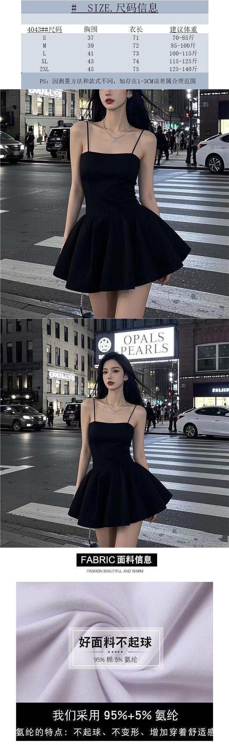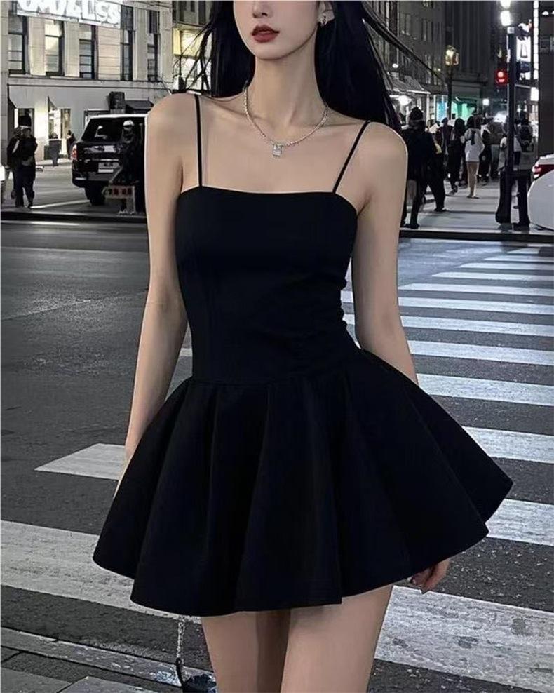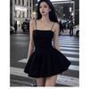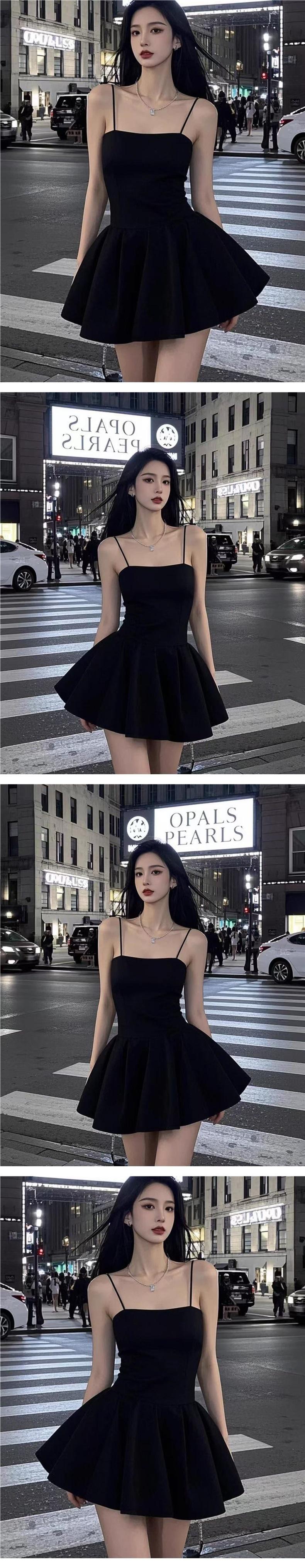 Vestido Negro Hepburn Francés de Tirantes Finos Verano Nuevo Temperamento de Alta Gama Adelgazante de Cintura Pequeño Vestido Negro Falda Corta