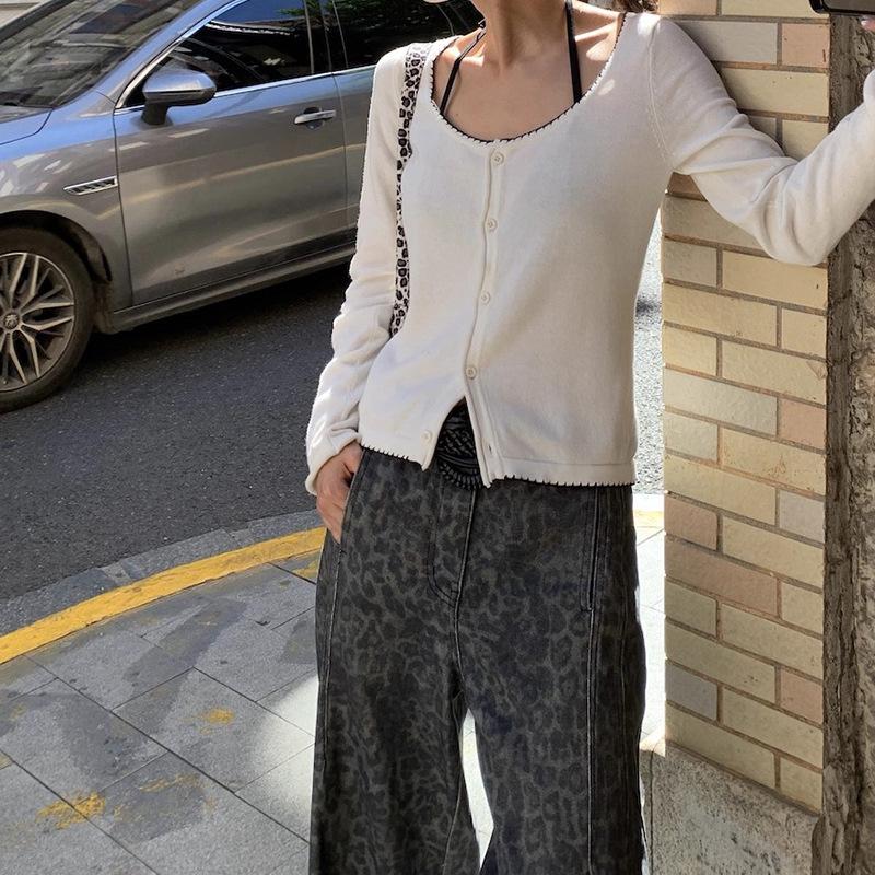 ¡X Cómodo! Cárdigan de Punto con Bordado de Crochet Color Block de Manga Larga para Mujer Top de Capas de Botonadura Sencilla Otoño 2025 Nuevo