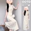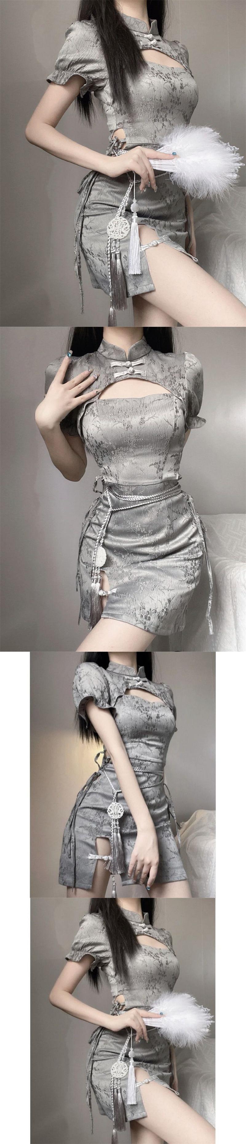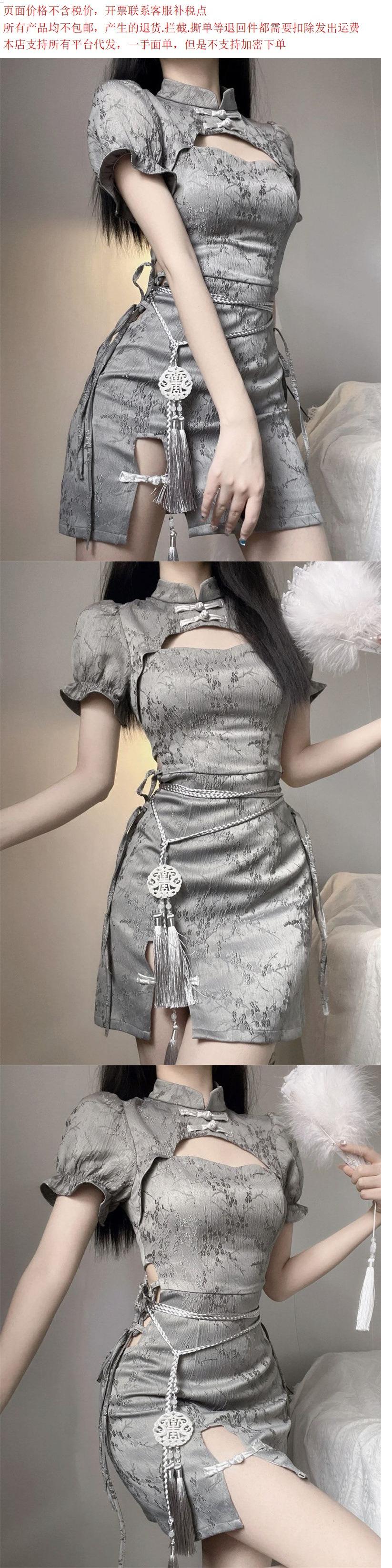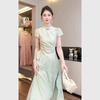 (Preventa) Nuevo Vestido Cheongsam Mejorado de Estilo Chino con Mangas Cortas Caladas para Mujer, Nuevo Estilo de Verano y Otoño 2024, Elegante y Ceñido a la Cintura