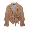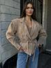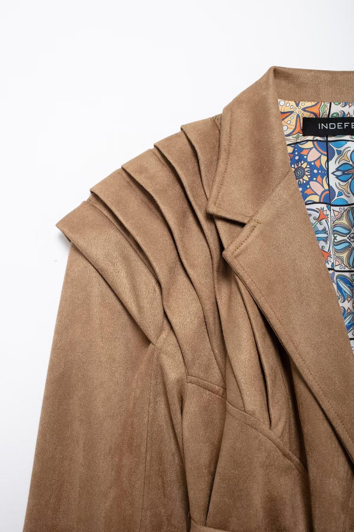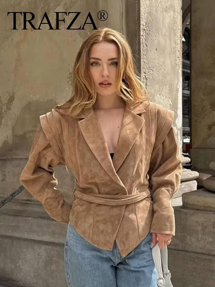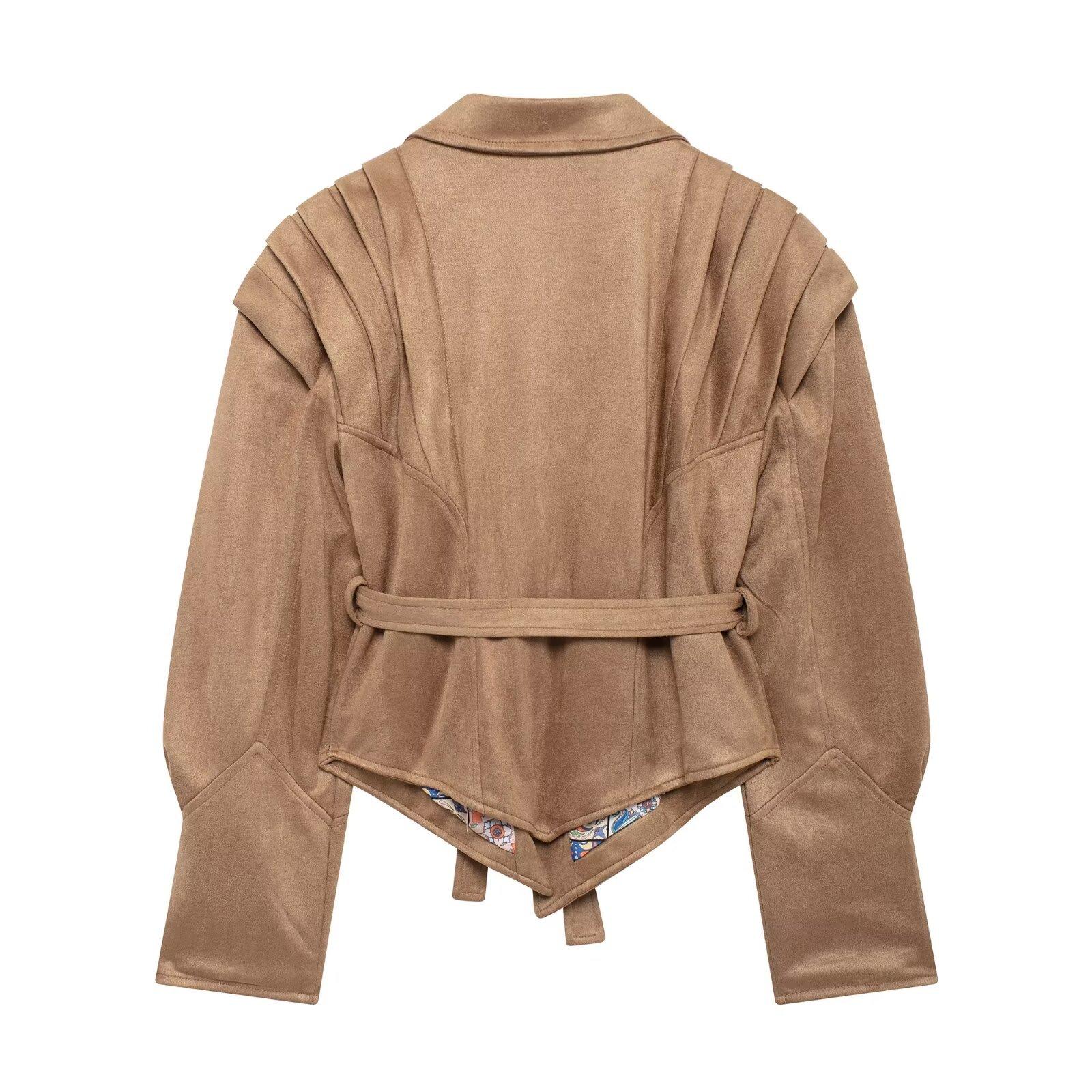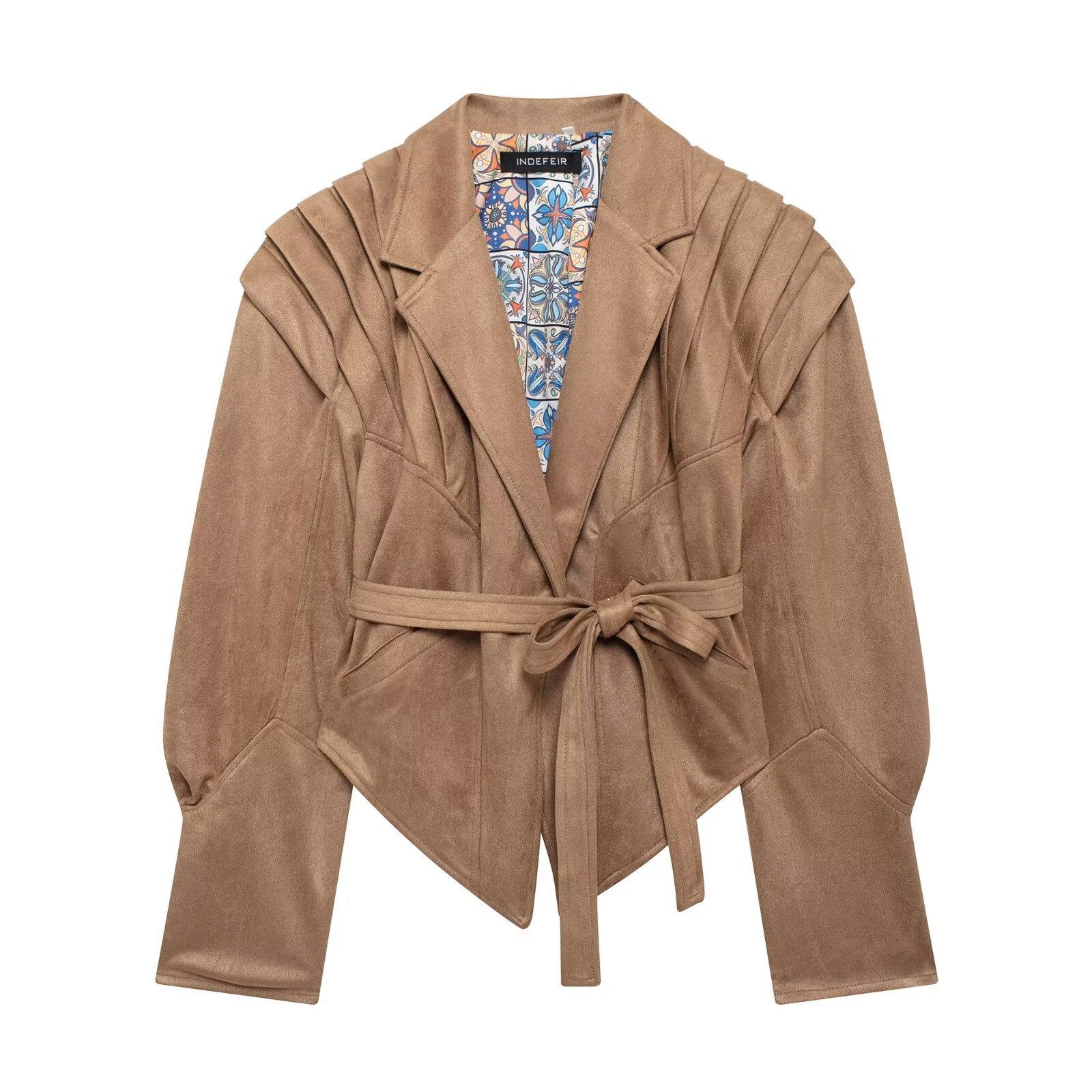 Amazon Transfronterizo Otoño Popular Ropa Europea y Americana Cinturón de Cintura Chaqueta Entallada de Ante para Mujer