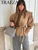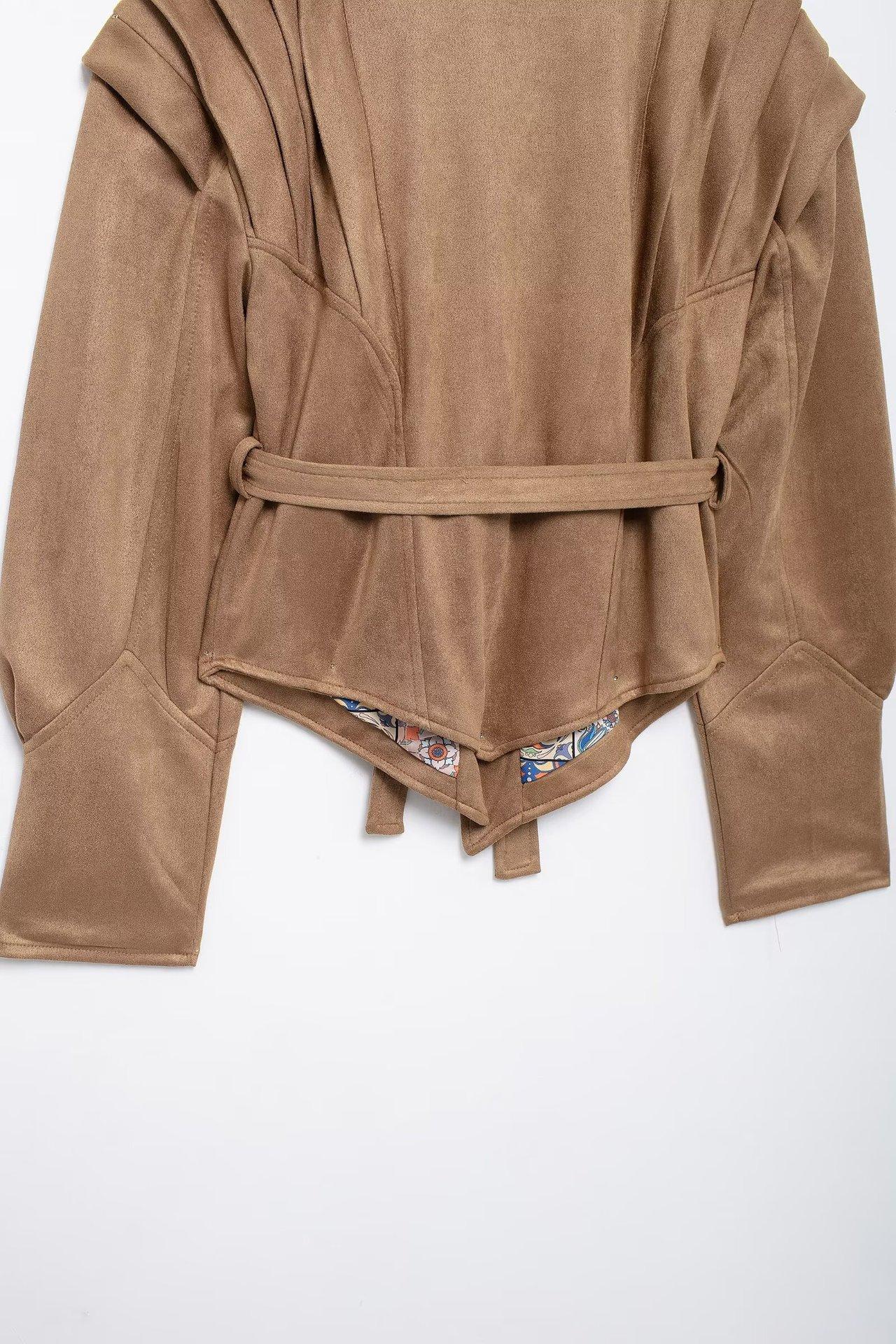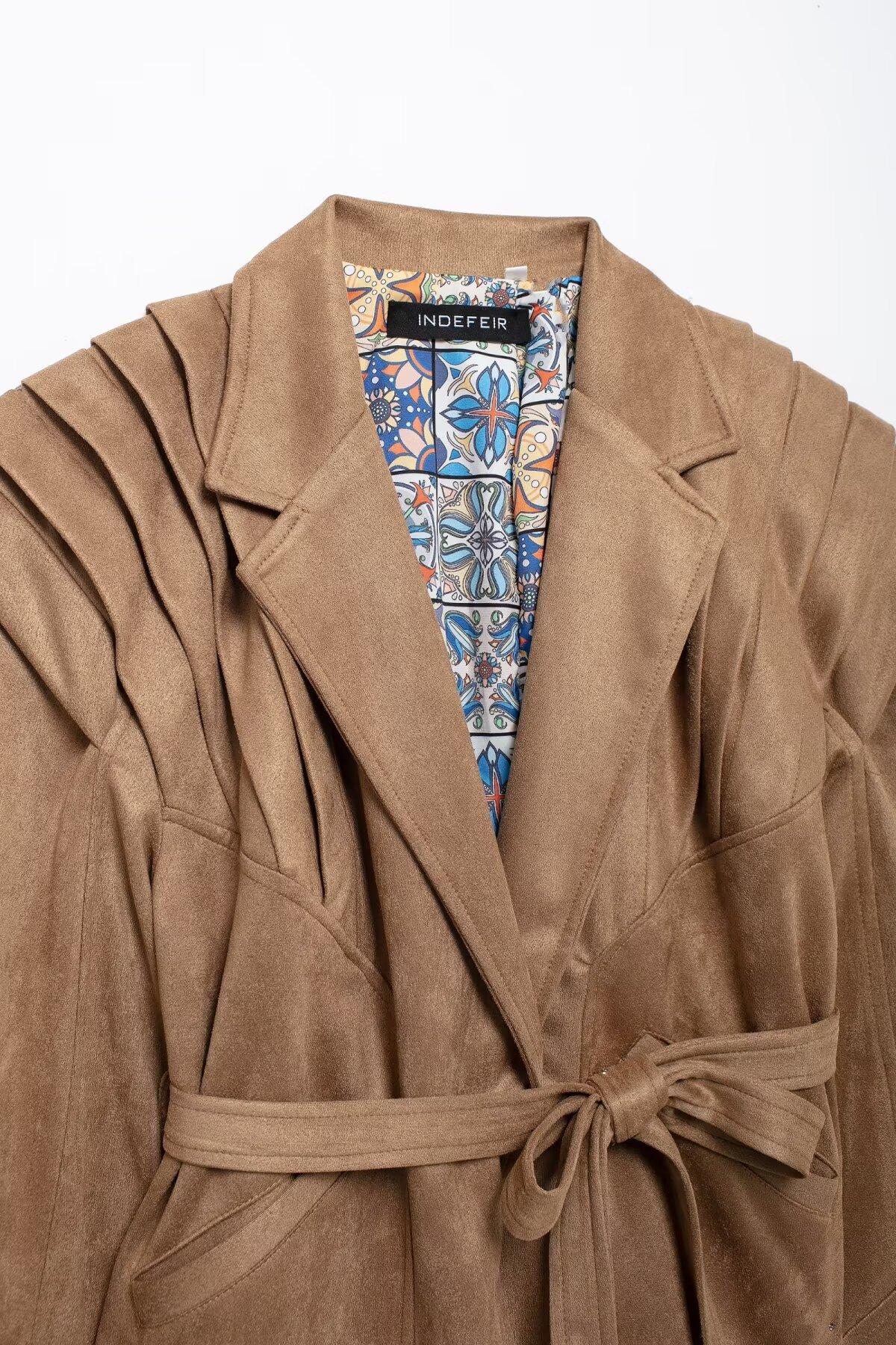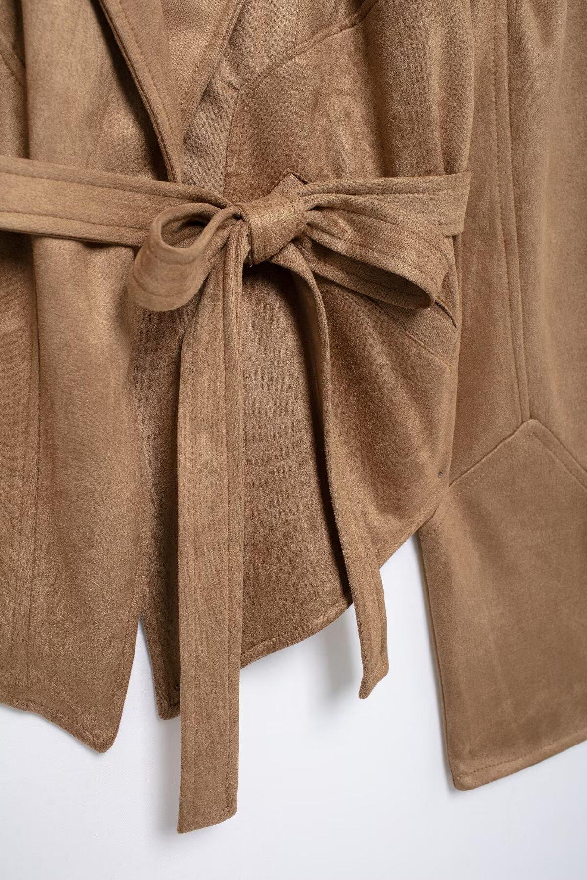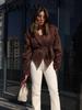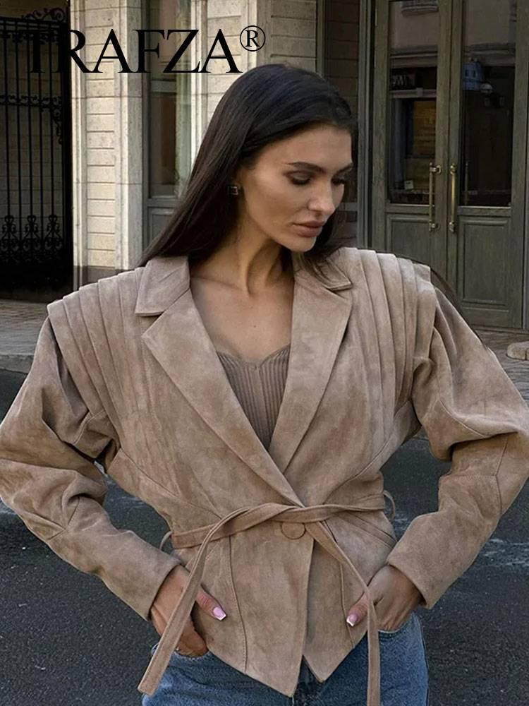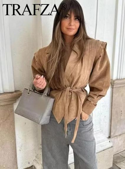 Amazon Transfronterizo Otoño Popular Ropa Europea y Americana Cinturón de Cintura Chaqueta Entallada de Ante para Mujer
