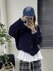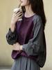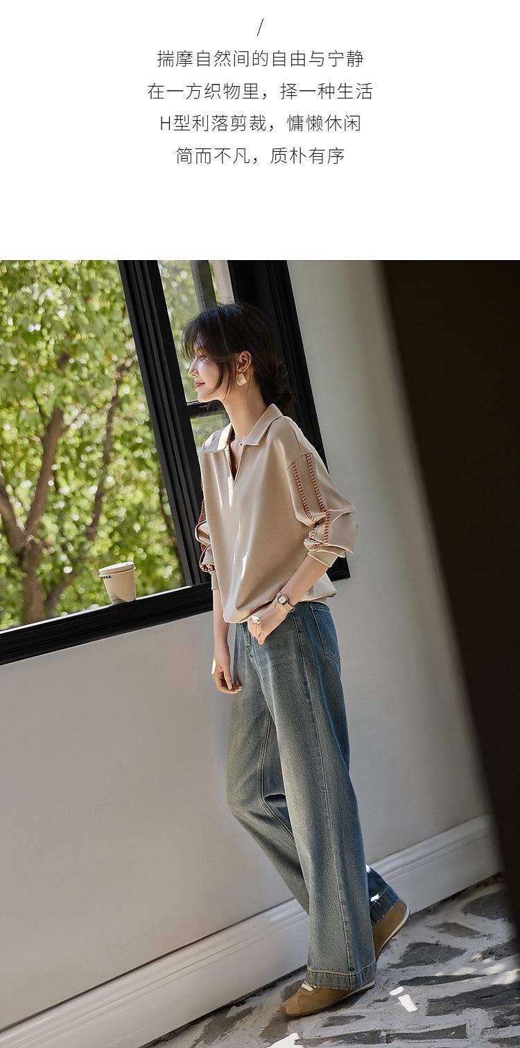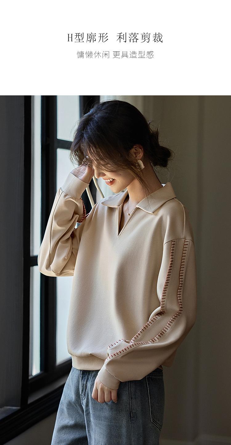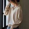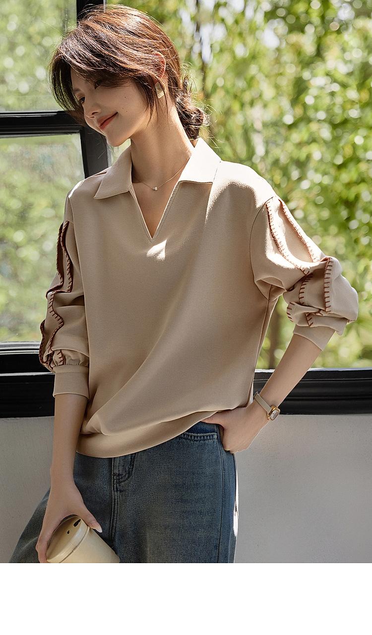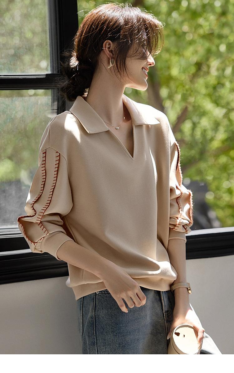 Sudadera de Moda Casual con Bloque de Color y Bordado de Concha para Mujer Primavera 2025 Algodón Cuello en V Estilo Lazy Top Chic