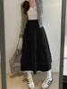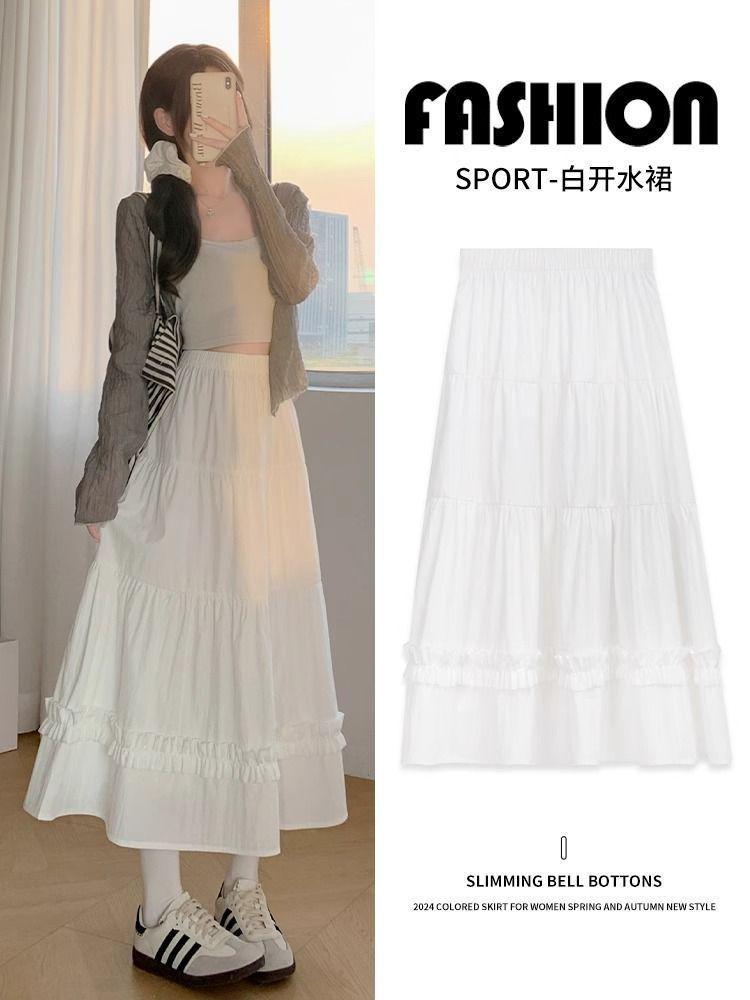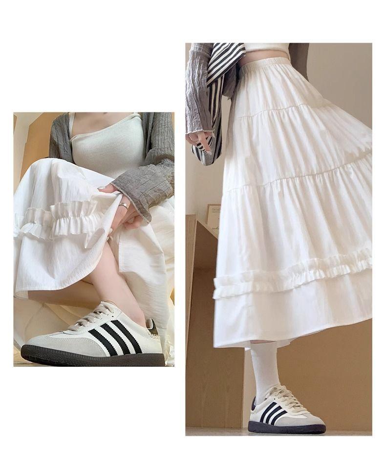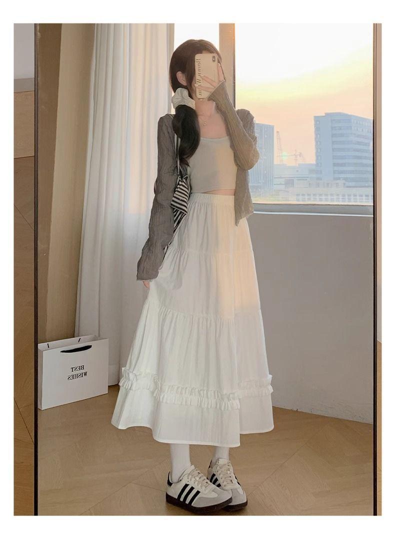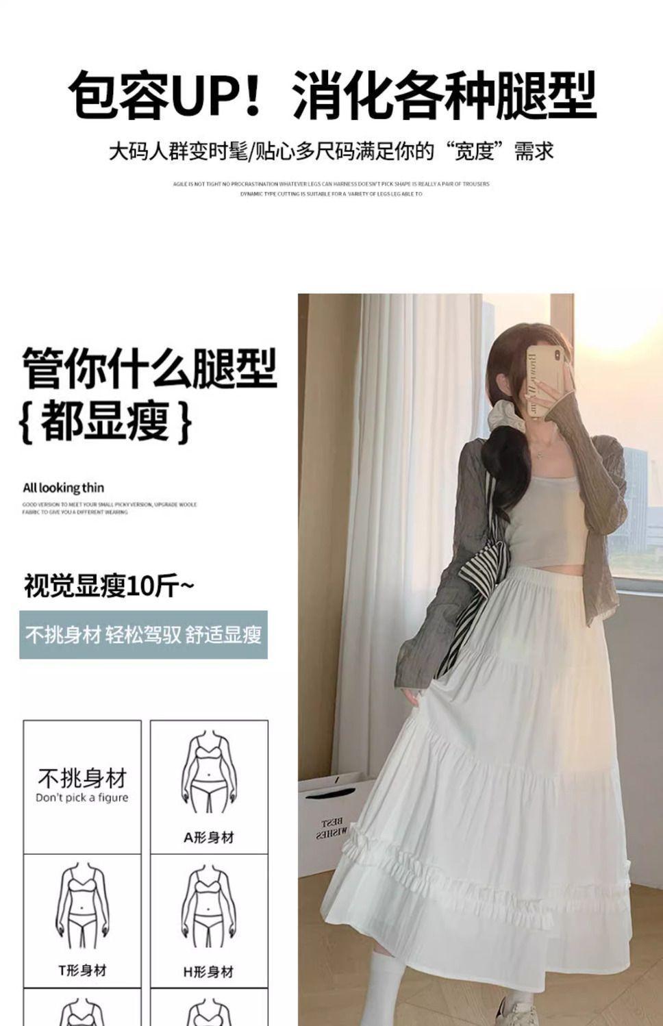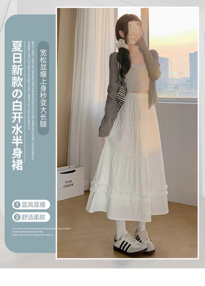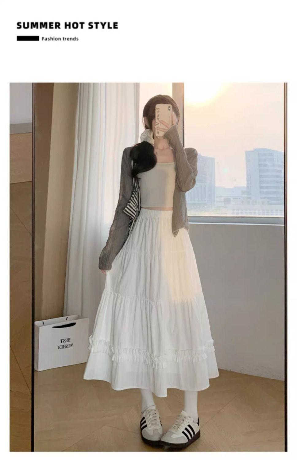 2025 nueva falda midi petite de verano de cintura alta corte A adelgazante abullonada con encaje falda pastel blanca negra