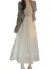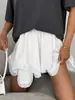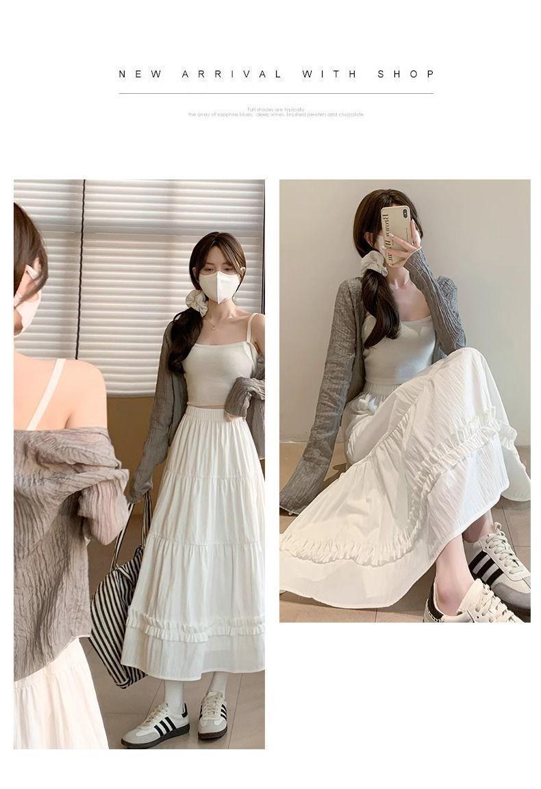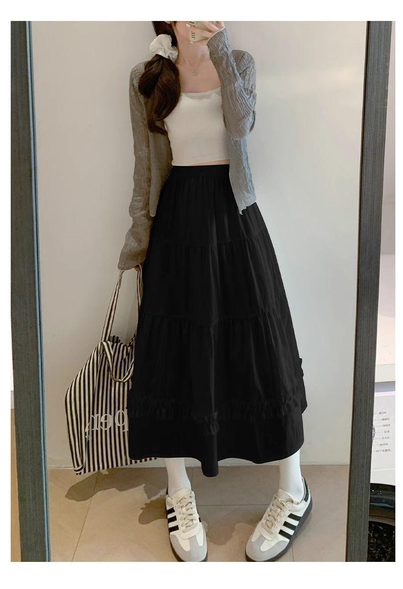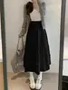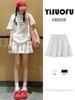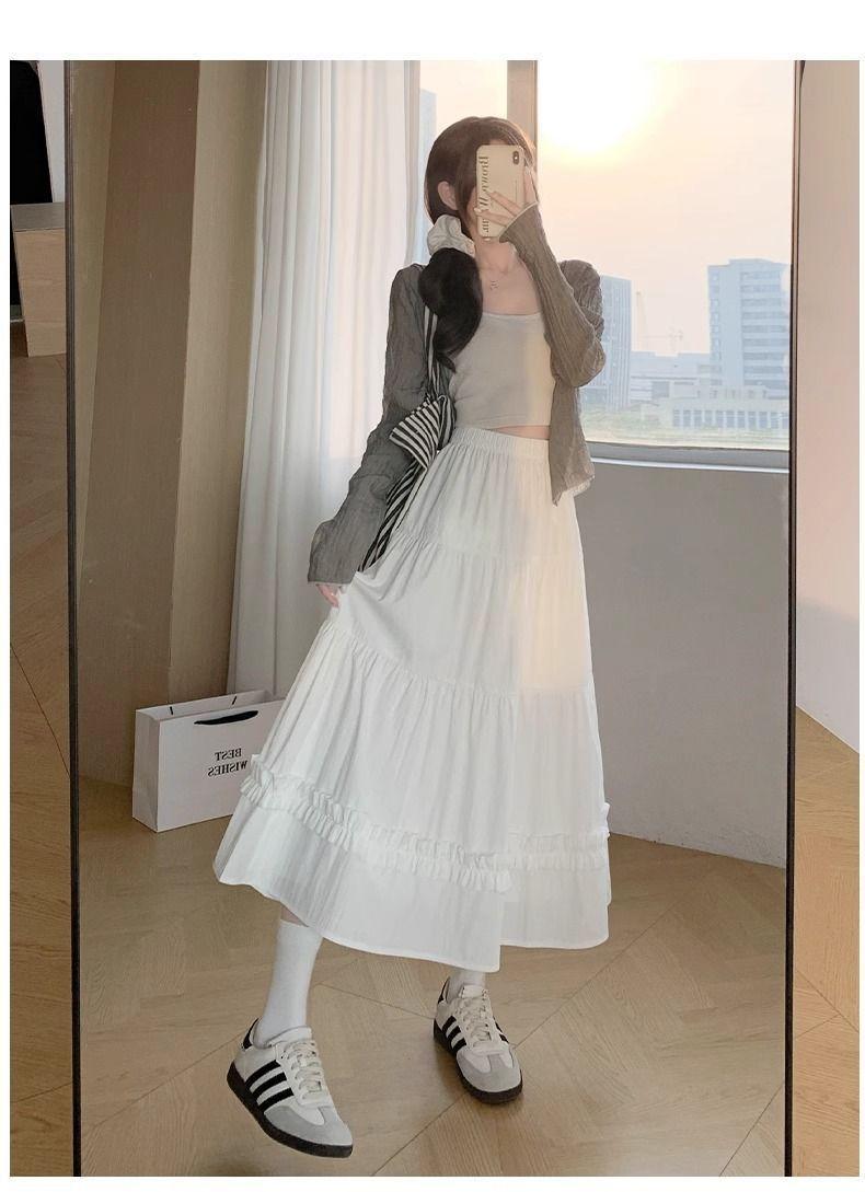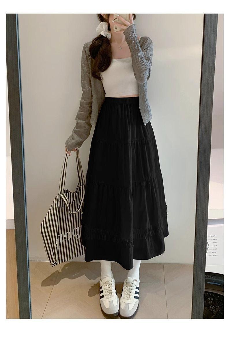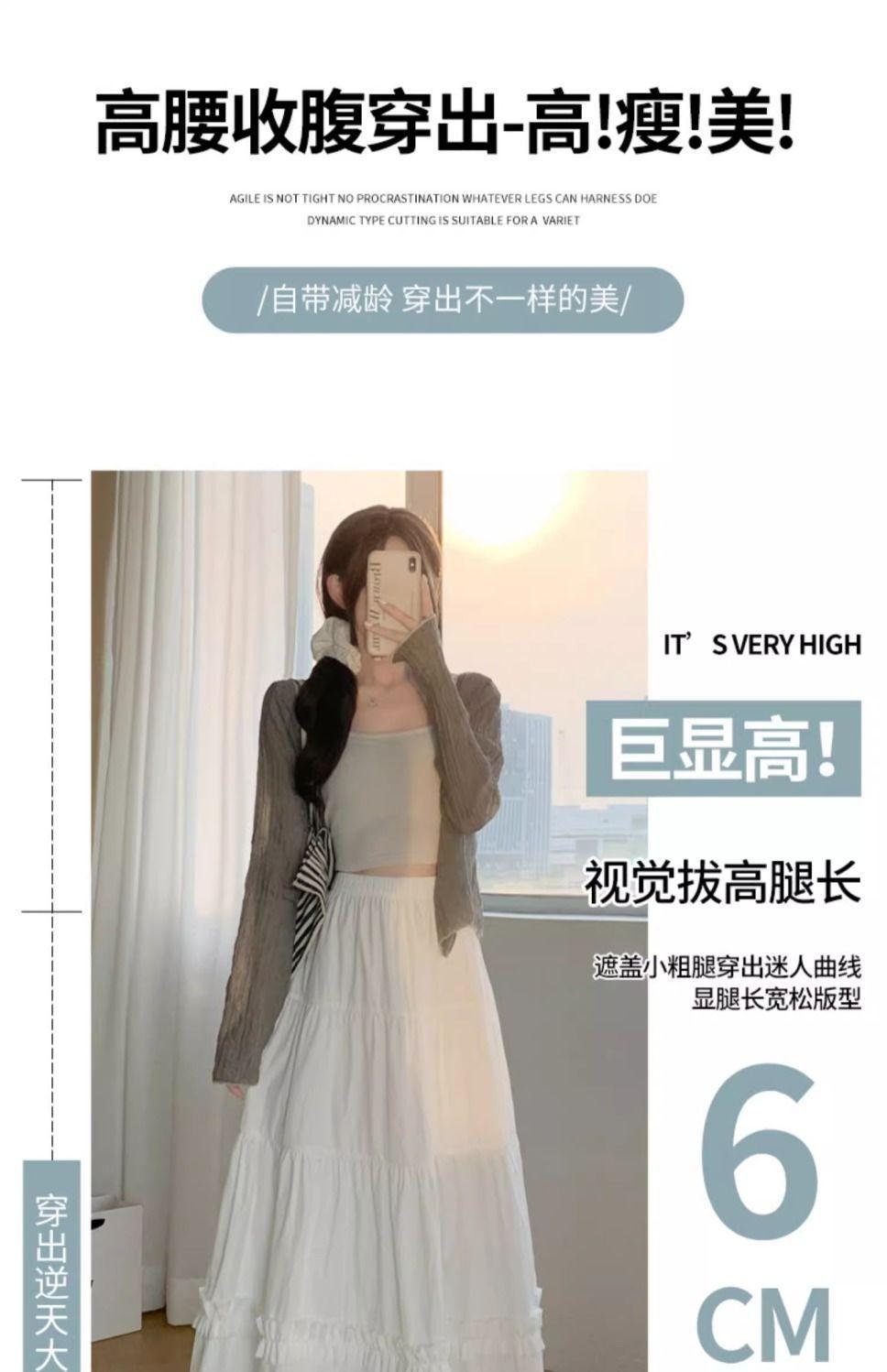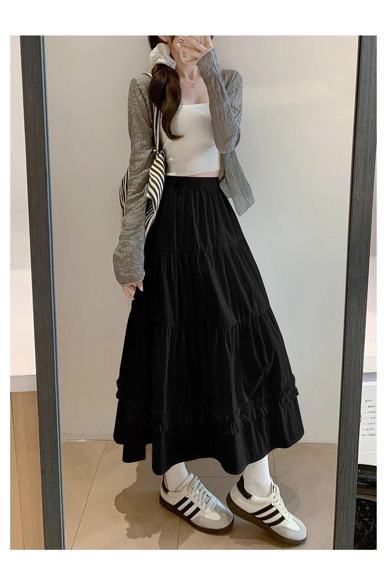2025 nueva falda midi petite de verano de cintura alta corte A adelgazante abullonada con encaje falda pastel blanca negra