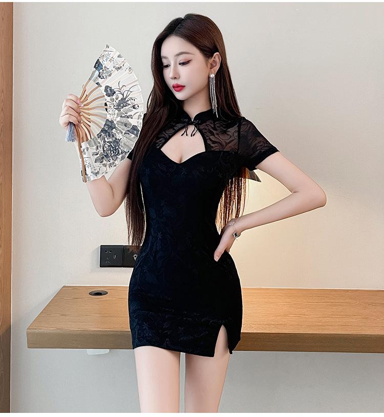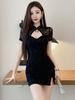 2024 Retro Nuevo Estilo Chino Corto Cheongsam Mejorado Vestido Halter para Mujer Sexy Deseo Puro Ajustado Bodycon Minifalda
