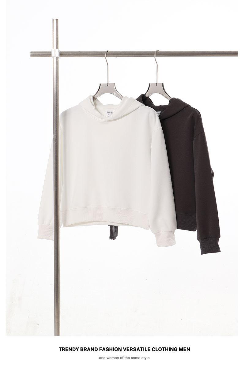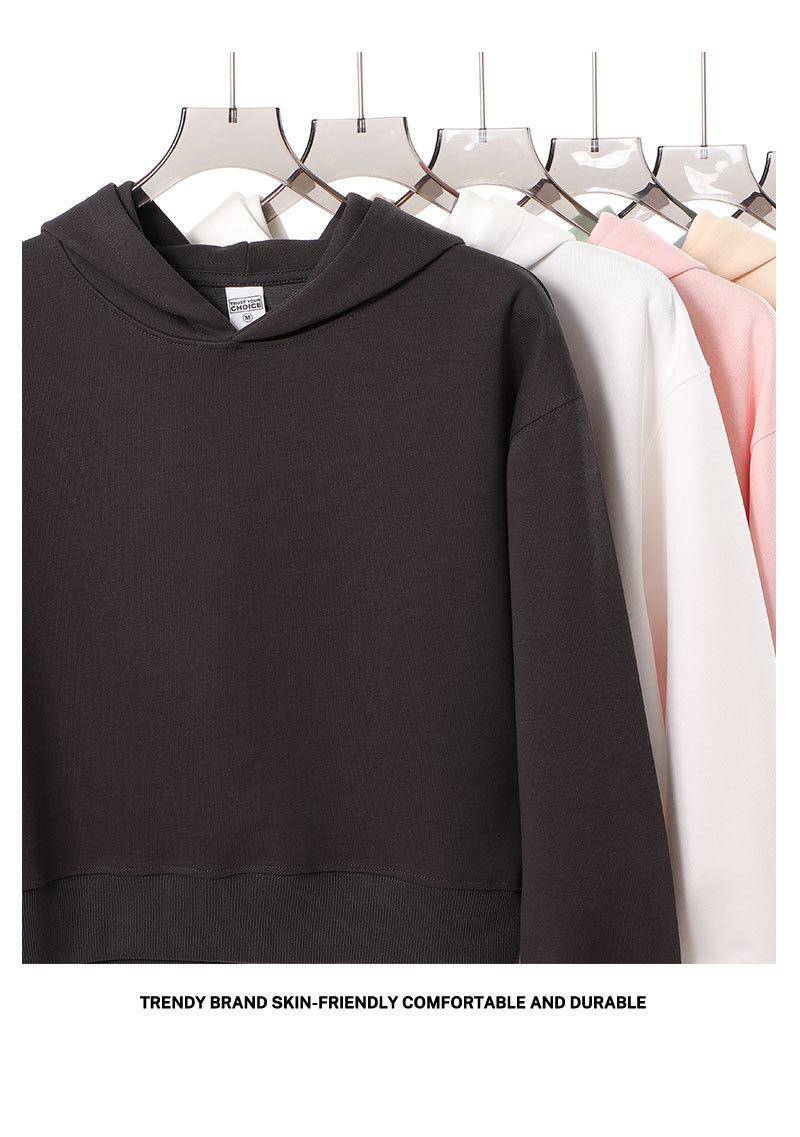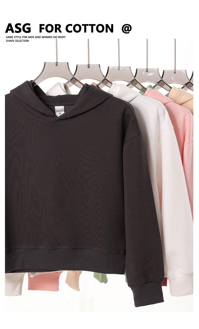 Sudadera Corta de Mezcla de Algodón Puro Pesado 350g para Mujer Tendencia Otoño/Invierno Marca Sudadera con Capucha Pulóver de Hombro Caído Chaqueta Mujer