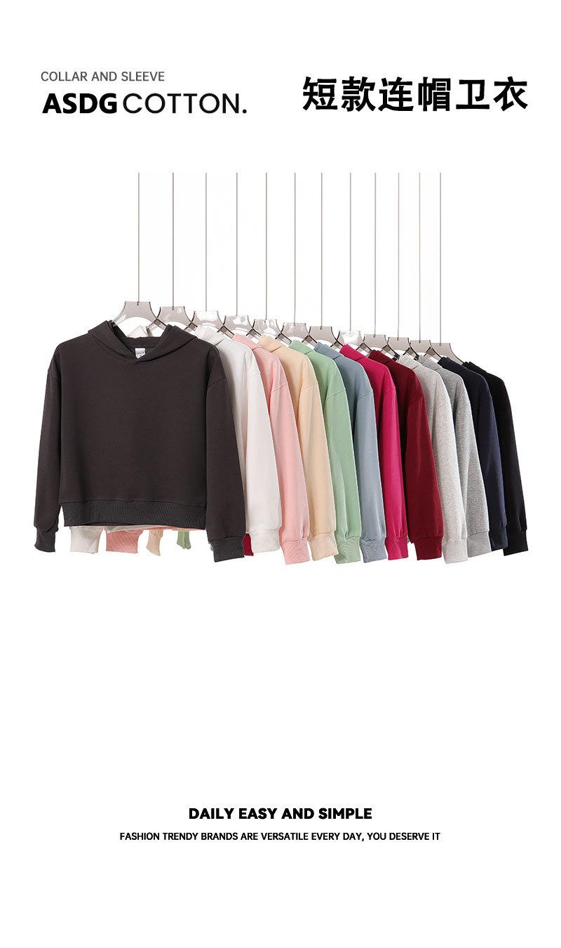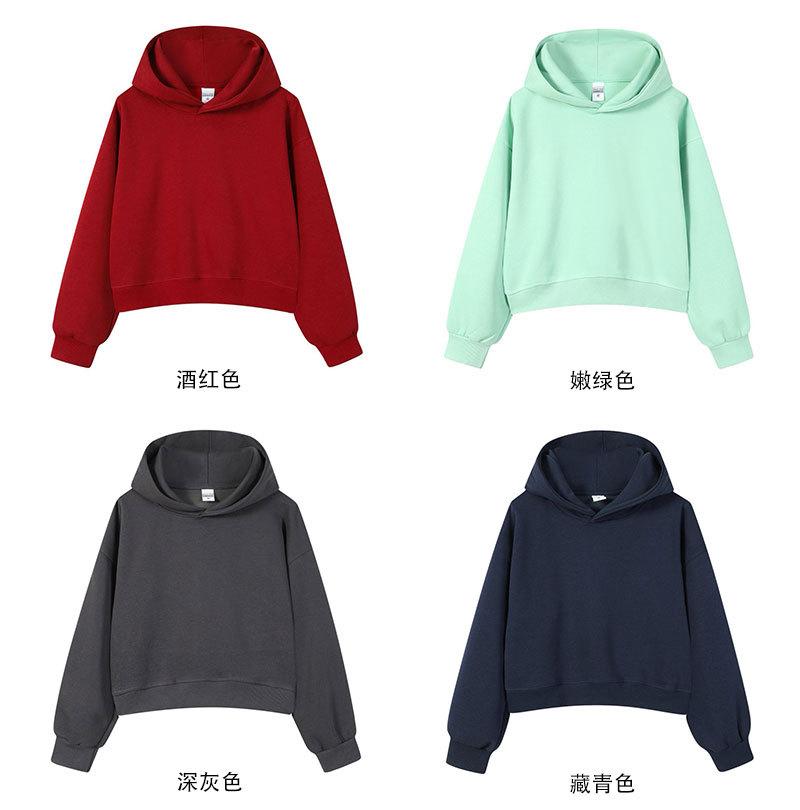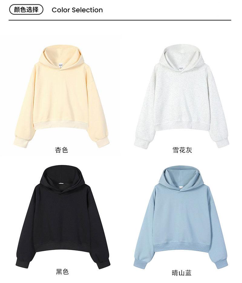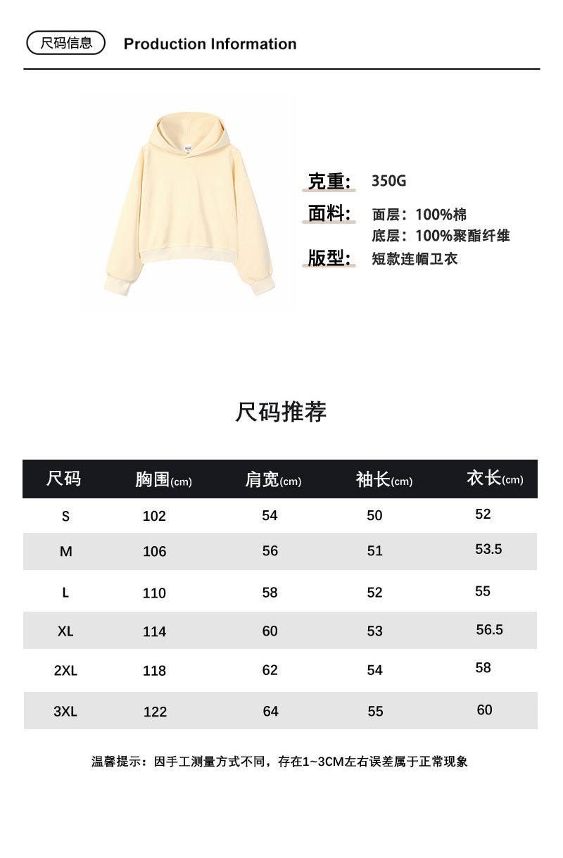 Sudadera Corta de Mezcla de Algodón Puro Pesado 350g para Mujer Tendencia Otoño/Invierno Marca Sudadera con Capucha Pulóver de Hombro Caído Chaqueta Mujer