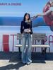 Jeans Rectos de Tiro Bajo Estilo Americano para Mujer, Novedad Otoño 2025, Pantalones de Tela Gruesa Lavados en Azul, de Pierna Ancha, Largos hasta el Suelo