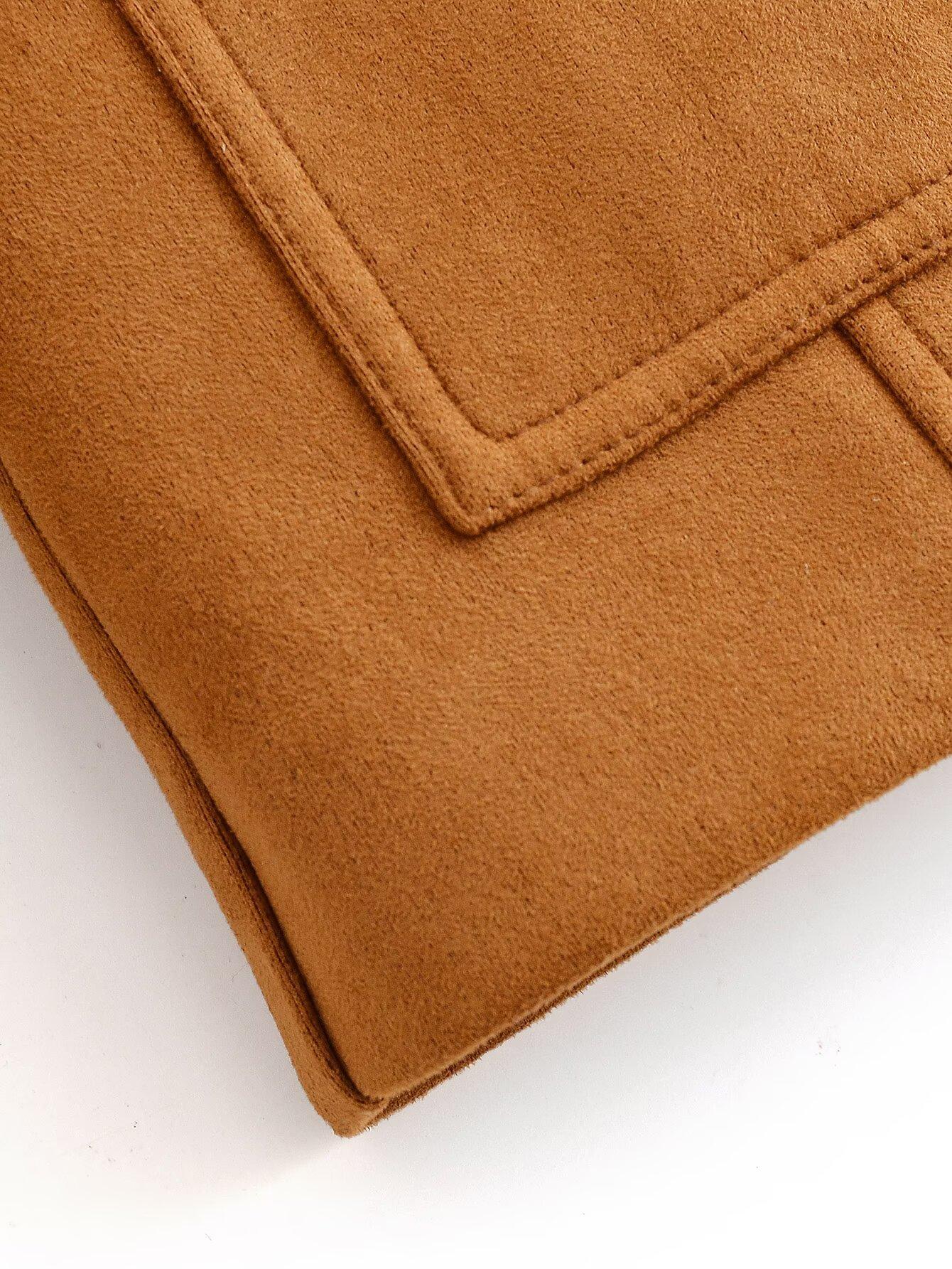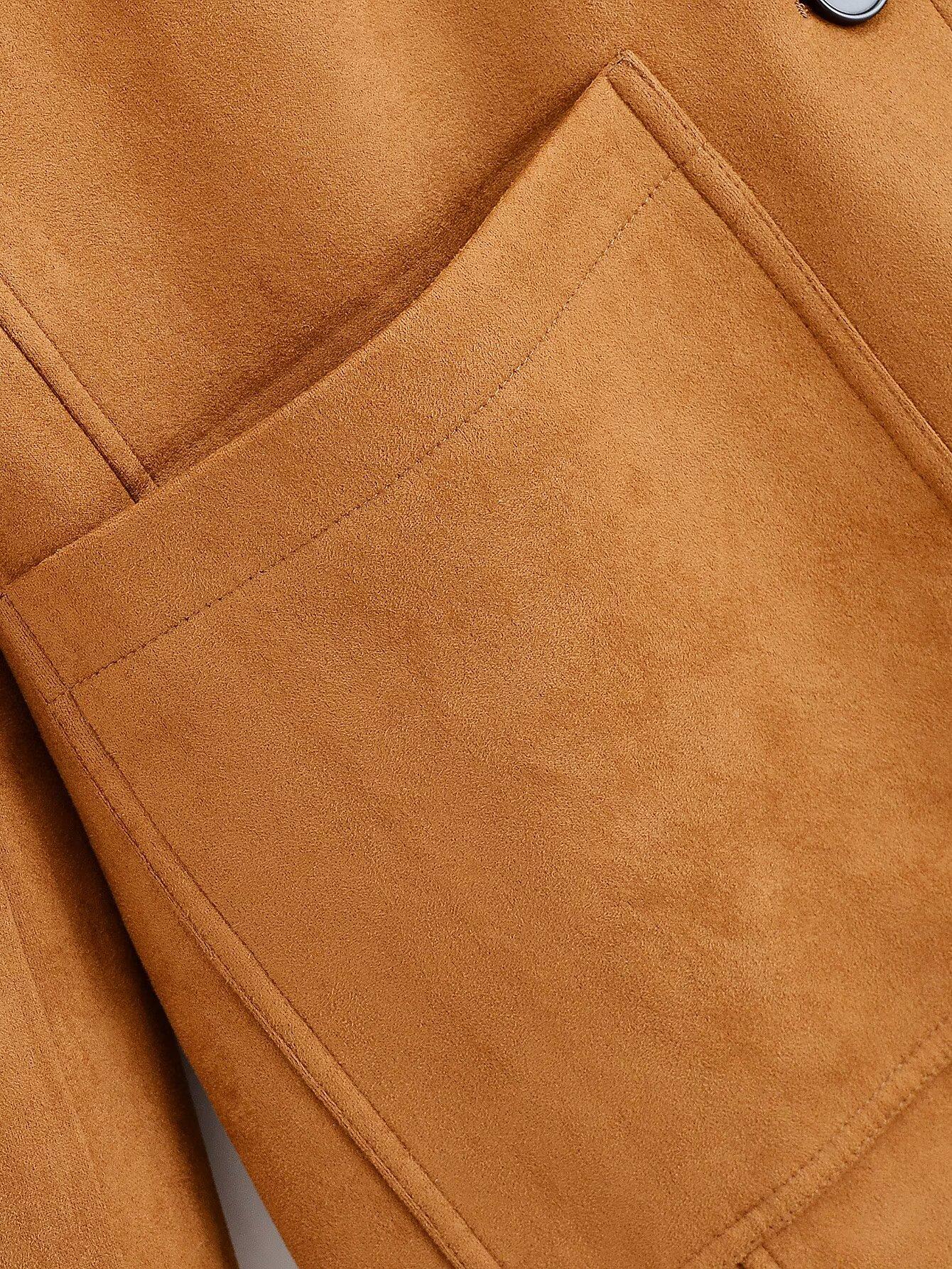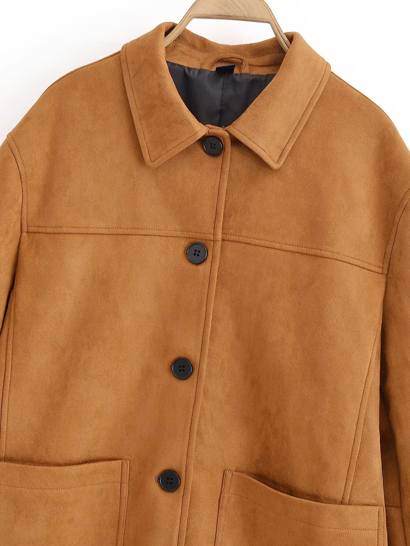 Ropa de mujer de comercio exterior transfronterizo 2025 otoño estilo europeo y americano solapa manga larga chaqueta de gamuza abrigo mujer A711580F