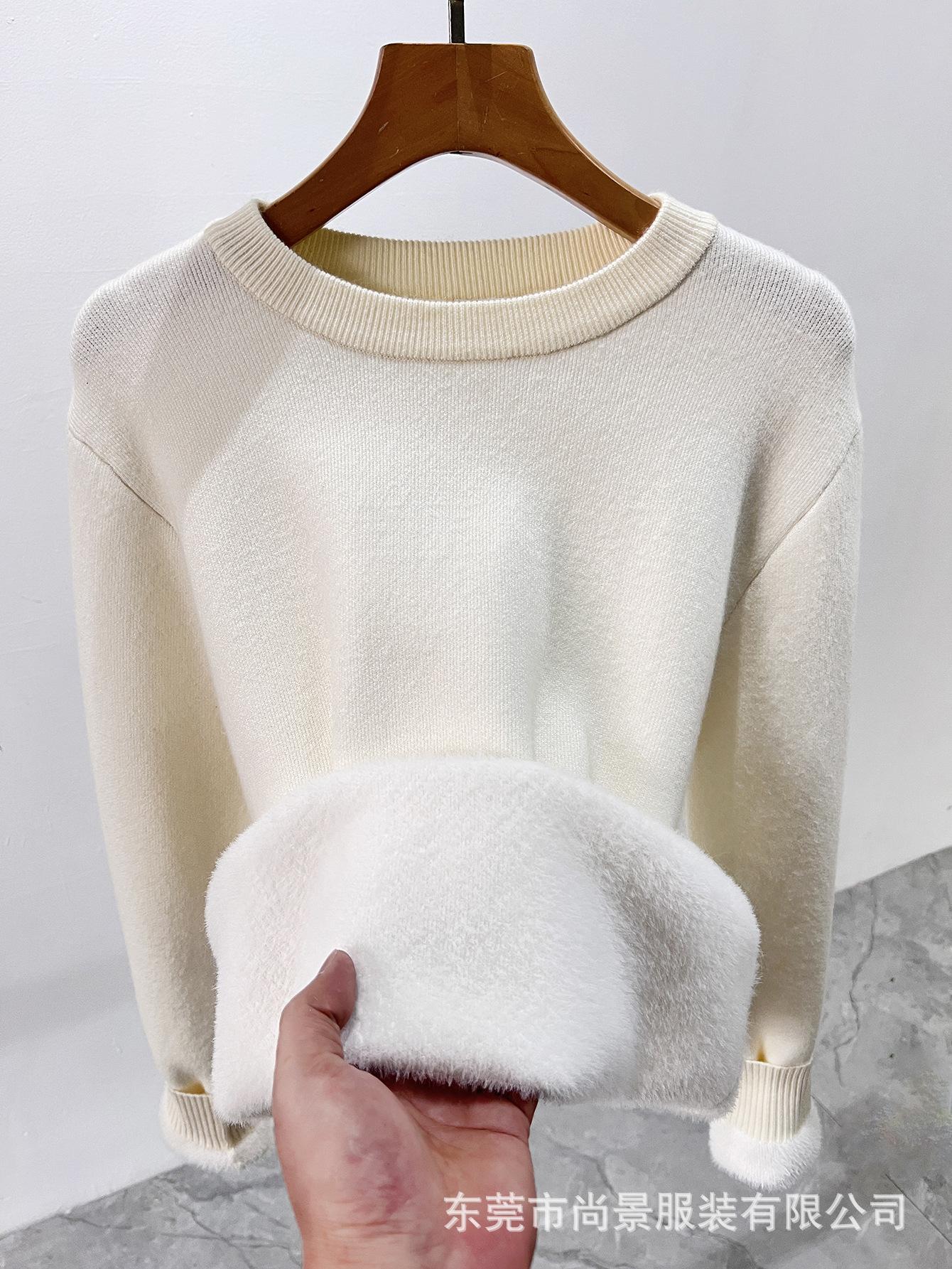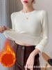25 Tejido de Terciopelo de una Pieza Transfronterizo con Forro Polar Engrosado de Cuello Redondo Top de Punto Otoño e Invierno Ropa de Punto Capa Base Cálida Ropa Interior