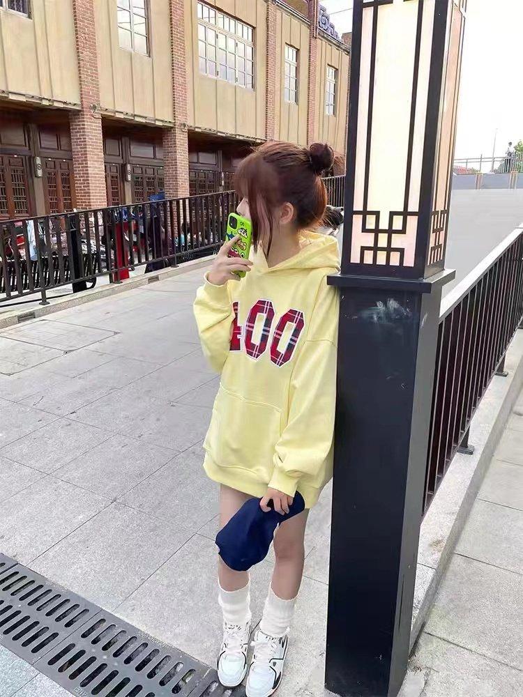 Sudadera con capucha dulce y fresca, pequeña, fresca, para mujer, con estampado, sudadera con capucha universitaria, otoño e invierno, forrada con vellón, para estudiantes