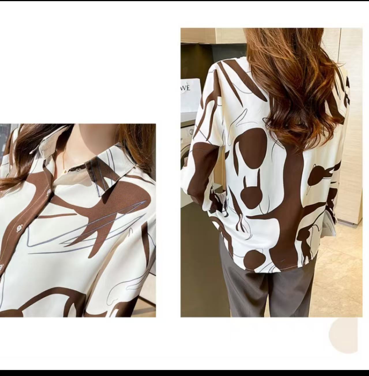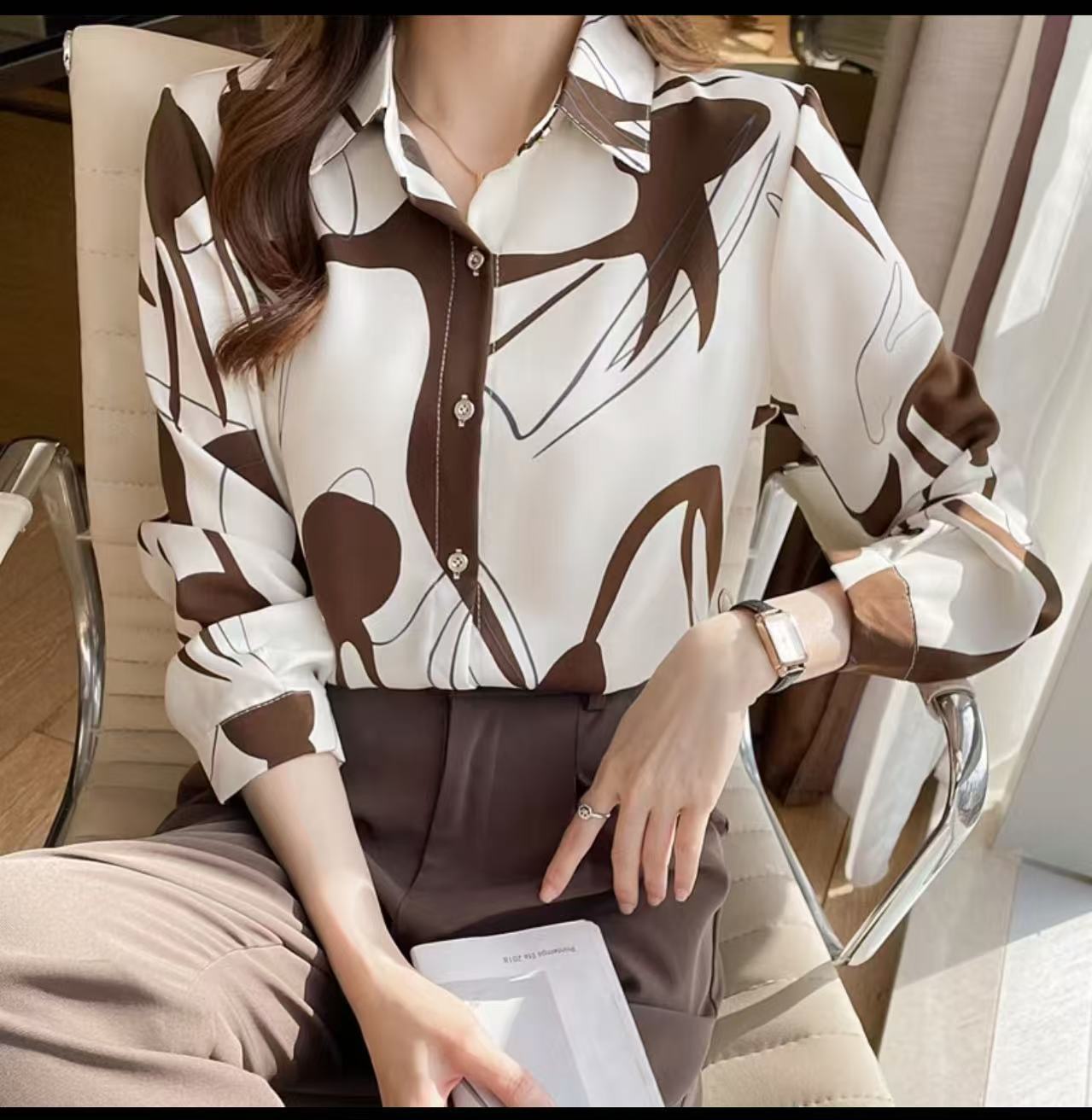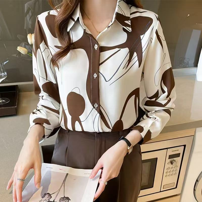 Comercio exterior transfronterizo Camisa de mujer estampada de manga larga europea y americana nueva moda temperamento versátil patrón geométrico camisa de mujer