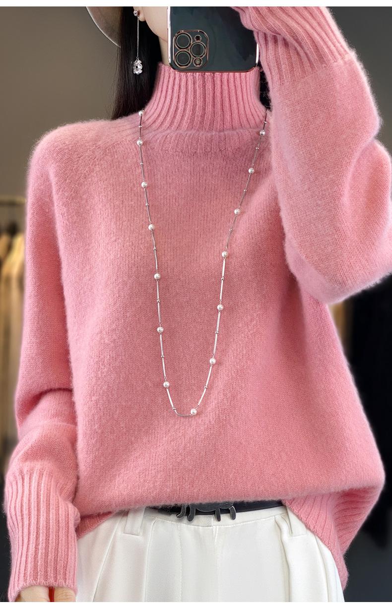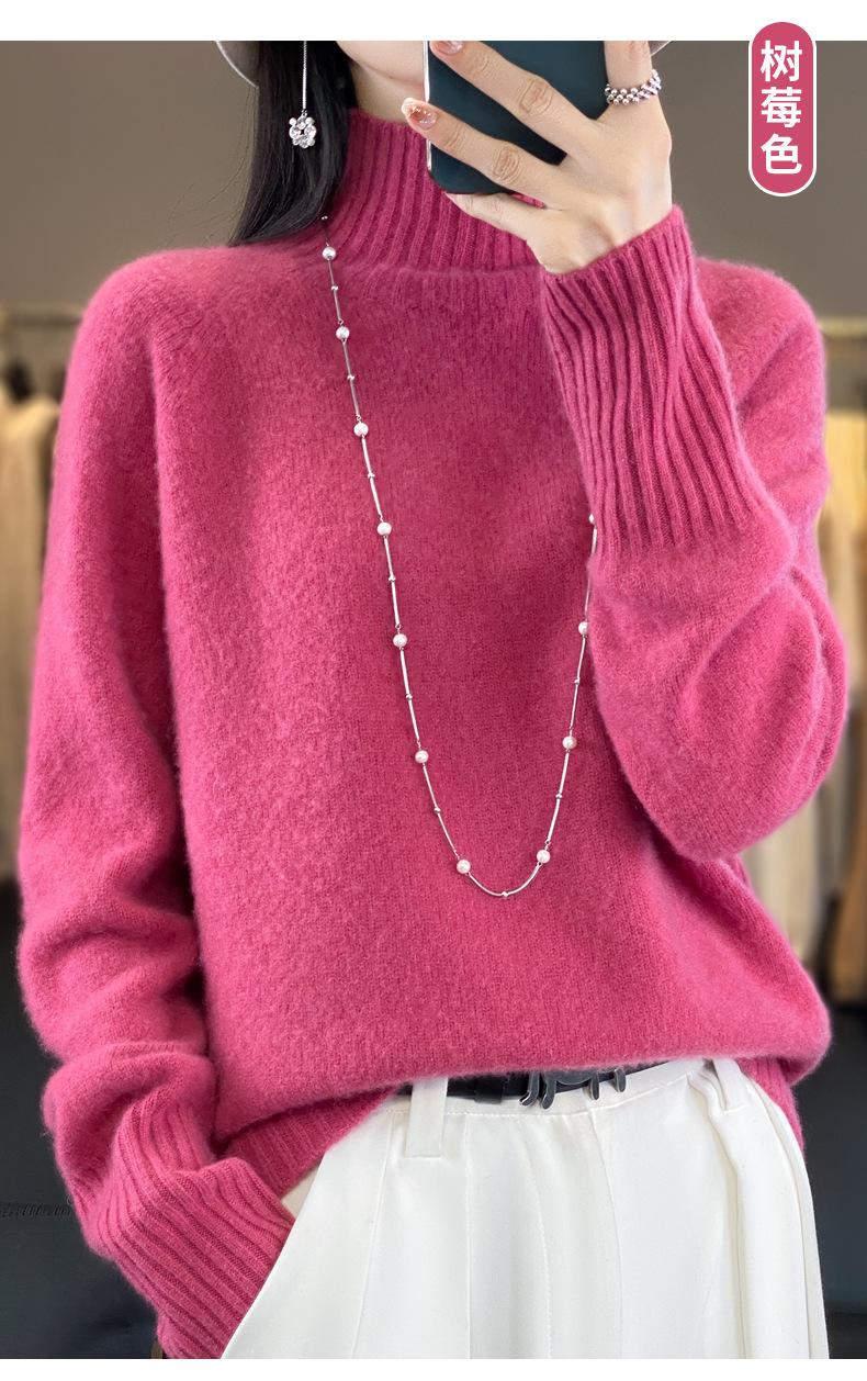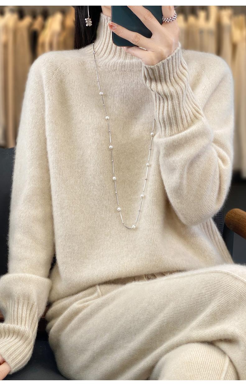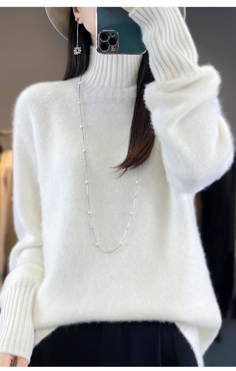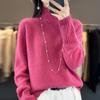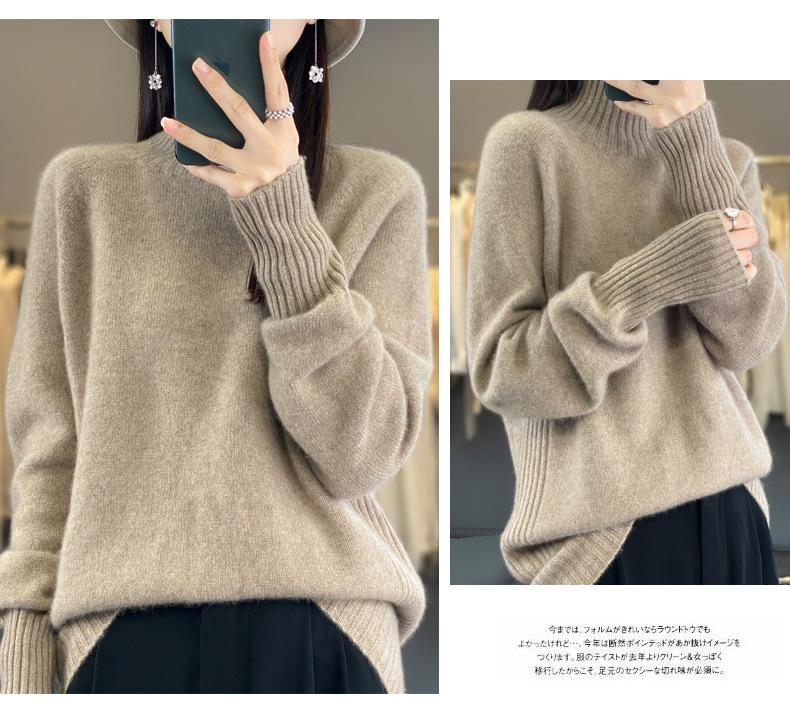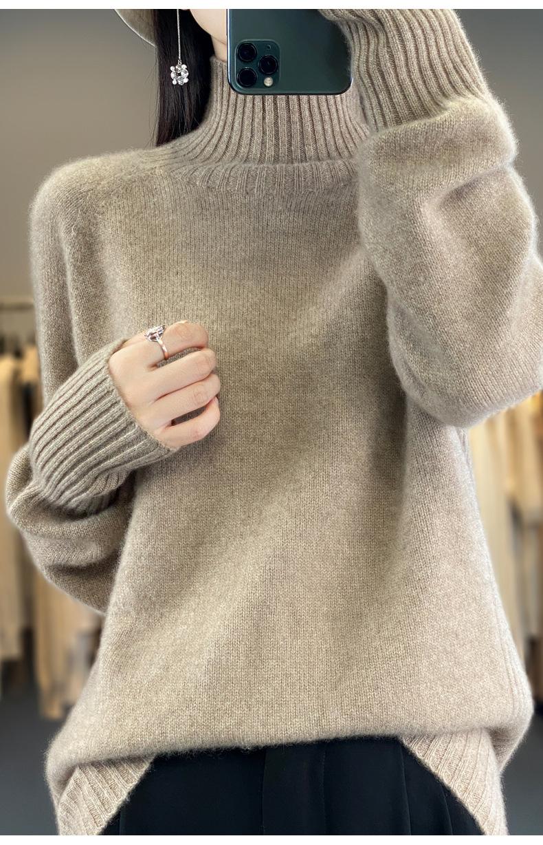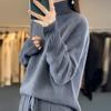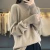 Suéter grueso de cuello alto 100% lana para mujer, Otoño/Invierno, nuevo, estilo holgado y relajado, tejido base, cálido y a la moda
