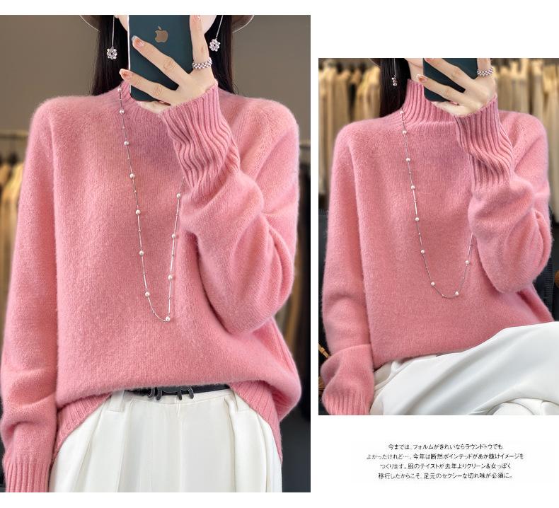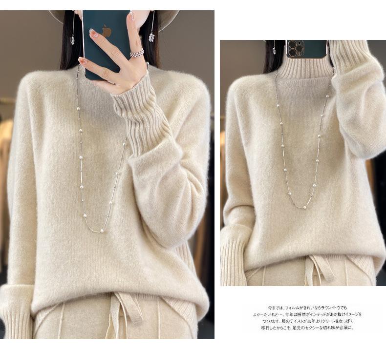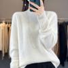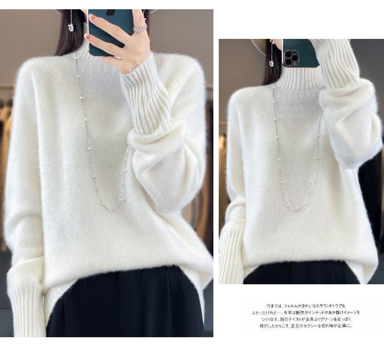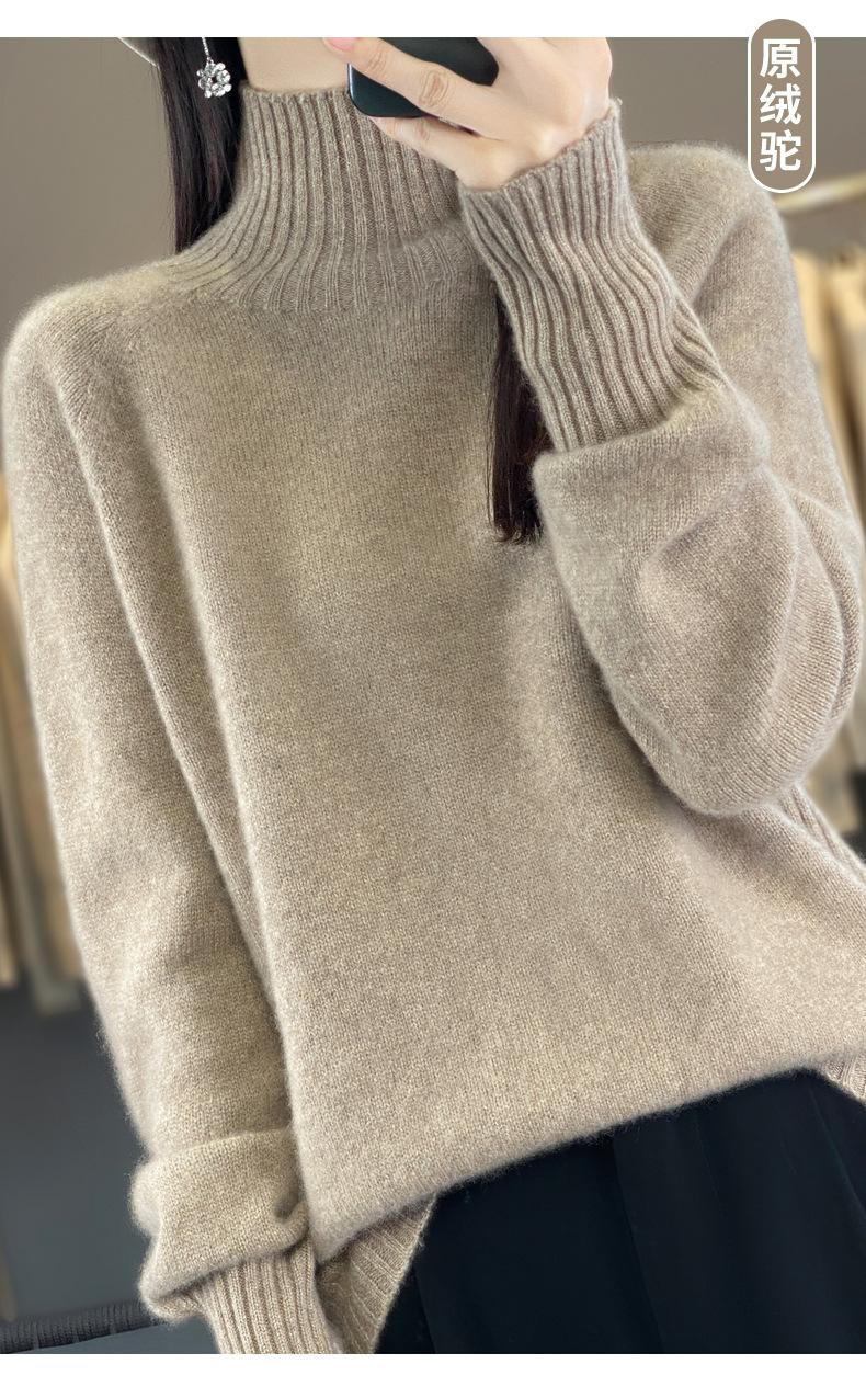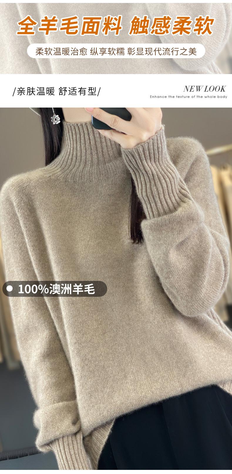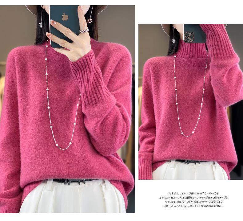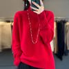 Suéter grueso de cuello alto 100% lana para mujer, Otoño/Invierno, nuevo, estilo holgado y relajado, tejido base, cálido y a la moda