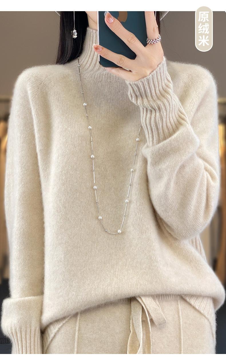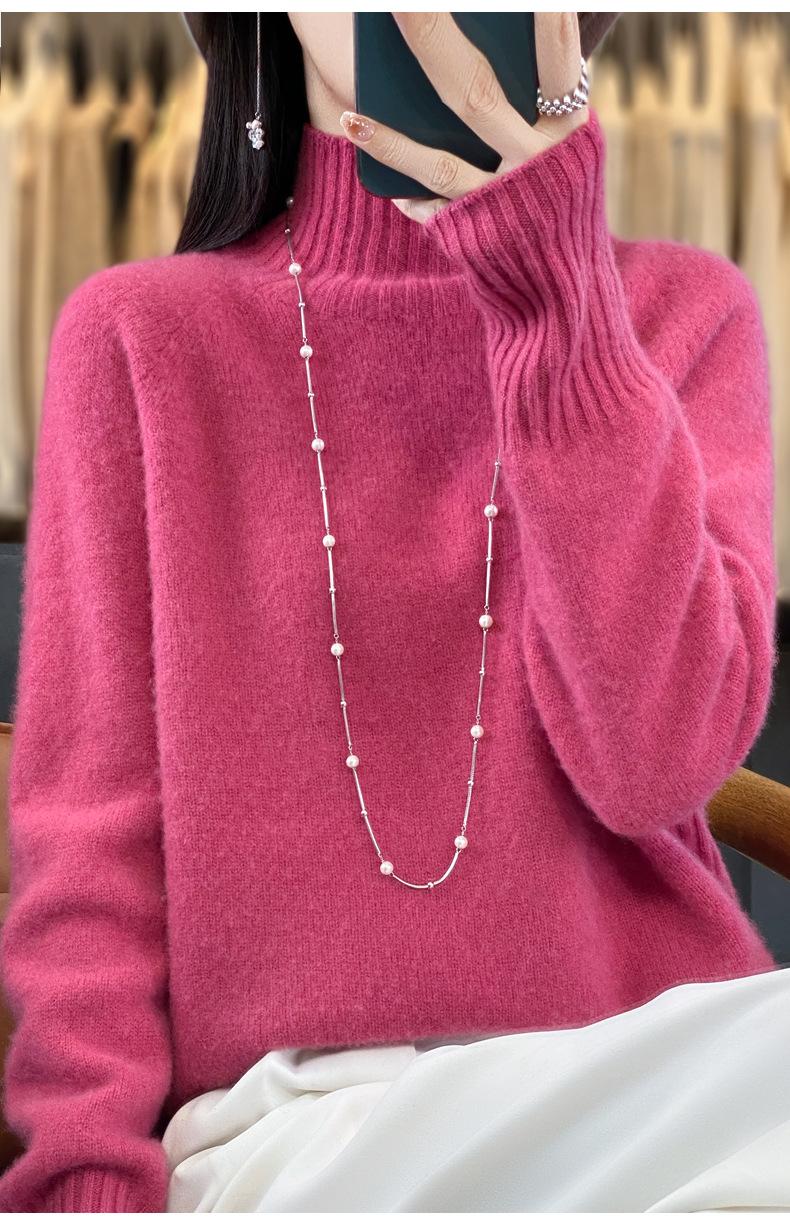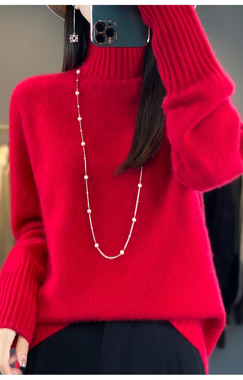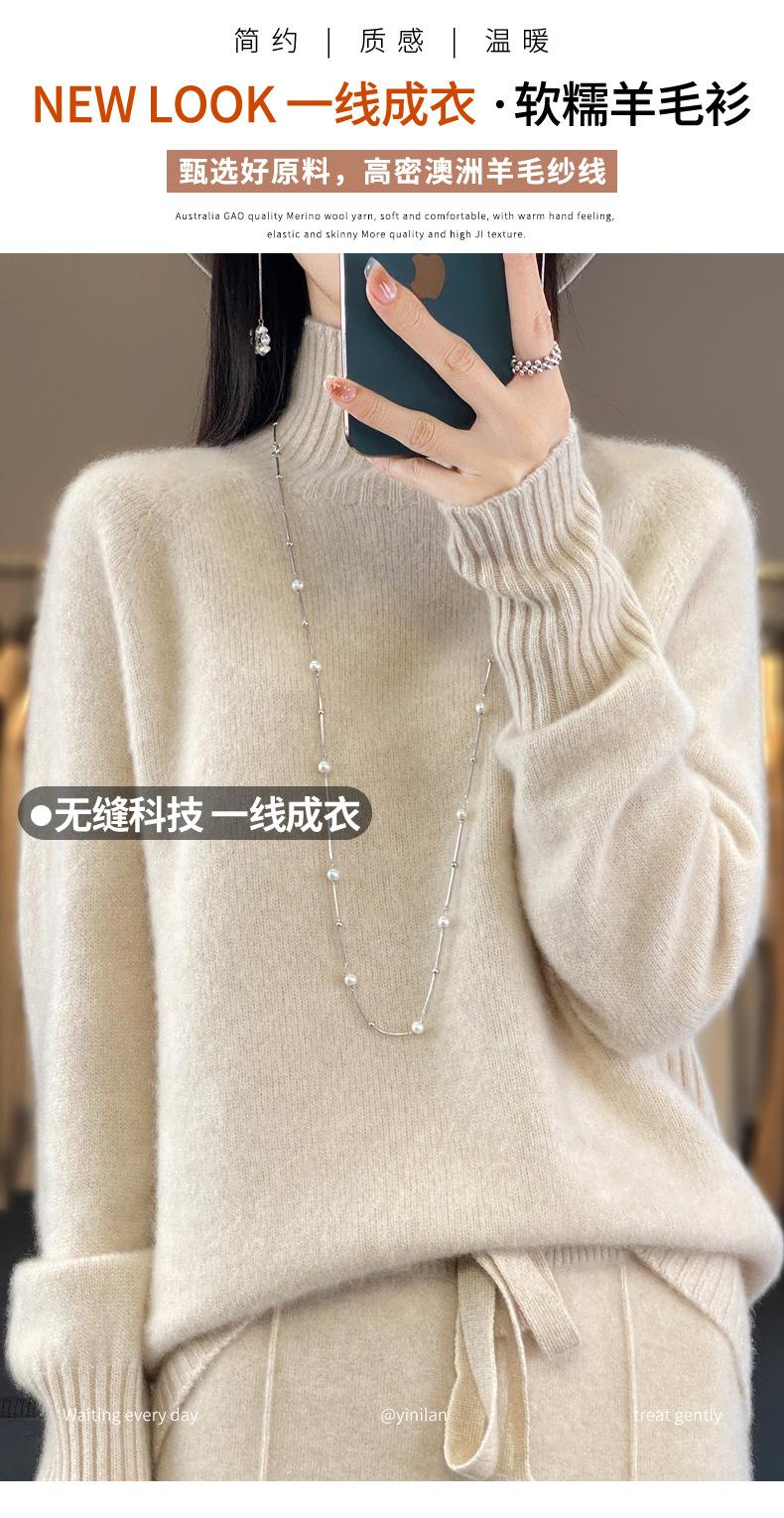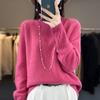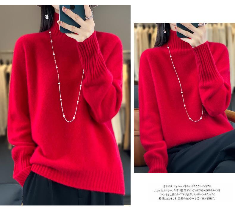 Suéter grueso de cuello alto 100% lana para mujer, Otoño/Invierno, nuevo, estilo holgado y relajado, tejido base, cálido y a la moda