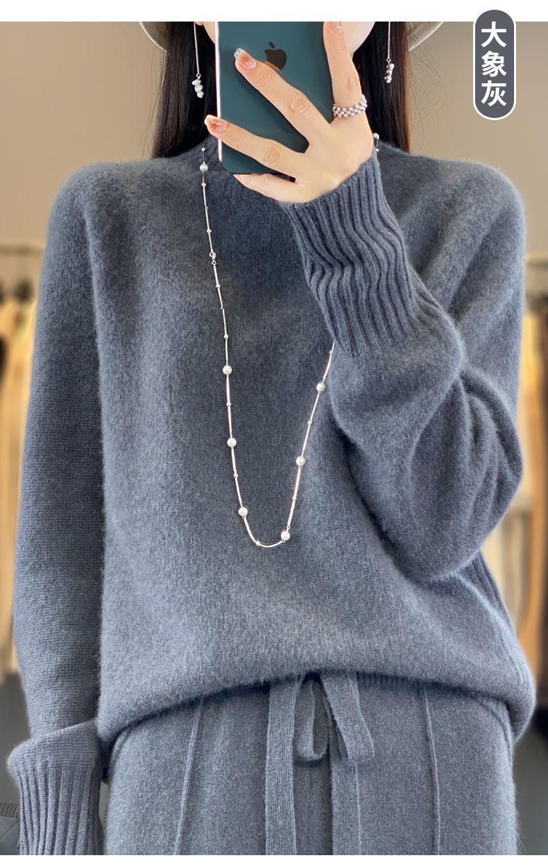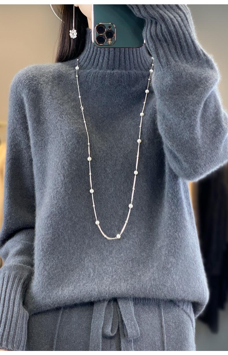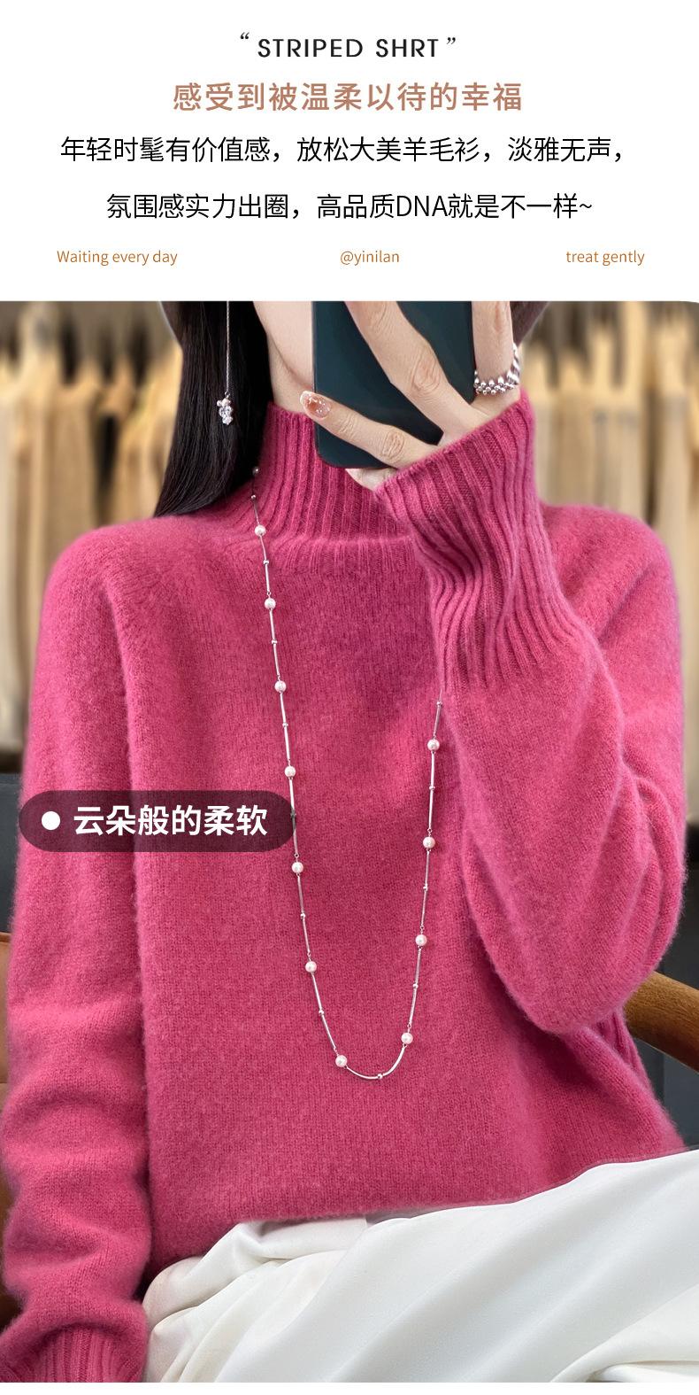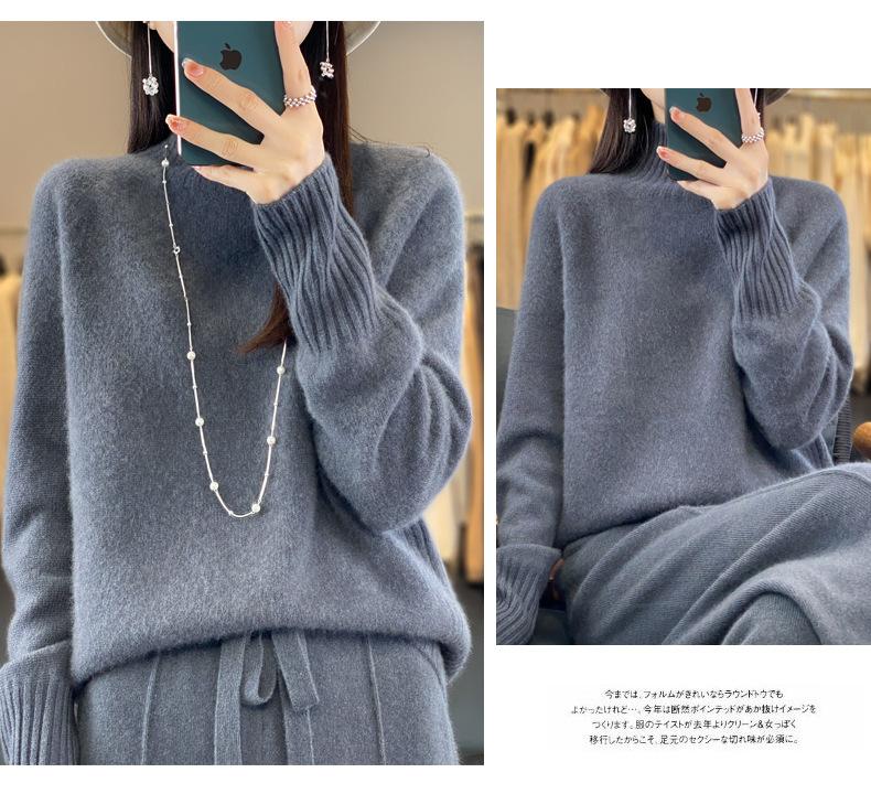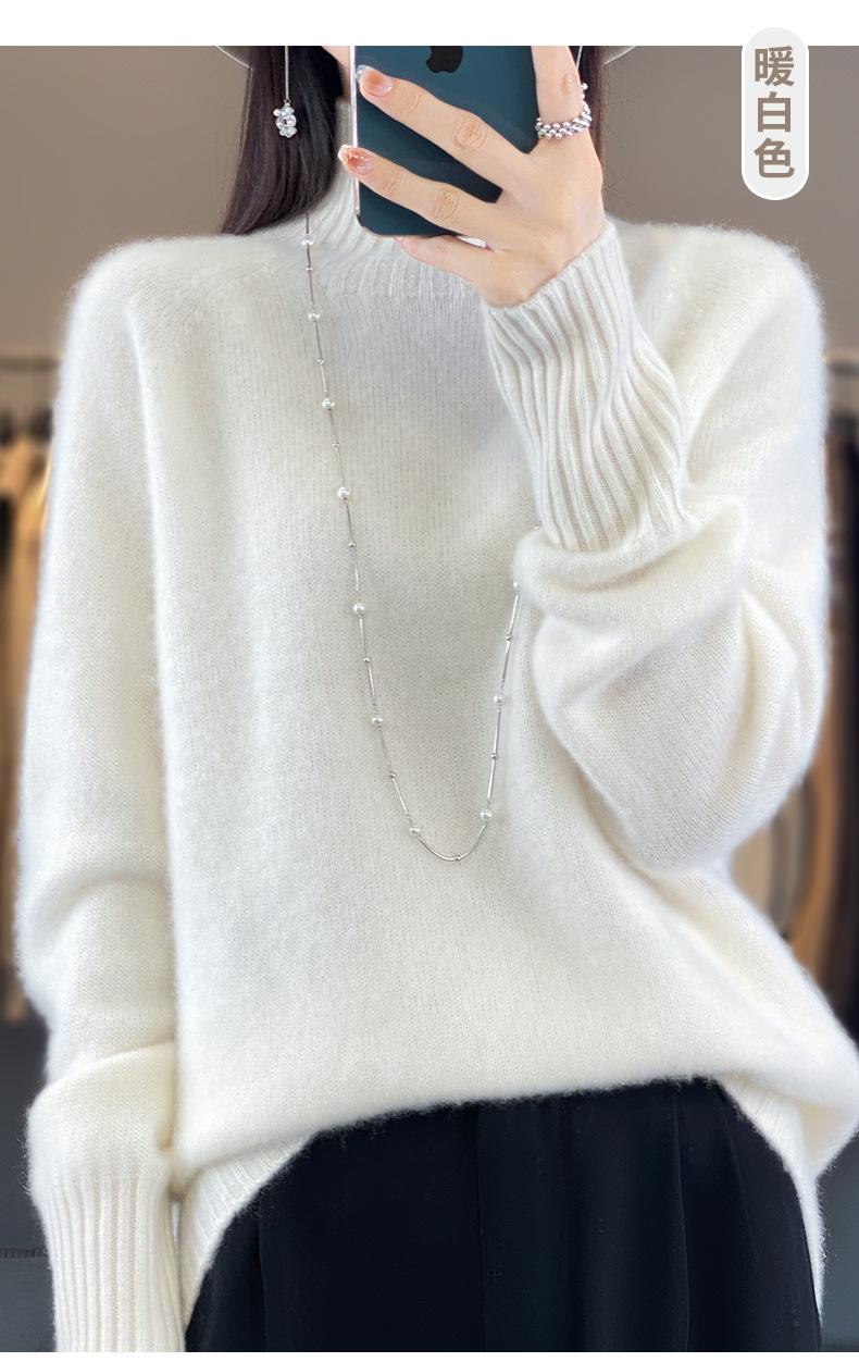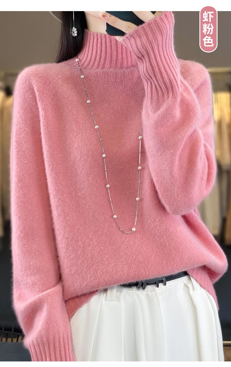 Suéter grueso de cuello alto 100% lana para mujer, Otoño/Invierno, nuevo, estilo holgado y relajado, tejido base, cálido y a la moda
