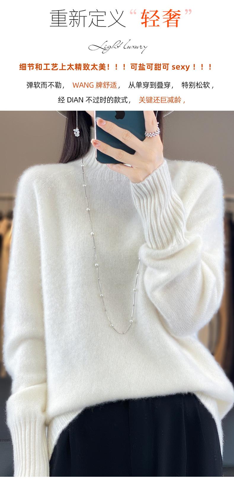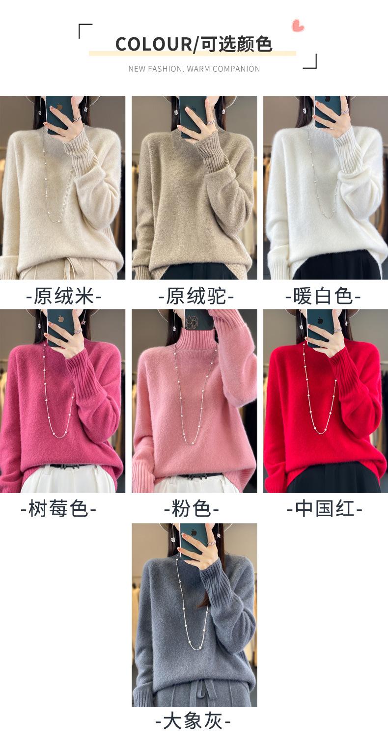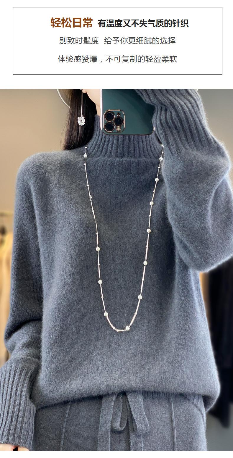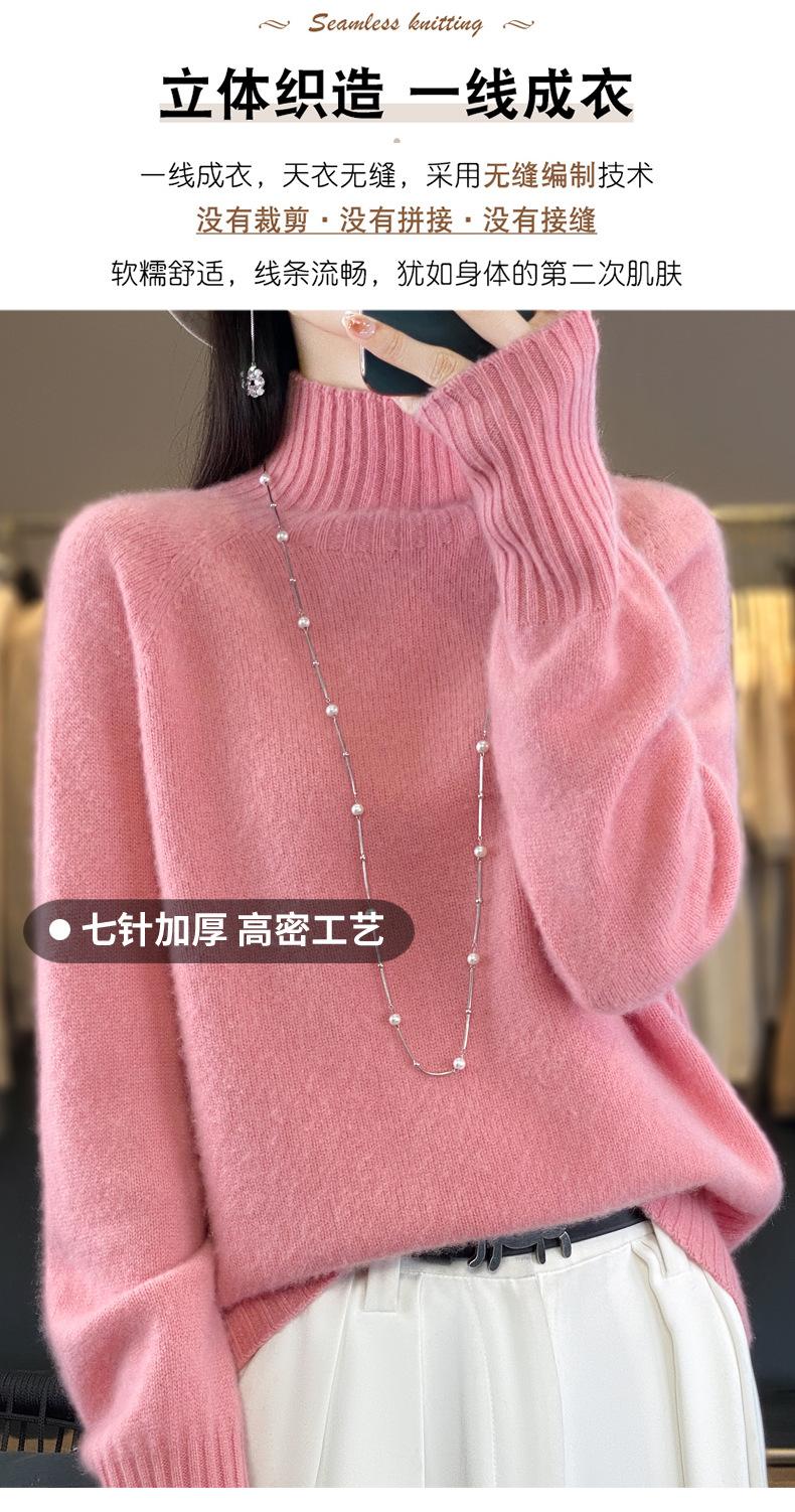 Suéter grueso de cuello alto 100% lana para mujer, Otoño/Invierno, nuevo, estilo holgado y relajado, tejido base, cálido y a la moda