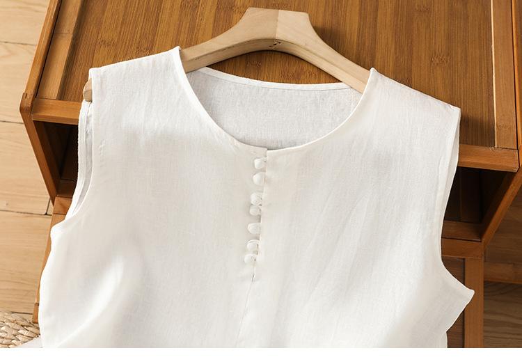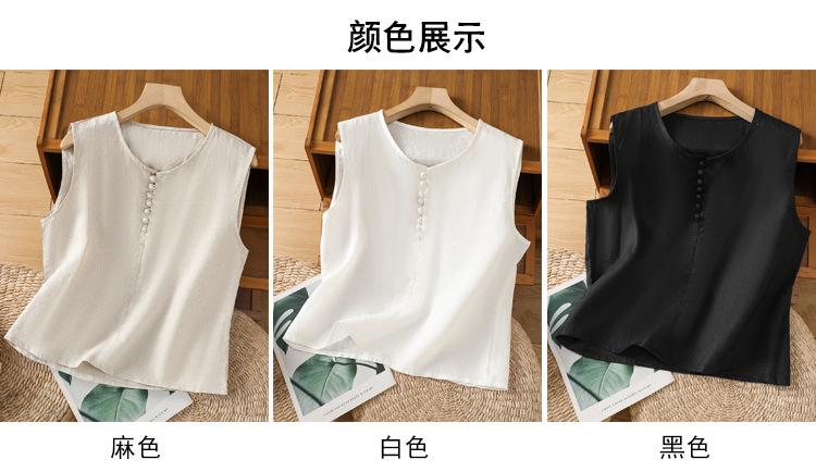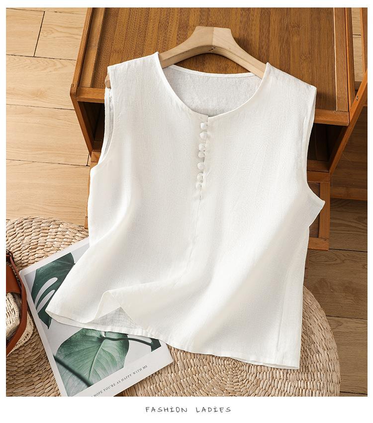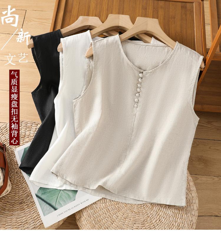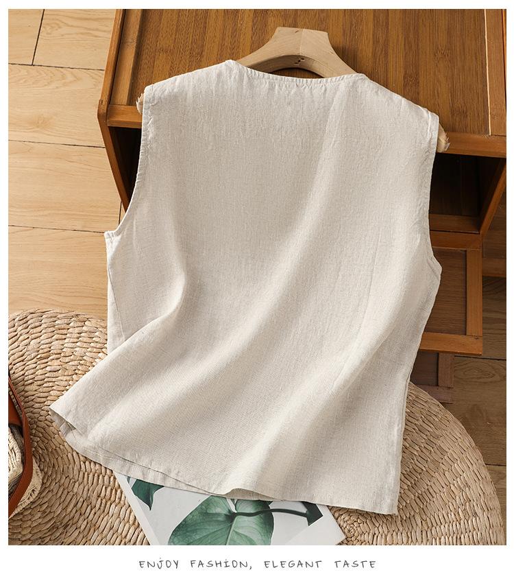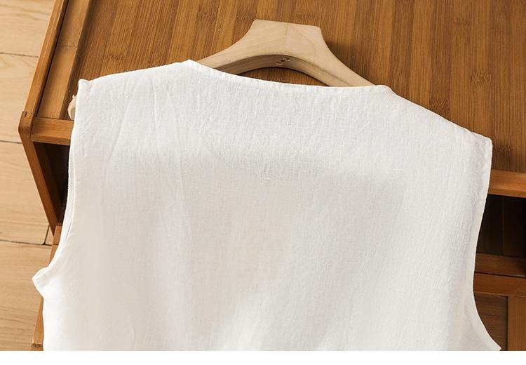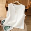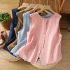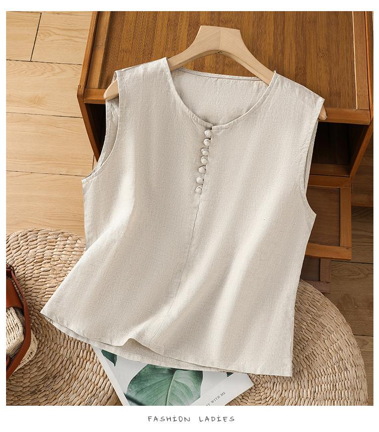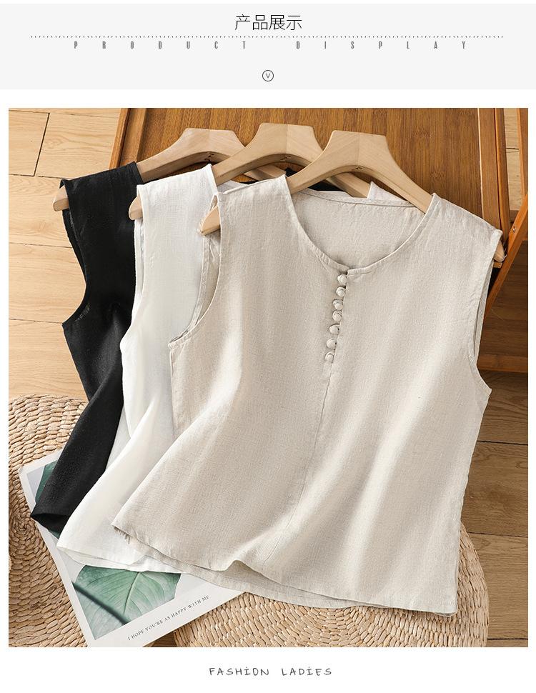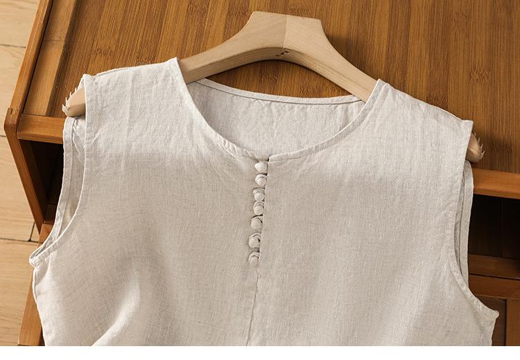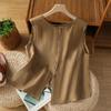 Foto real en stock verano 2025 chaleco retro algodón lino mujer cuello redondo sin mangas top exterior color sólido jersey base
