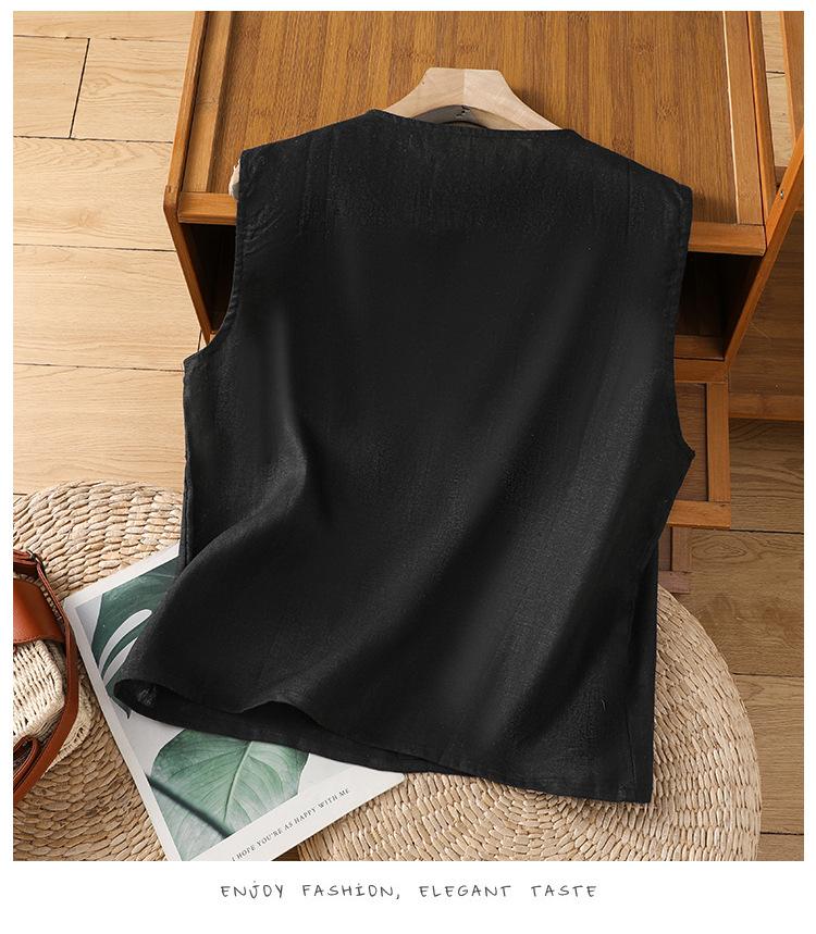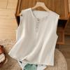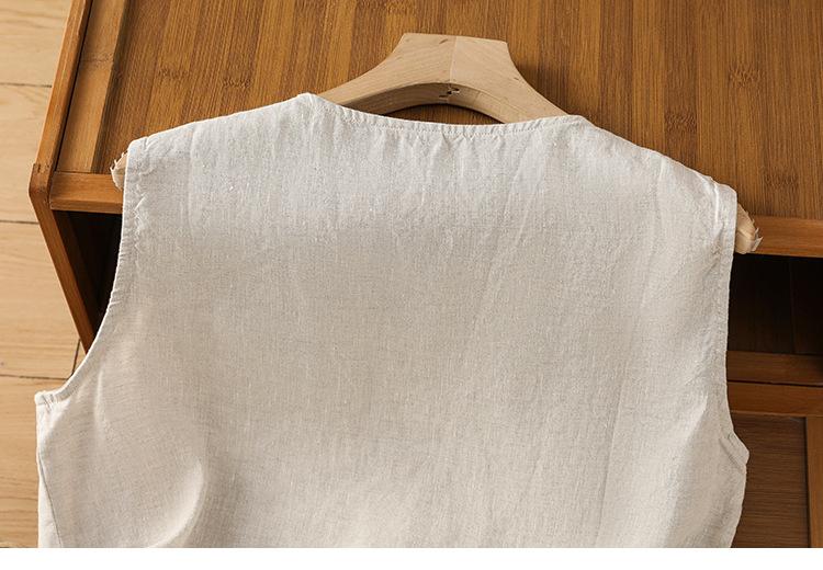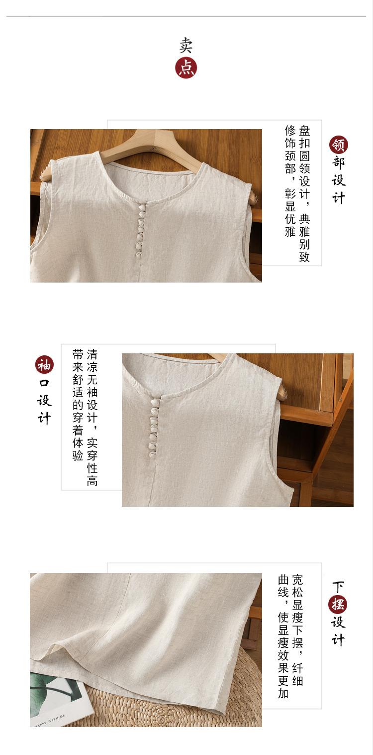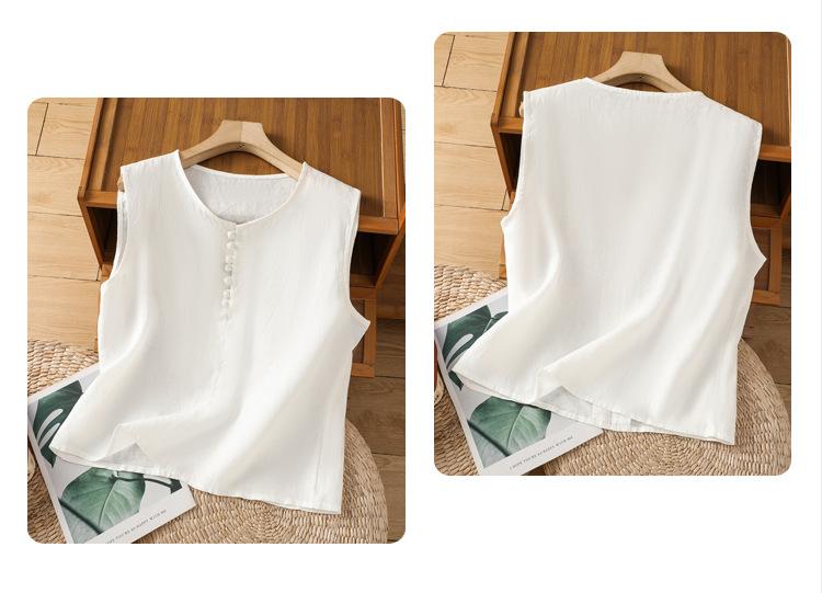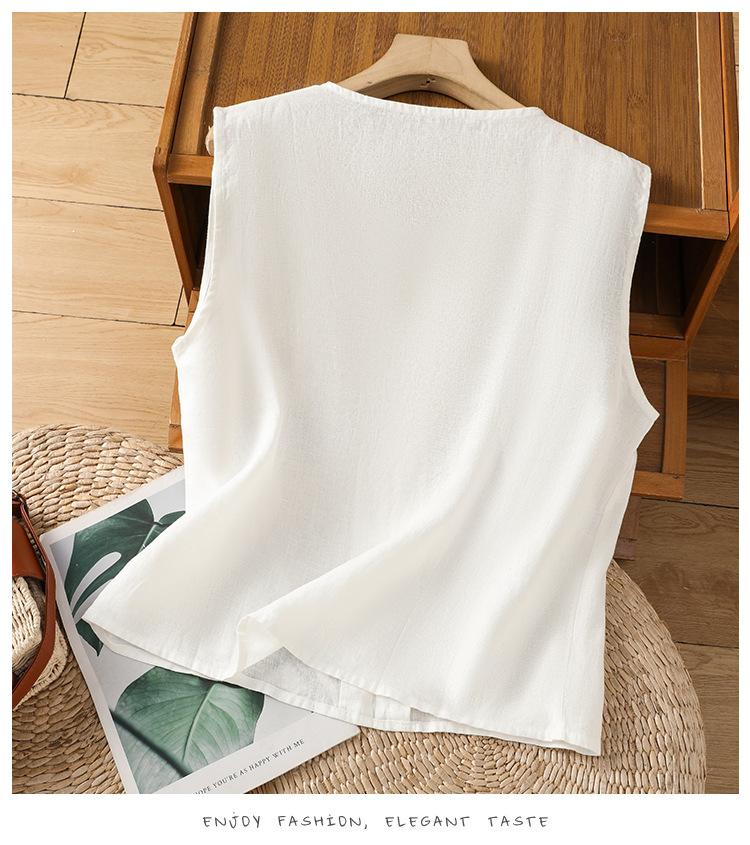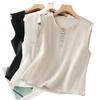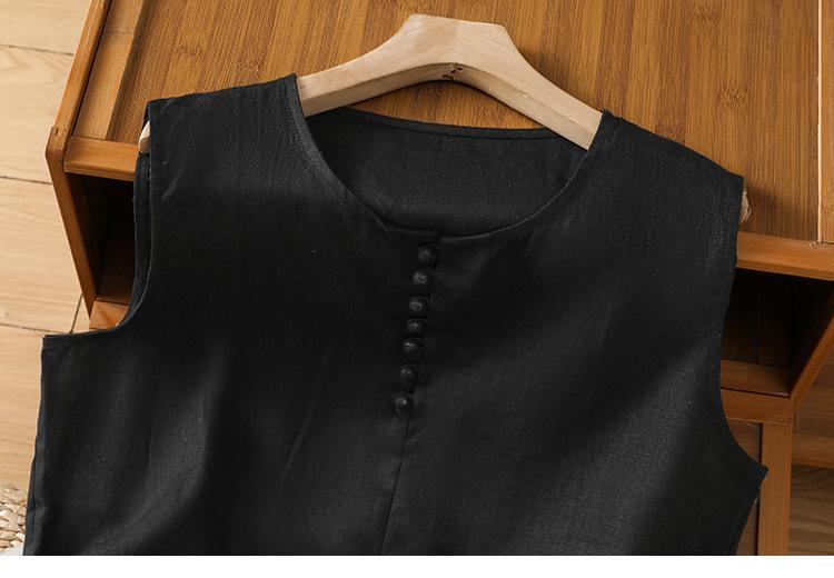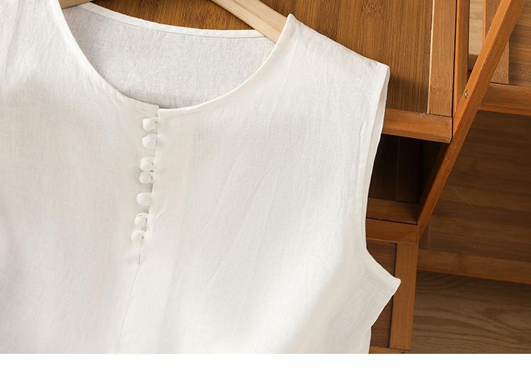 Foto real en stock verano 2025 chaleco retro algodón lino mujer cuello redondo sin mangas top exterior color sólido jersey base
