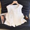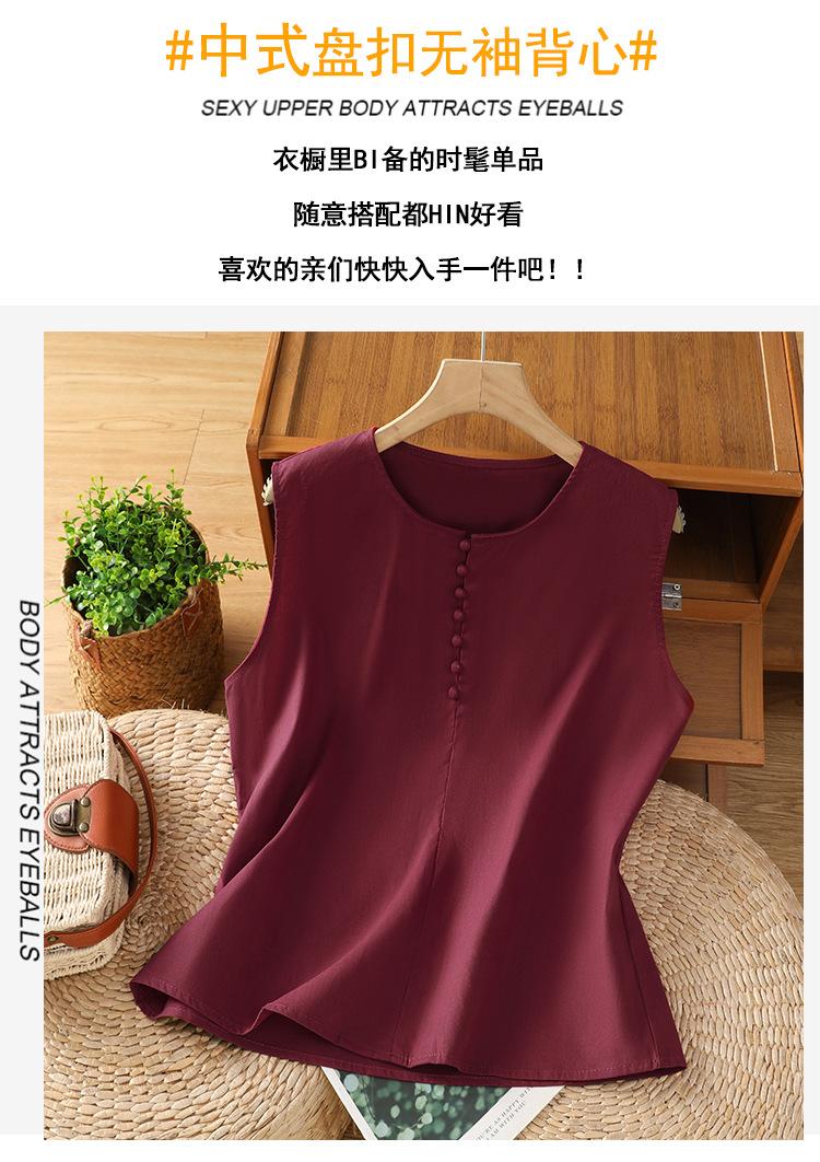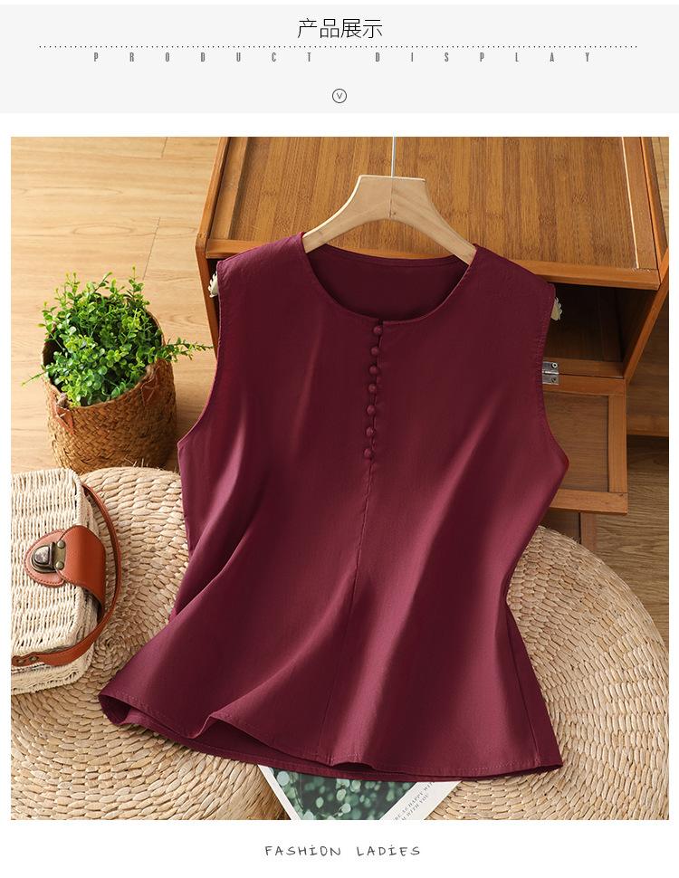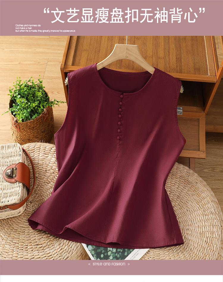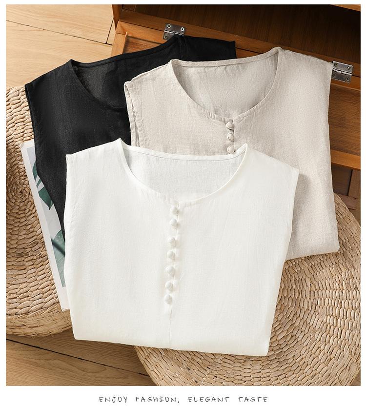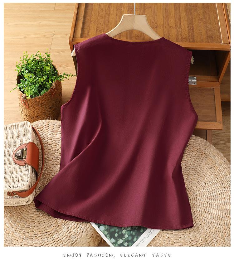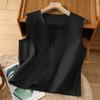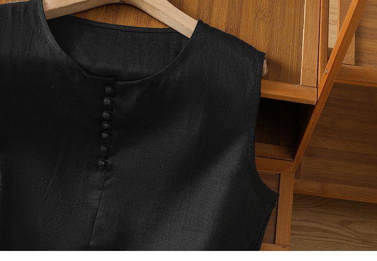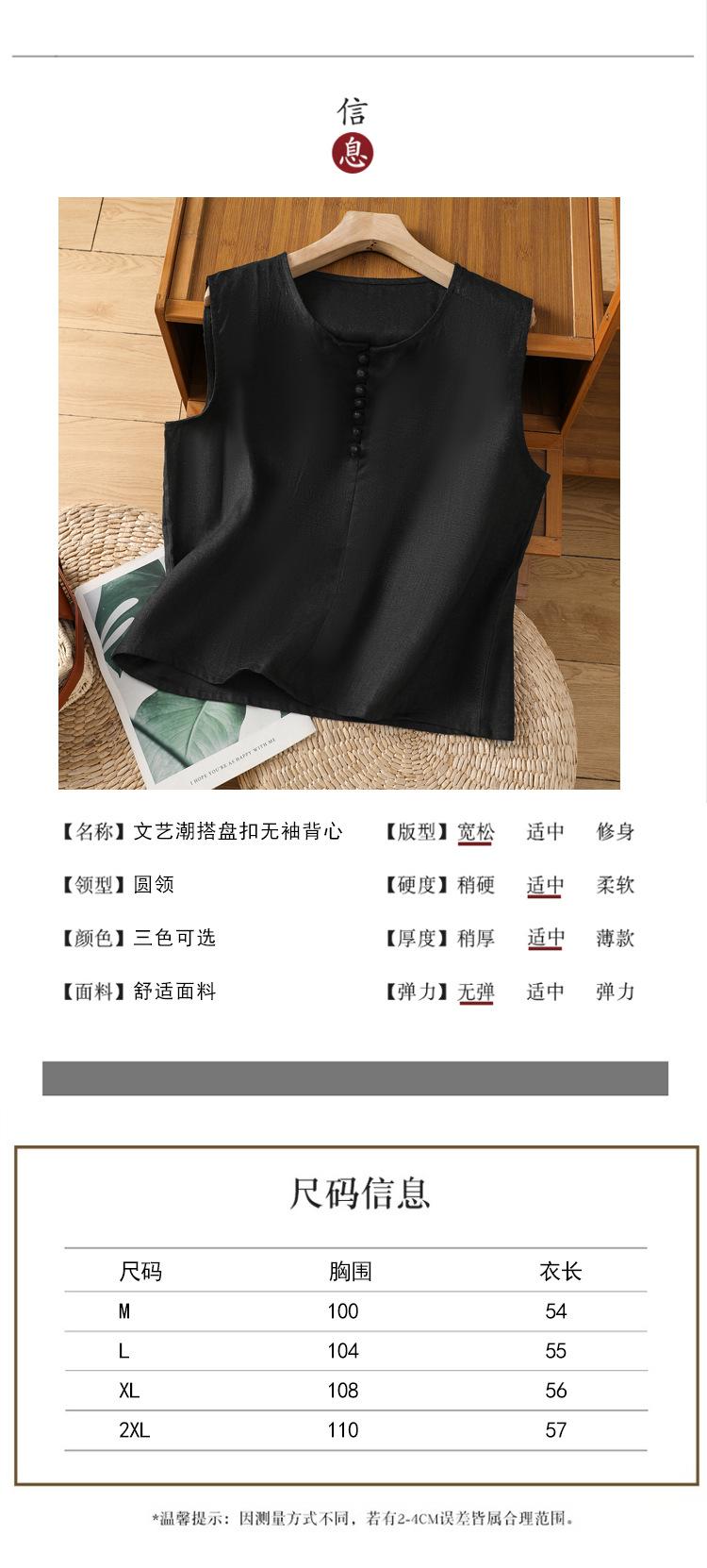 Foto real en stock verano 2025 chaleco retro algodón lino mujer cuello redondo sin mangas top exterior color sólido jersey base