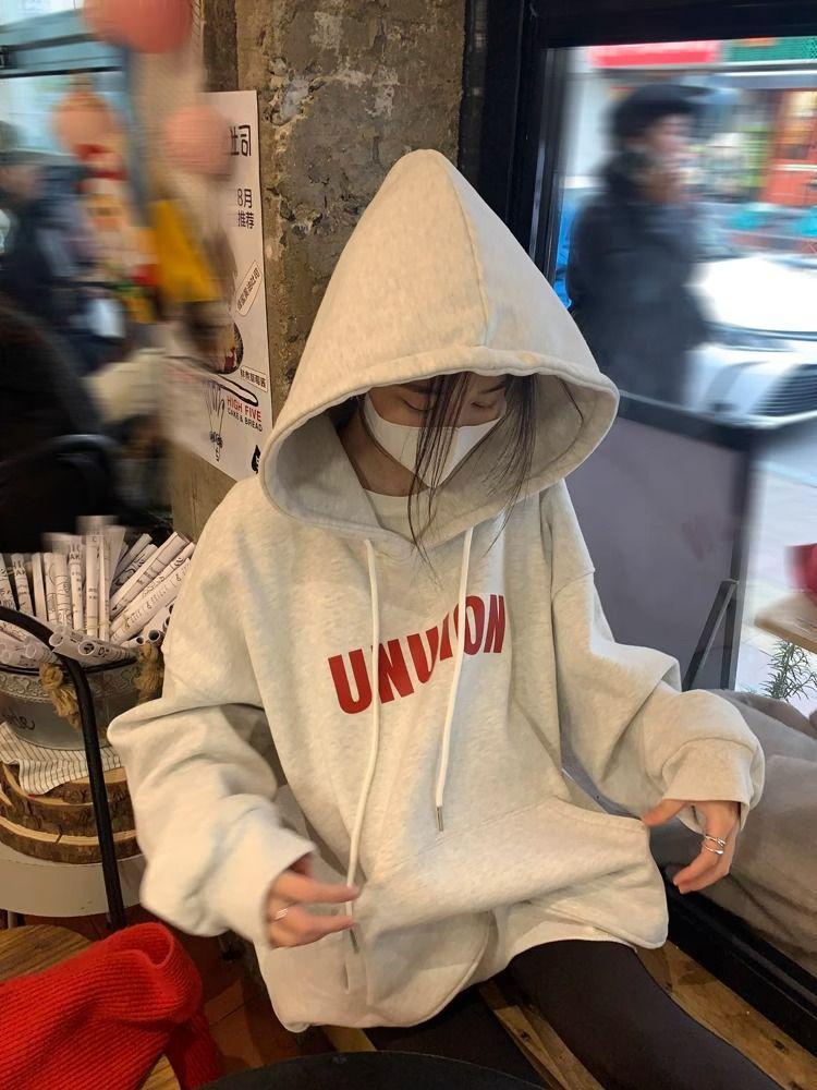 Sudadera de mujer de marca de moda europea y americana, peso pesado, otoño e invierno, delgada, estilo holgazán, minimalista, de alta gama, con capucha, ins