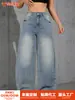 Europeo y Americano Transfronterizo Comercio Exterior Amazon Otoño Nuevo Lavado Multibolsillos Decoración de Lazo Pierna Ancha Suelto Denim Pantalones Largos